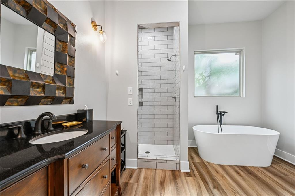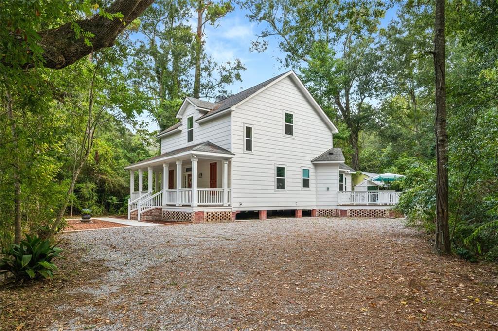 NEW kitchen island installed. Must-see, one-of-a-kind NEW CONSTRUCTION home located in the City of Abita Springs Historic District. Built in 2024, is PRICED to SELL! The home combines a modern, stylish design with antique touches. The primary bedroom is conveniently located downstairs. The home is in Flood Zone X and is raised 3 feet above ground level. Features 3 bedrooms, 2.5 bathrooms, and two additional bonus rooms. Each bedroom includes a large closet. (LVP) flooring all throughout and quartz countertops in the kitchen and bathrooms, complemented by tile backsplashes at the bath areas. The primary bathroom offers a fully tiled stand-up shower and a separate soaking tub. The washer, dryer, and refrigerator may remain with the home. Plumbing connections for a wet bar are built into the right corner of the living area. The property sits on a quarter- acre lot, with a wooded area behind the home dedicated to the City of Abita, ensuring no neighbors directly behind you. From the kitchen, you can access a large back deck. At the backyard, there is a cottage fully suited as an efficiency apartment. While it still needs final touches, the main structural elements and appliances are operable. The .25 acre vacant wooded lot to the right of the home is available for sale only with the purchase of the home. Free 1% buydown and no lender refinance fees when financing with Envoy Mortgage. For more details and facts, contact the agent.
