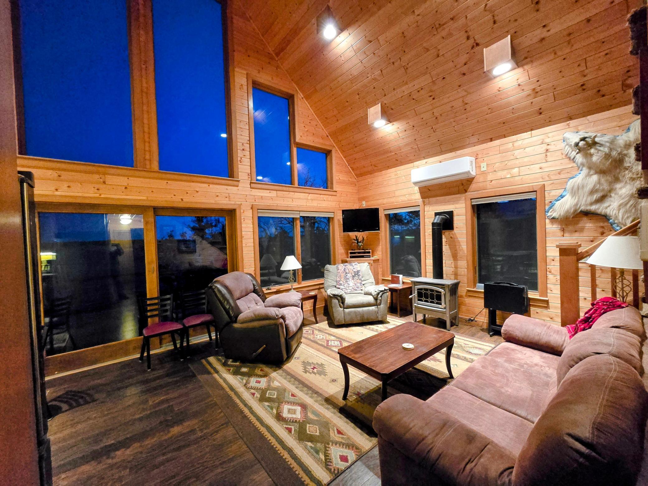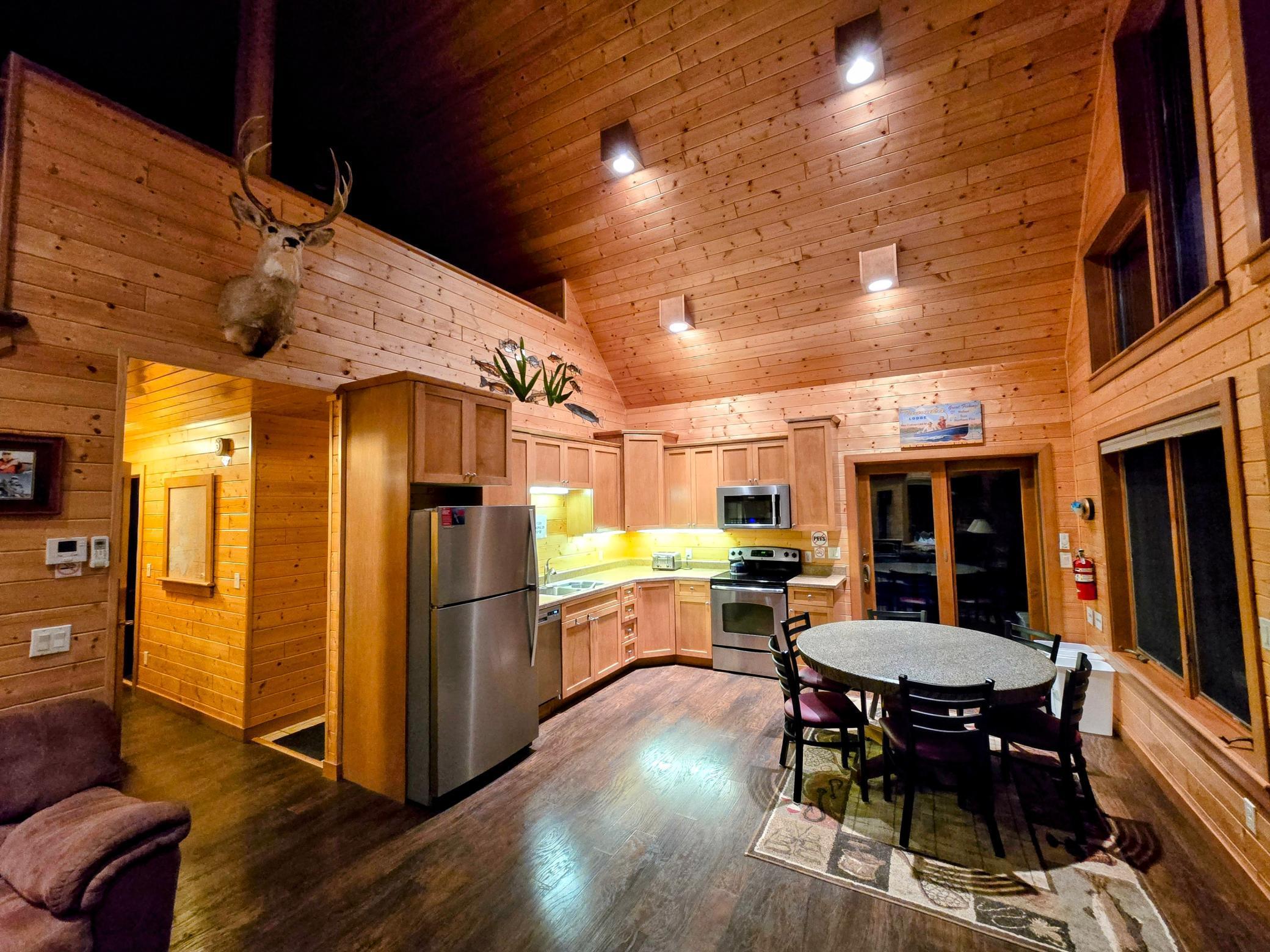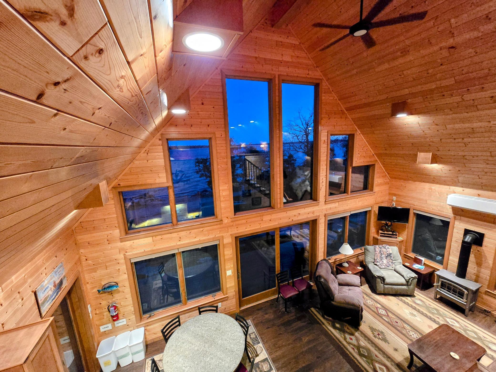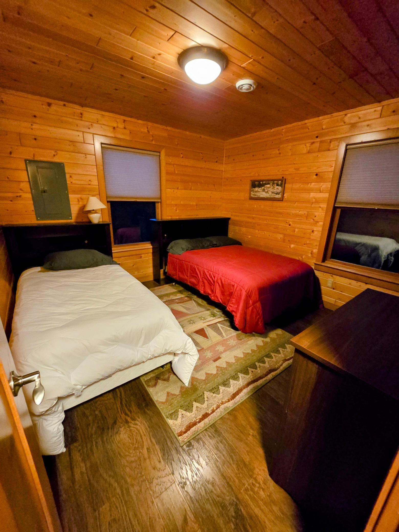 On the main level, you'll find two comfortable bedrooms: one with a queen bed and another with a full bed and a twin bed, along with two full bathrooms. The large loft offers four full beds in a semi-private layout. The expansive deck is ideal for stargazing, and on clear nights, you might even catch the Northern Lights .In the summer, take a refreshing swim in the lake just steps from your door, or gather around the firepit for s’mores. In the winter, snowmobile parking is conveniently located next to the cabin. Nestled at the back of the resort, Tanonka provides a peaceful escape, allowing you to fully embrace the beauty of Flag Island Resorts. We know you'll fall in love with this hidden gem!