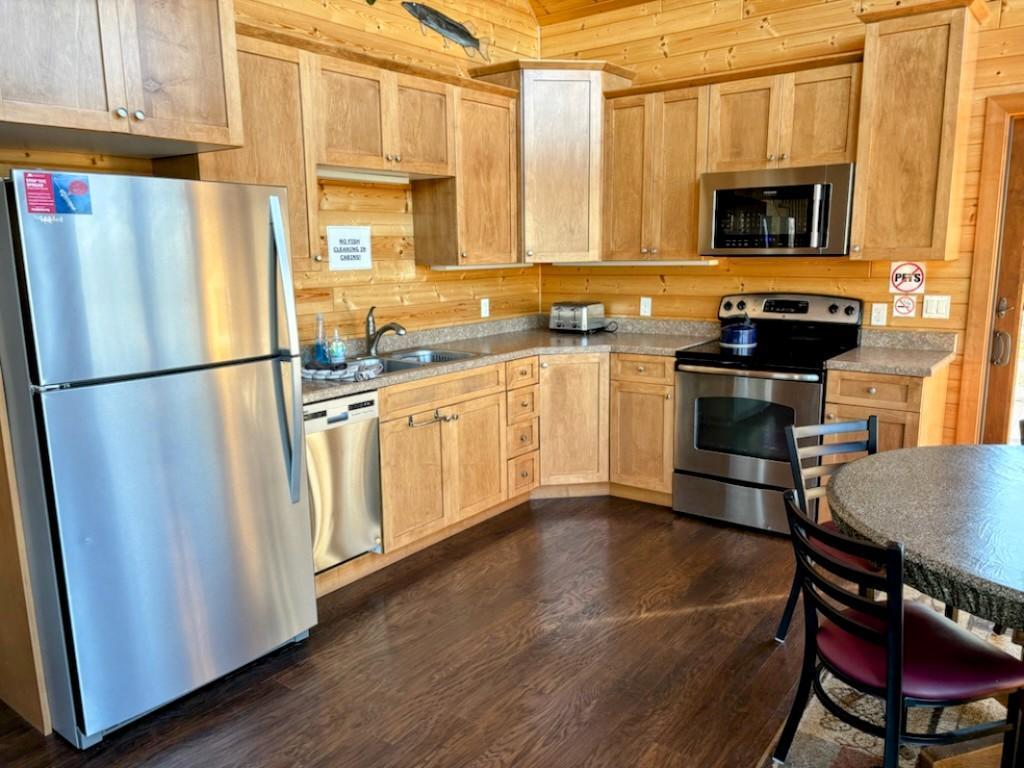 Discover Tanonka, a charming waterfront cabin with amazing views built in 2010 at Flag Island Resort on Flag Island nestled in the beautiful Northwest Angle. This inviting retreat features a vaulted ceiling with a cozy cast iron fireplace, a living room, and a fully equipped kitchen, perfect for gatherings around the spacious round table that seats eight. Tanonka is an income-producing property. It is a part of the Flag Island Resort Condo Association and rental pool allowing the owner to use the cabin for personal use and rent it out.