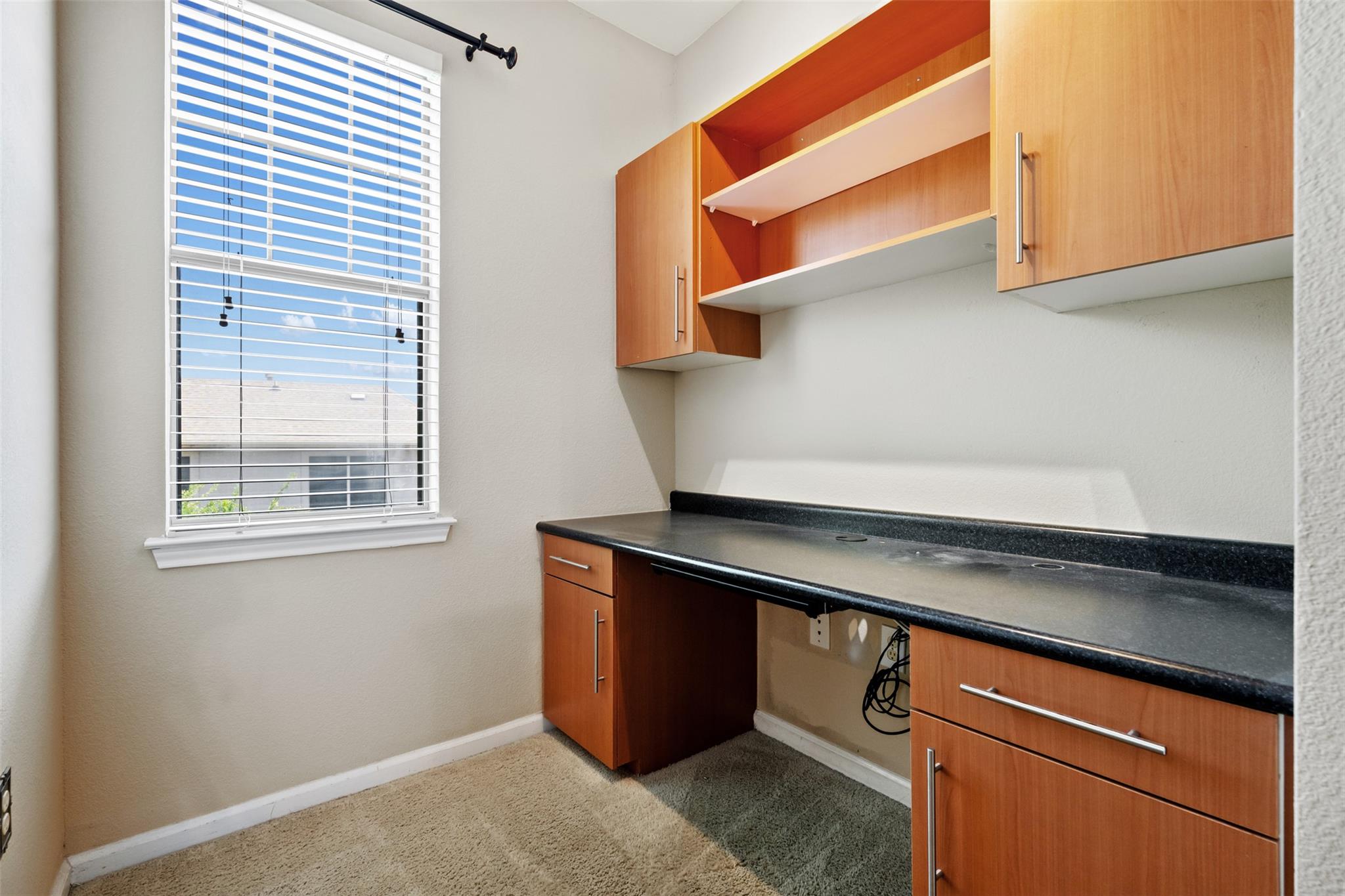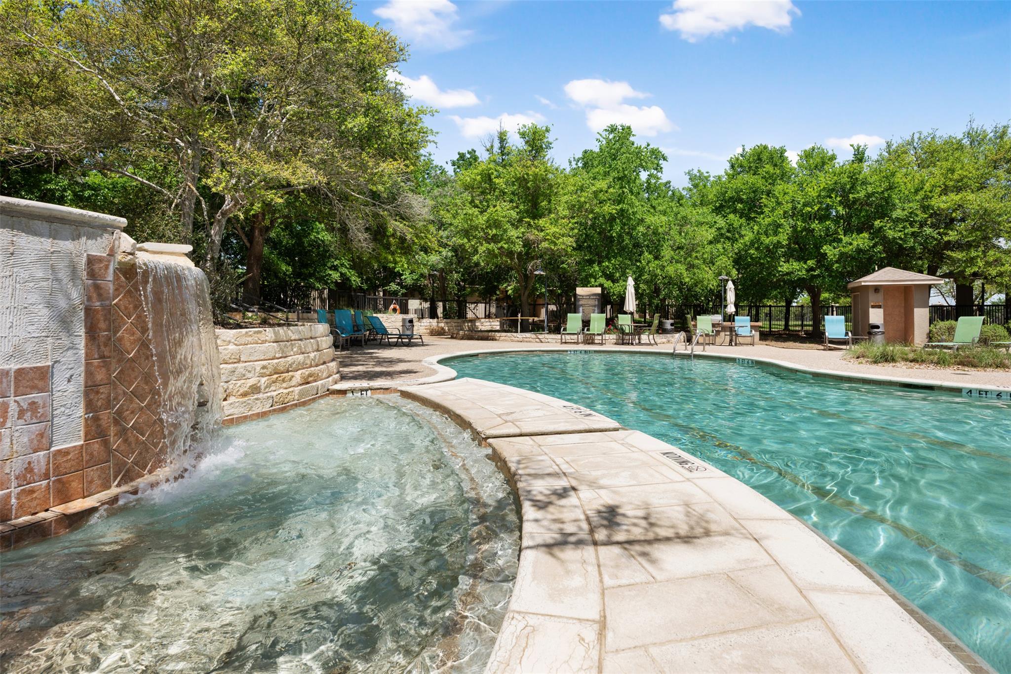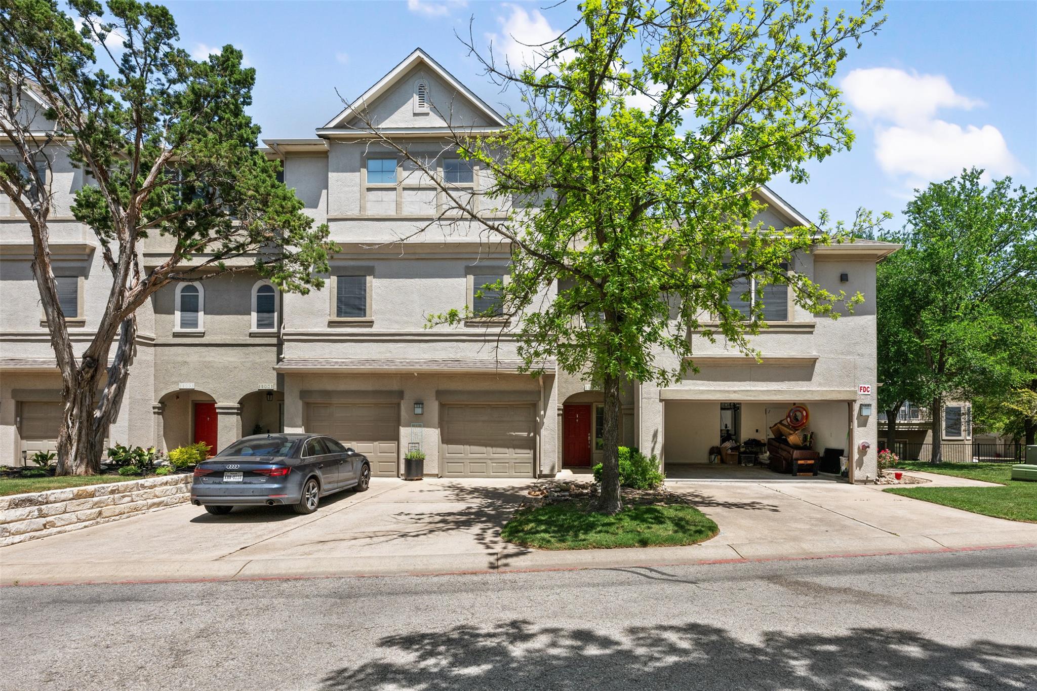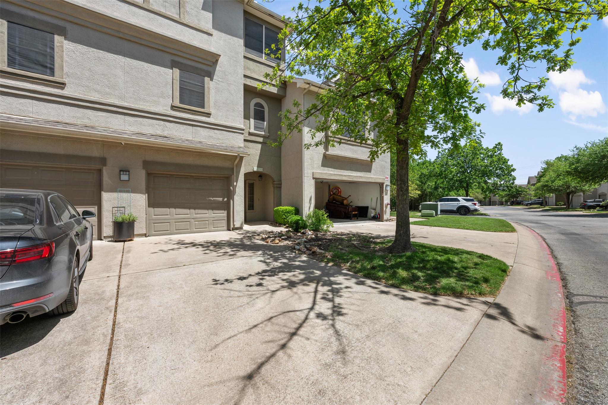 Alicante Townhomes is gated community in prime location with amenities! Great green spaces with a sparking pool, relaxing hot tub, fitness gym & dog parks. Two entrances, RR 2222 & RR 620, add to the convenience. #1105 has 2 primary bedrooms, each with a bath & tandem garage with space for 2 cars or 1 car with storage space. This three-story floor plan is great for roommates or families. Extra study space with built in desk on 3rd floor along with the 2 primary bedrooms & baths. Patios overlook the community green space.