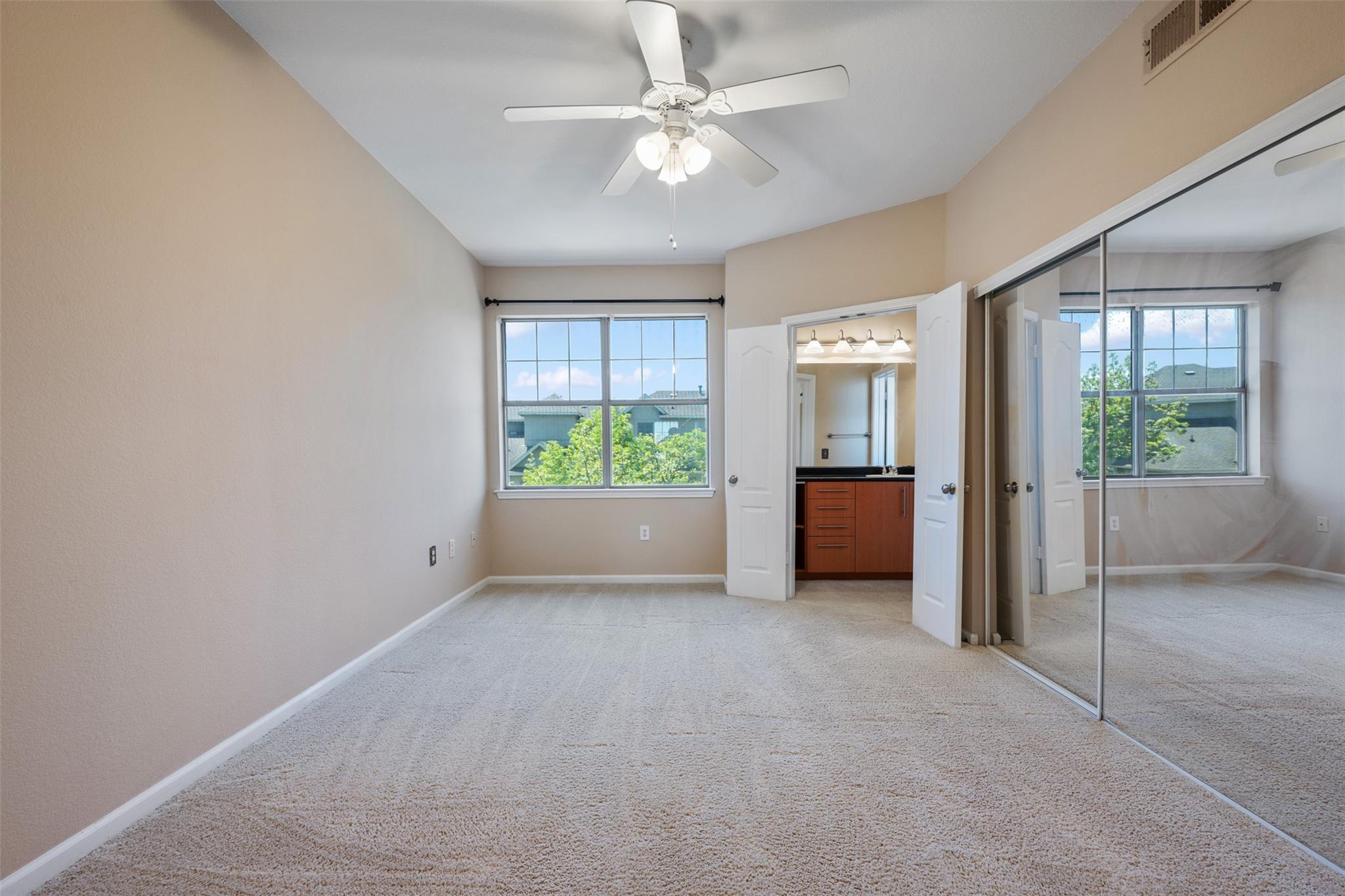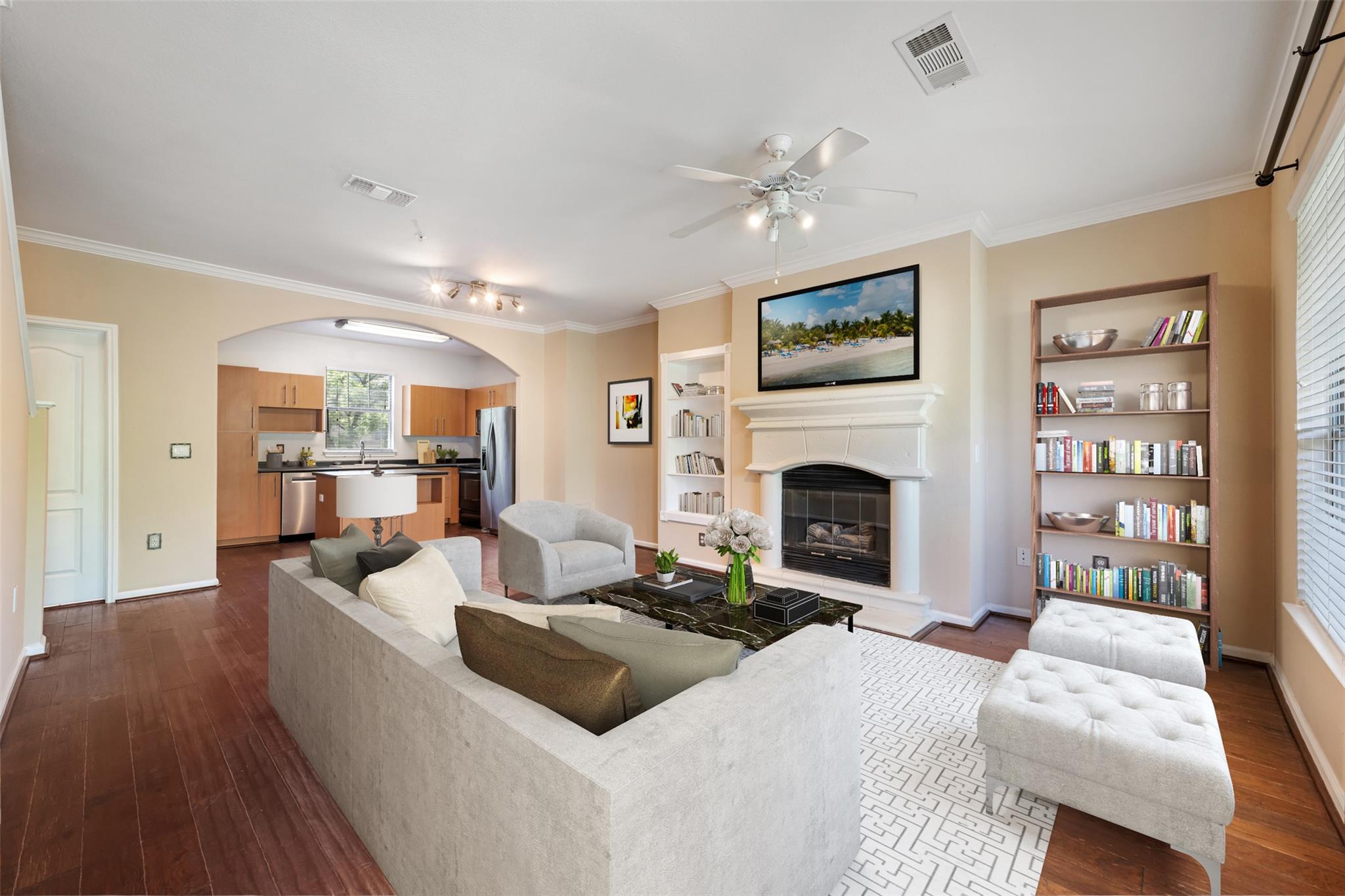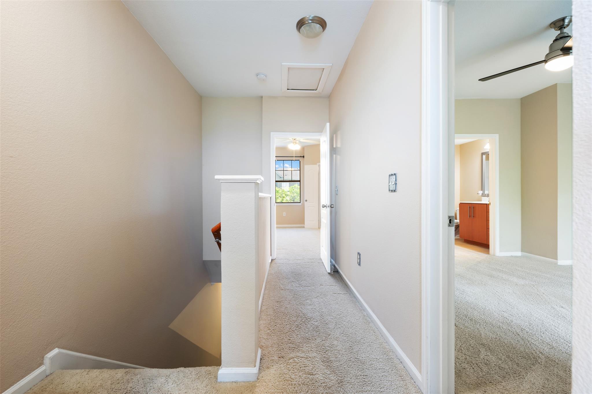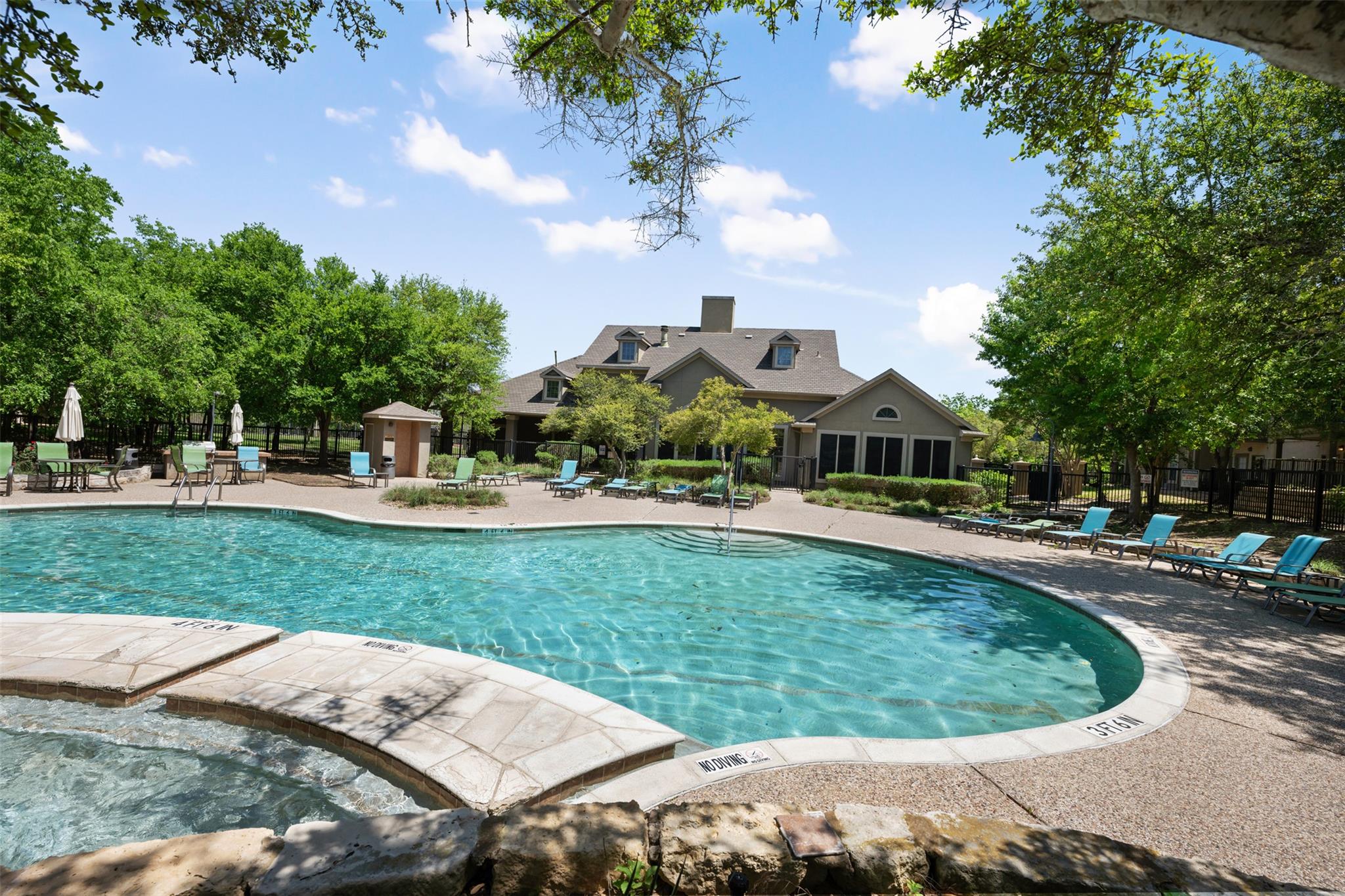 Alicante Townhomes is gated community in prime location with amenities! Great green spaces with a sparking pool, relaxing hot tub, fitness gym & dog parks. Two entrances, RR 2222 & RR 620, add to the convenience. #1105 has 2 primary bedrooms, each with a bath & tandem garage with space for 2 cars or 1 car with storage space. This three-story floor plan is great for roommates or families. Extra study space with built in desk on 3rd floor along with the 2 primary bedrooms & baths. Patios overlook the community green space.