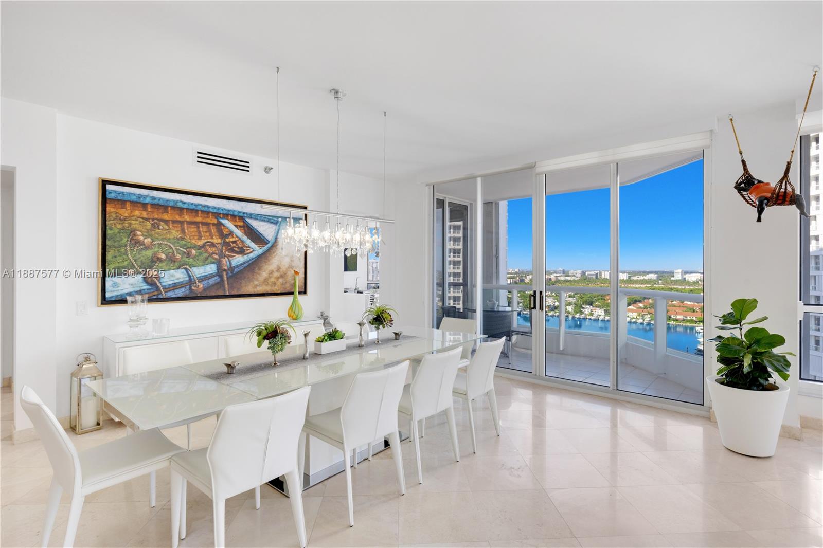 Experience Luxury Living at Atlantic II at The Point! This exquisite 2-bedroom, 2.5-bath residence spans 2,190 sq. ft. and showcases breathtaking panoramic views of the ocean, marina, and city from three private balconies. Featuring elegant marble floors throughout and a versatile floor plan that can easily be converted into a 3-bedroom, this home offers both style and flexibility. The Point community boasts resort-style amenities, including three pools, tennis courts, a world-class spa, state-of-the-art fitness center, clubhouse, and an outdoor café/restaurant. Ideally located within walking distance to dining, shopping, the marina, and Aventura High School, and just minutes from the beach. ** Dinning room fixture excluded from purchase**