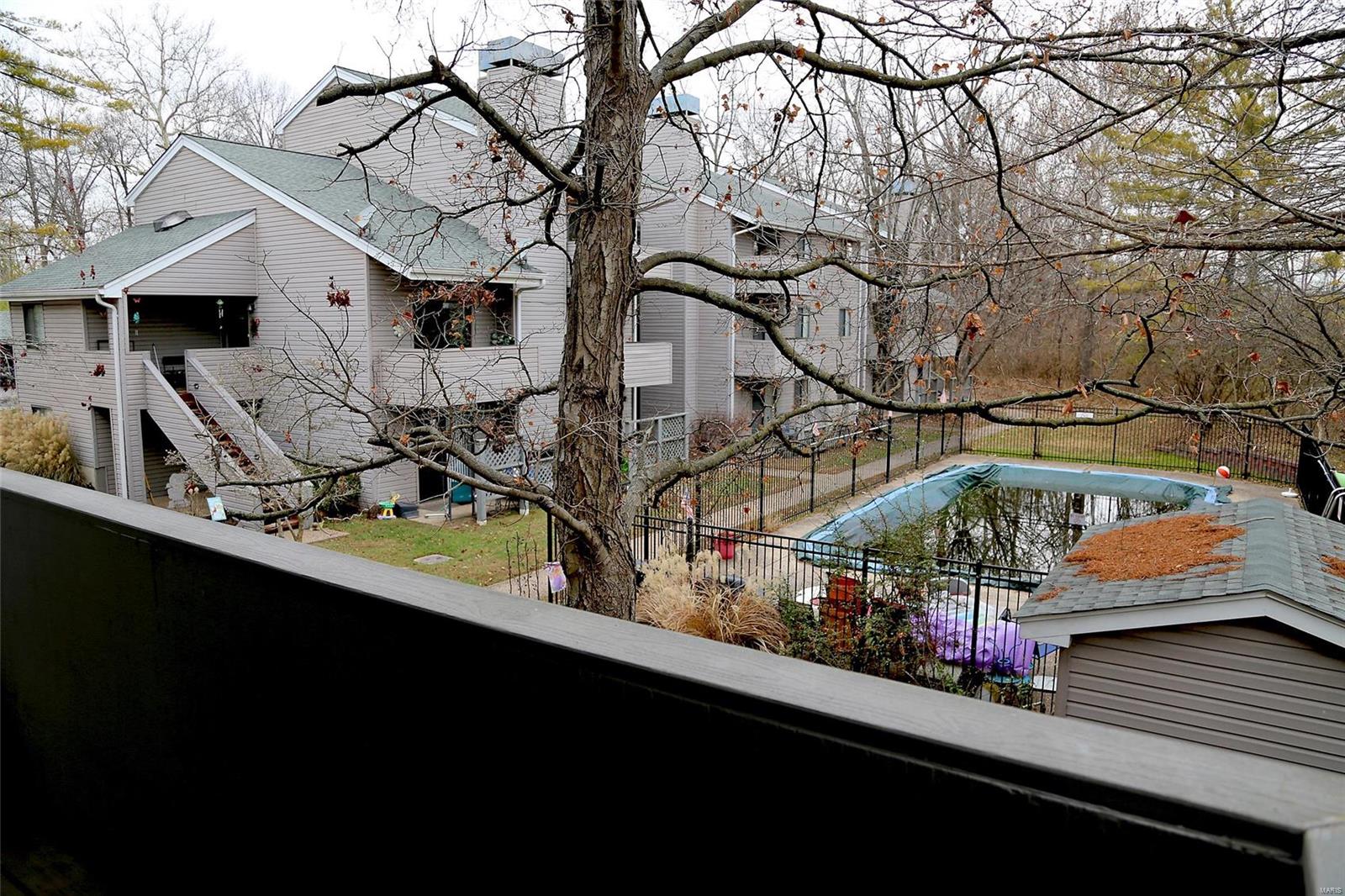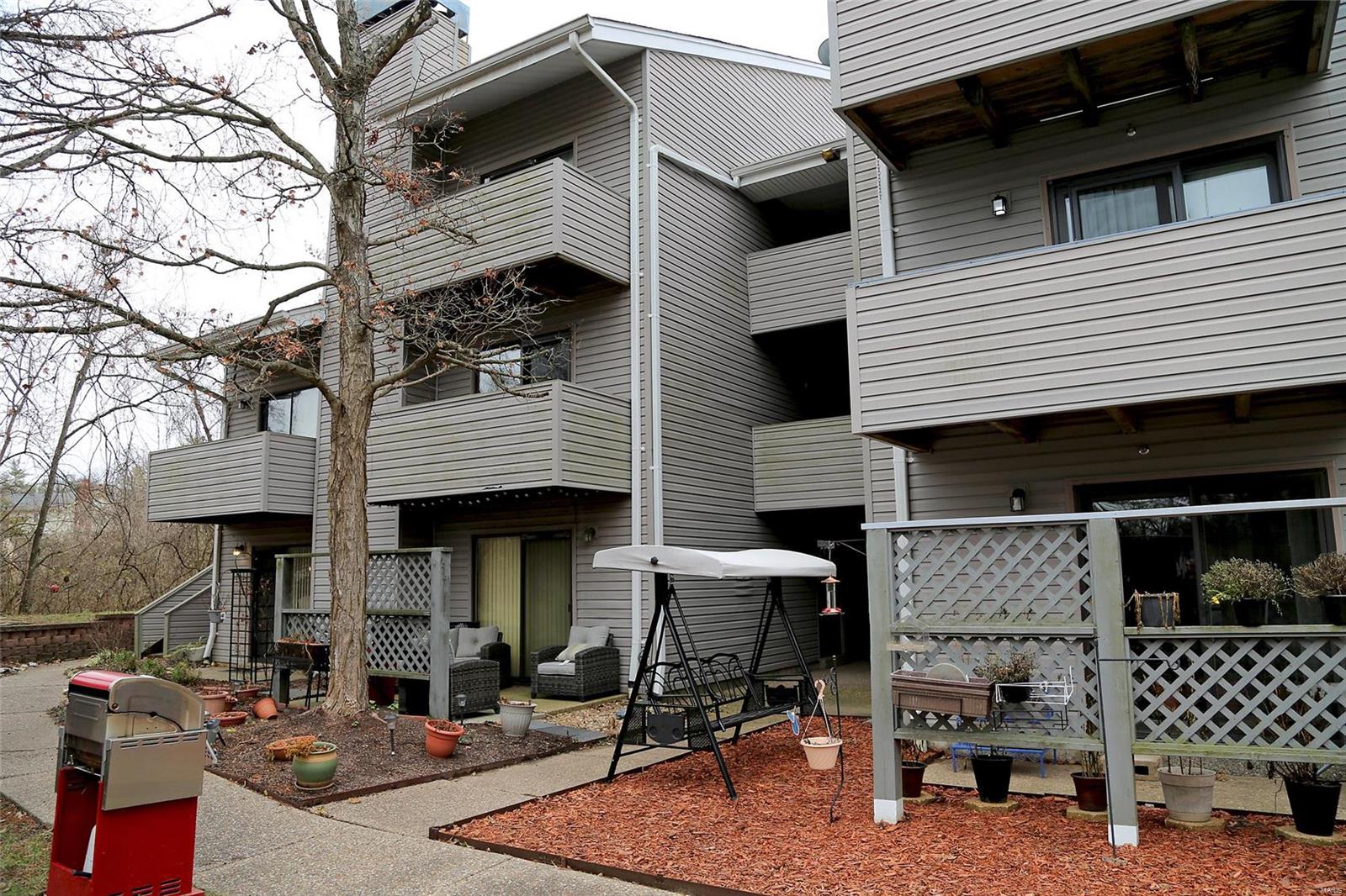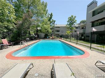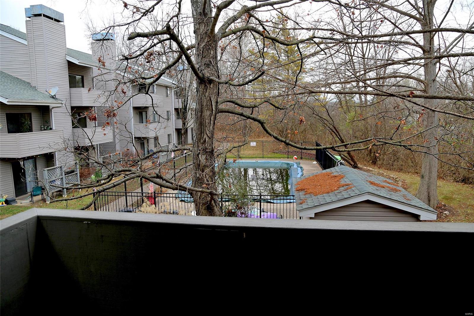 GREAT LOCATION! MOVE-IN READY! 1BR/1BA CONDO IN QUIET, WOODED COMPLEX. One level living and only one half-flight of stairs to get to the unit. Parking is just steps away with 1 assigned carport space. Attractive wood-look laminate flooring throughout the main living area & bedroom; ceramic tile in full hall bath. Unit has been freshly painted grey; white trim, doors, and cabinets. Private laundry in hall closet with built-in white cabinets above washer & dryer that stay! Family room boasts wood burning fireplace & slider to 11x5 covered deck that overlooks the pool, surrounded by woods. Kitchen with breakfast bar, white cabinets & appliances (refrigerator stays!), travertine backsplash, and ceiling fan over dining area. Separate 13x4 locked storage area. Public tennis courts are nearby, as well as an abundance of restaurants and shopping.