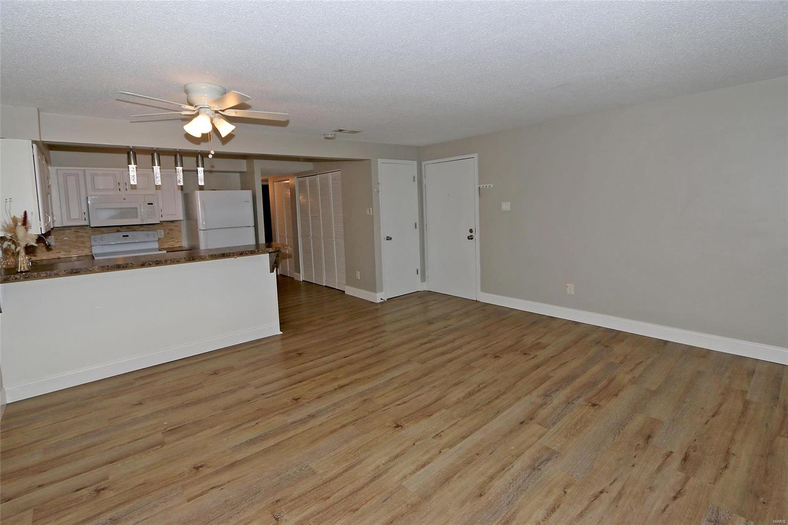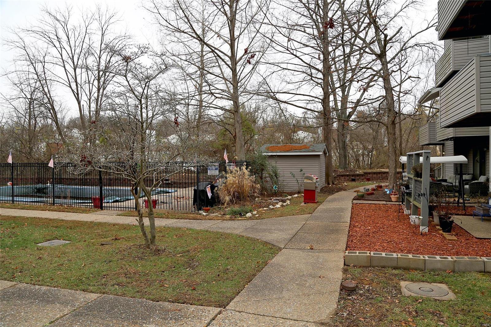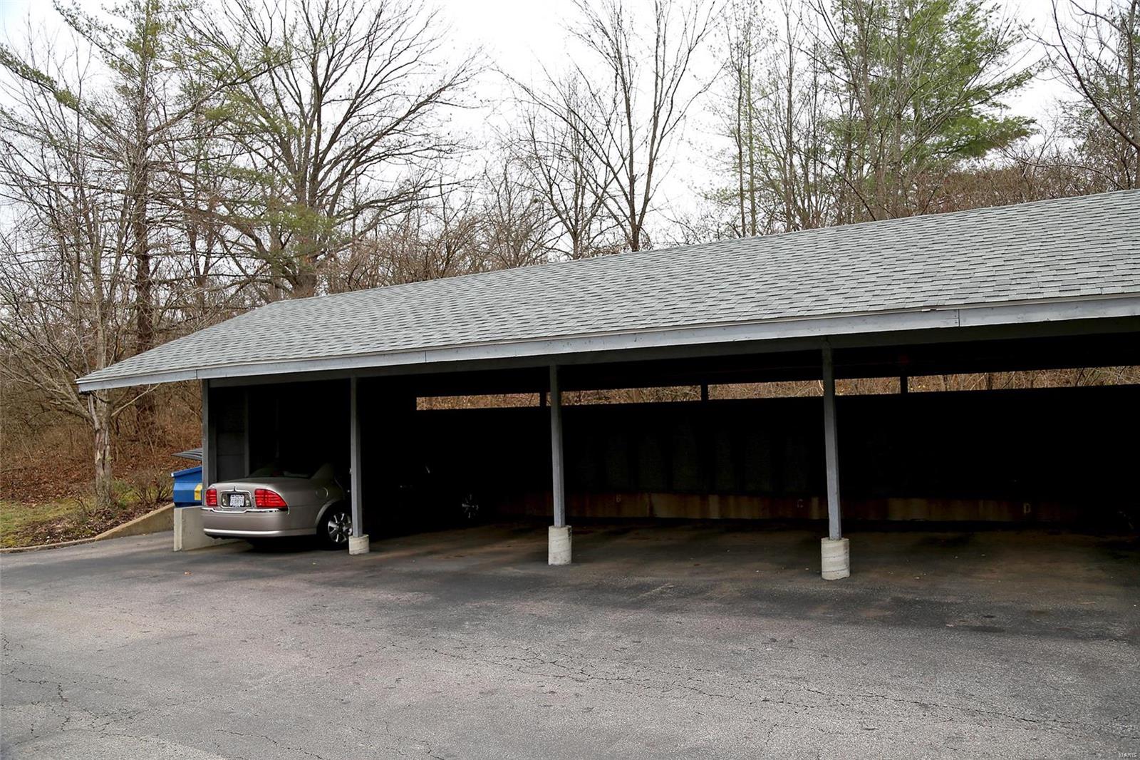 GREAT LOCATION! MOVE-IN READY! 1BR/1BA CONDO IN QUIET, WOODED COMPLEX. One level living and only one half-flight of stairs to get to the unit. Parking is just steps away with 1 assigned carport space. Attractive wood-look laminate flooring throughout the main living area & bedroom; ceramic tile in full hall bath. Unit has been freshly painted grey; white trim, doors, and cabinets. Private laundry in hall closet with built-in white cabinets above washer & dryer that stay! Family room boasts wood burning fireplace & slider to 11x5 covered deck that overlooks the pool, surrounded by woods. Kitchen with breakfast bar, white cabinets & appliances (refrigerator stays!), travertine backsplash, and ceiling fan over dining area. Separate 13x4 locked storage area. Public tennis courts are nearby, as well as an abundance of restaurants and shopping.