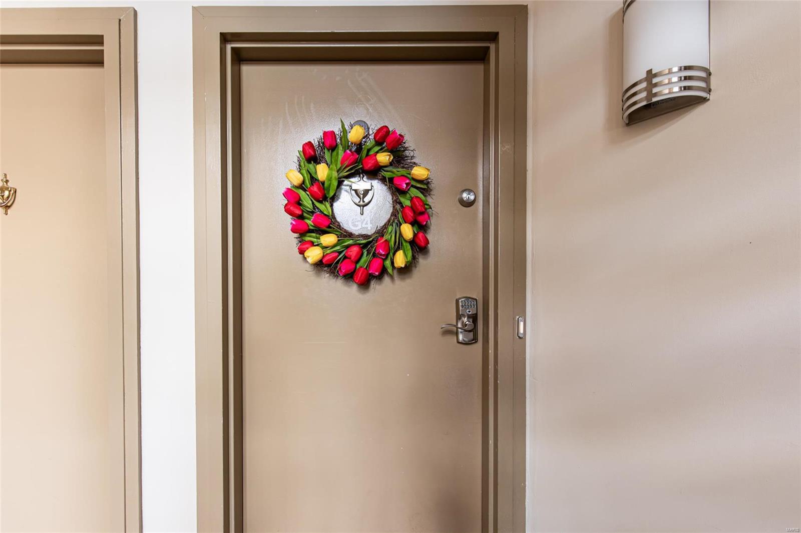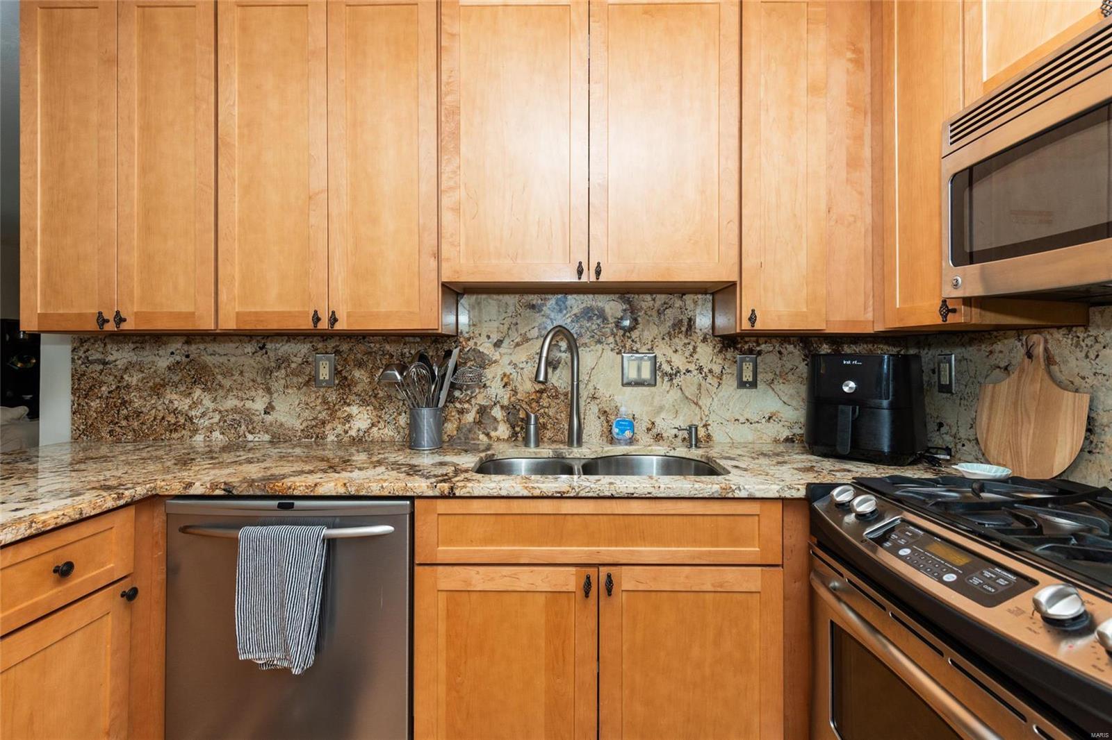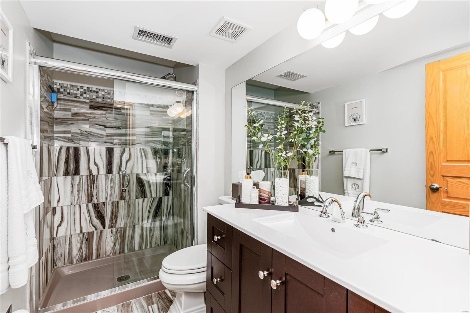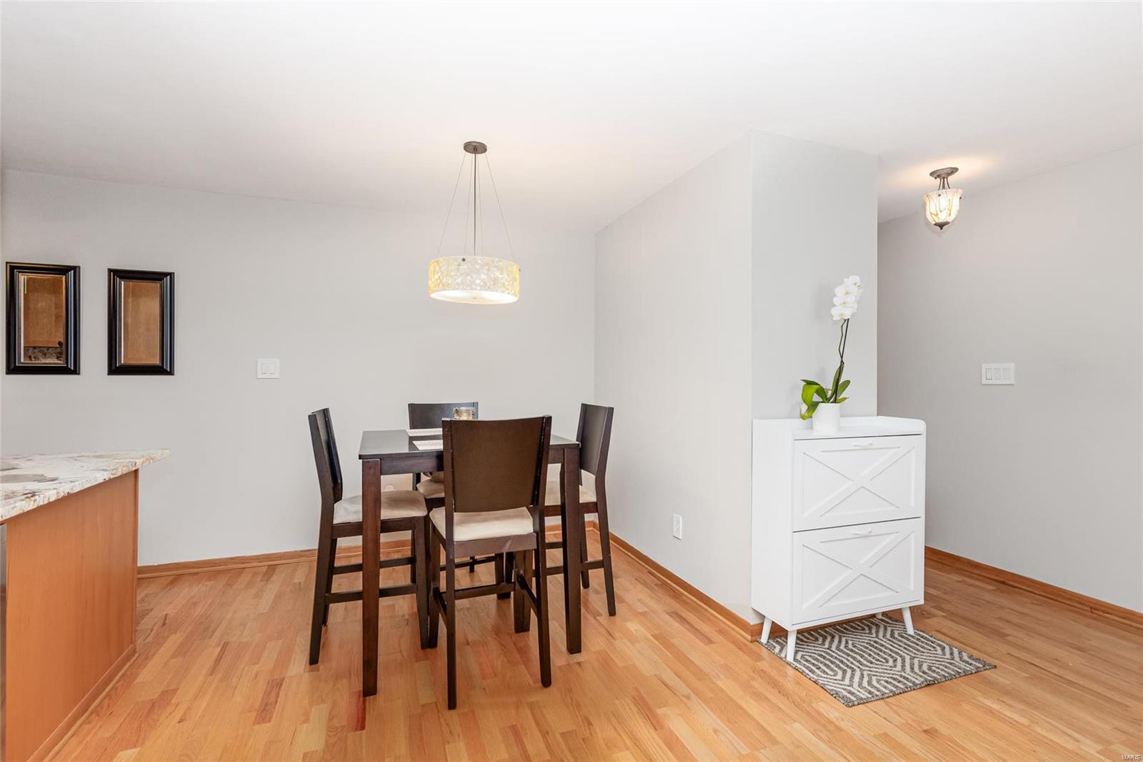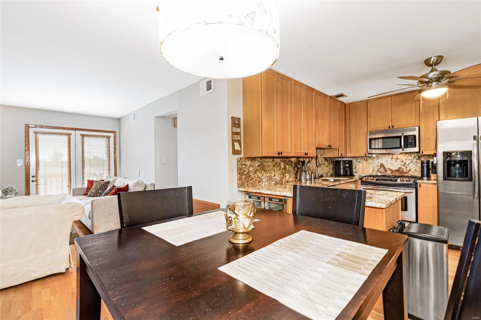 Discover the perfect blend of luxury and low maintenance living! This main floor, 2 bed, 2 bath condo is conveniently nestled in Hickory Sound Condos just a minute away from 141. The community HOA provides access to the clubhouse, tennis courts, and inground pool perfect for the heat of St. Louis Summers. The entry foyer opens into the spacious living room and seamlessly connects to the dining area with adjacent kitchen. A sleek granite peninsula offers ample workspace while 42 inch cabinets ensure you have enough storage. The kitchen also boasts stainless steel appliances, gas stove, and trendy countersplash. Down the hallway leads to the primary bedroom with walk in closet and spa like ensuite. In unit washer and dryer, full hall bath, additional bedroom, & utility closet complete the interior of the unit. Be able to get outside without ever leaving your home, the covered balcony deck off the living room provides additional space and storage. Unit comes with 1 assigned parking space.