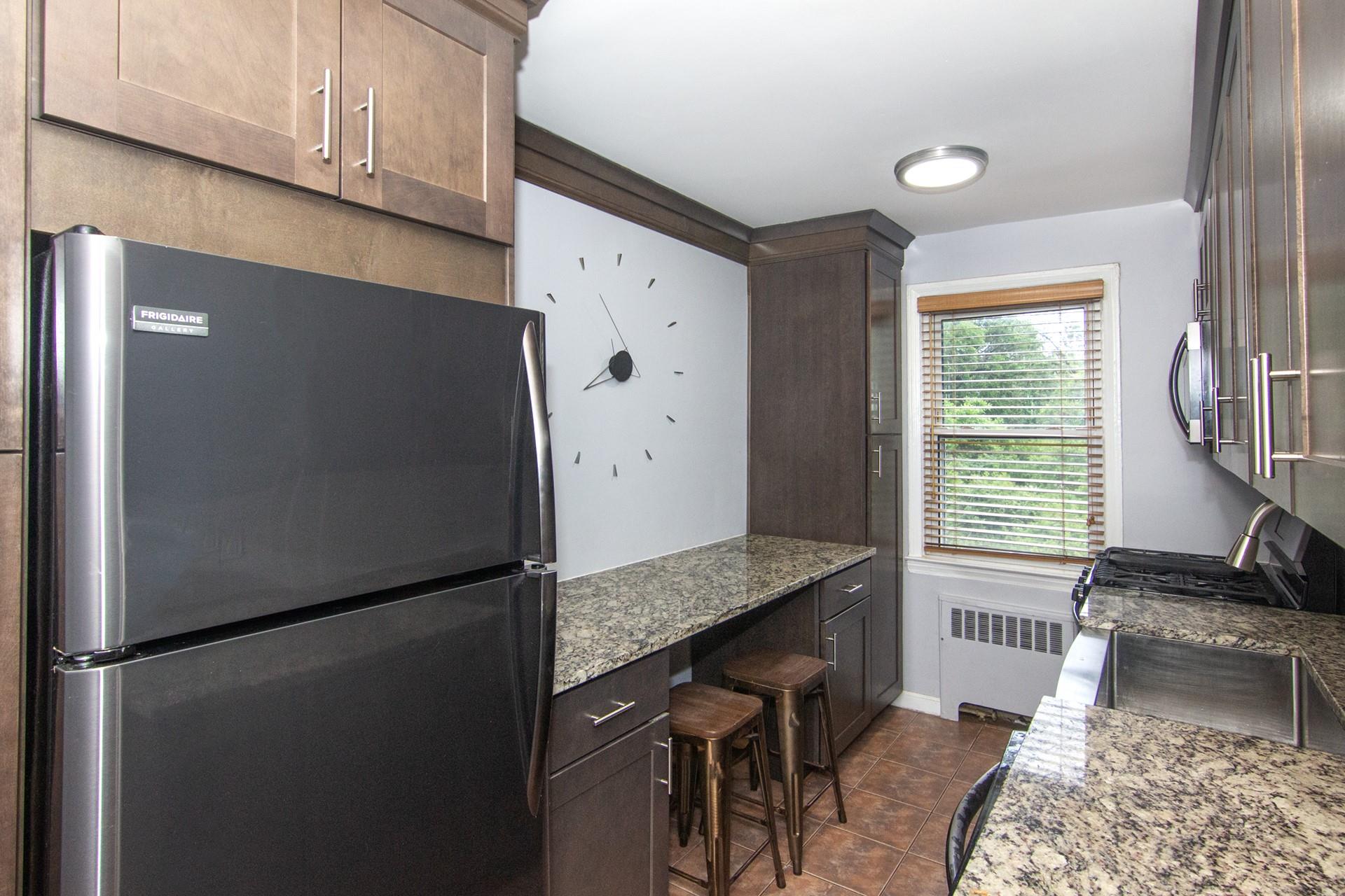 Lovely move-in ready one bedroom apartment in Parkwood Estates cooperative apartments...Updated kitchen with Wolf cabinetry/farmhouse sink/crown molding/breakfast bar counter/ granite countertops/dishwasher. Included in the sale price is a deeded parking garage and also a deeded outdoor parking space! Use the garage as a giant indoor heated storage facility while parking at the outdoor space. Bathroom has also been updated - this unit needs nothing but your personal touch of furnishings and paint!