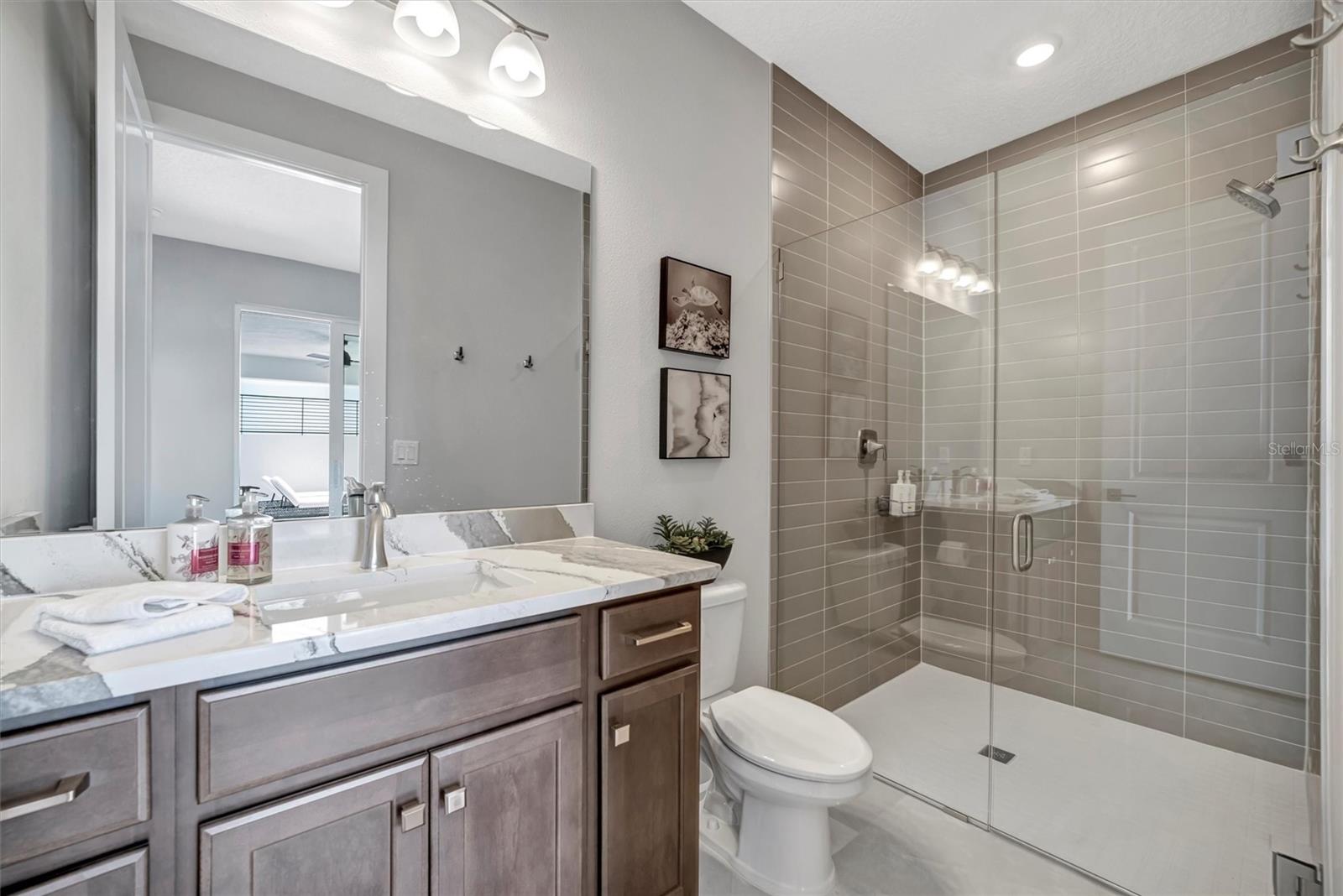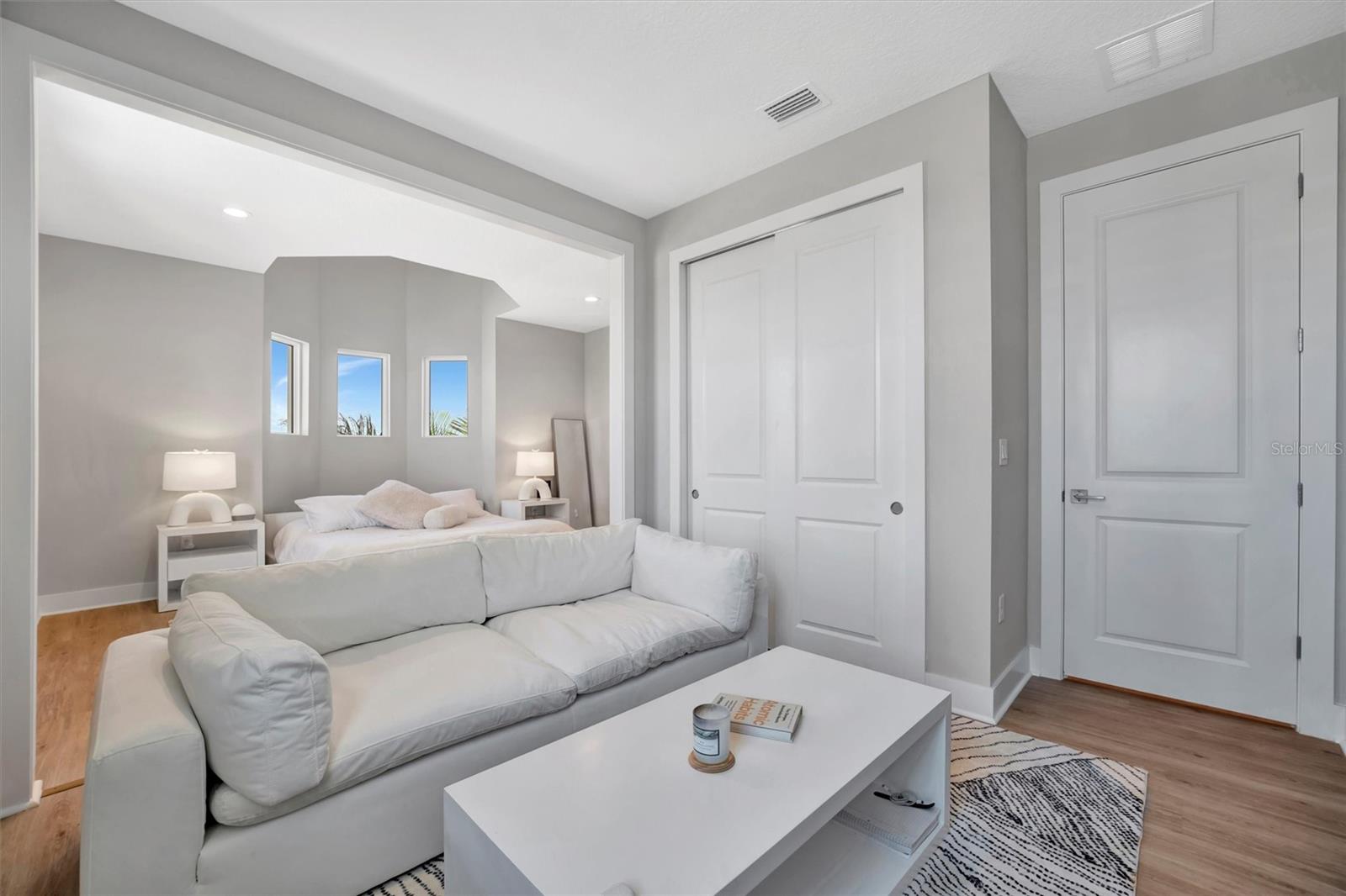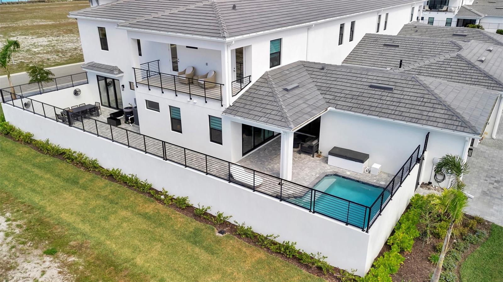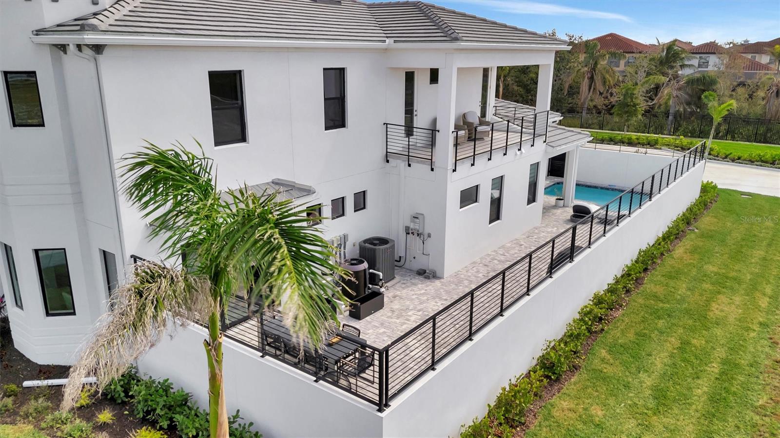 Upstairs, you’ll enter the open loft area that can be utilized to meet your needs for the space. A second-floor master suite has been created with an additional seating space that can also be easily converted back to a 5th bedroom. There is an en-suite bathroom with an oversized walk-in shower. Just off the second-floor master are two additional bedrooms and bathrooms. Setting the stage for your indoor-outdoor living is a full private 2nd story balcony offering views of the Sarasota Bay as well as the Aqua Lagoon. Enjoy your morning coffee, a late-night cocktail or watch the sunset as this outdoor retreat provides a peaceful escape with an added sense of privacy and tranquility.