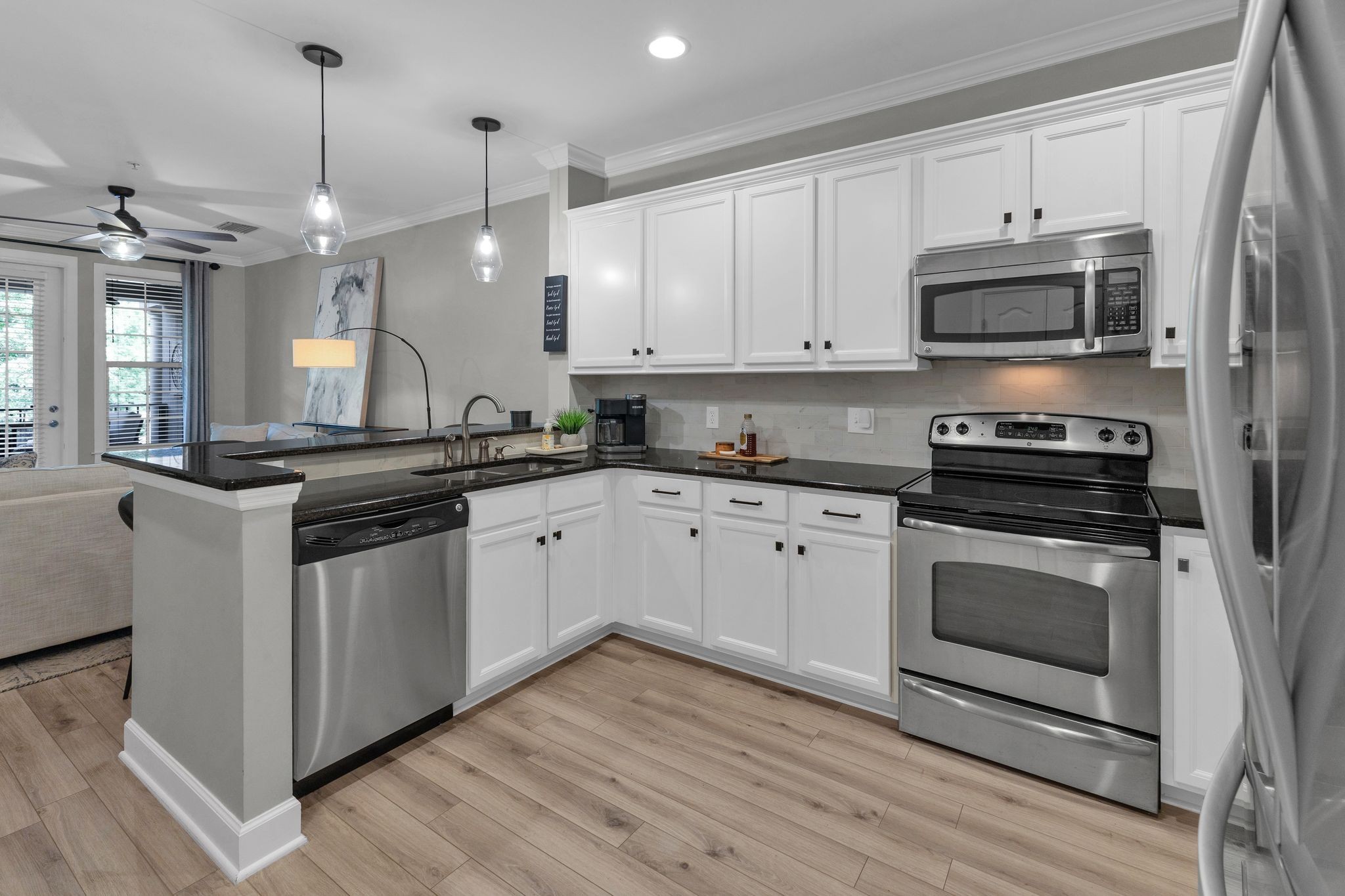 Inside, you'll find new LVP flooring, fresh paint, updated lighting, a fully renovated primary shower, and a custom closet—all completed in 2021. The open layout offers a comfortable, turnkey living experience that's perfect for everyday life or entertaining.
