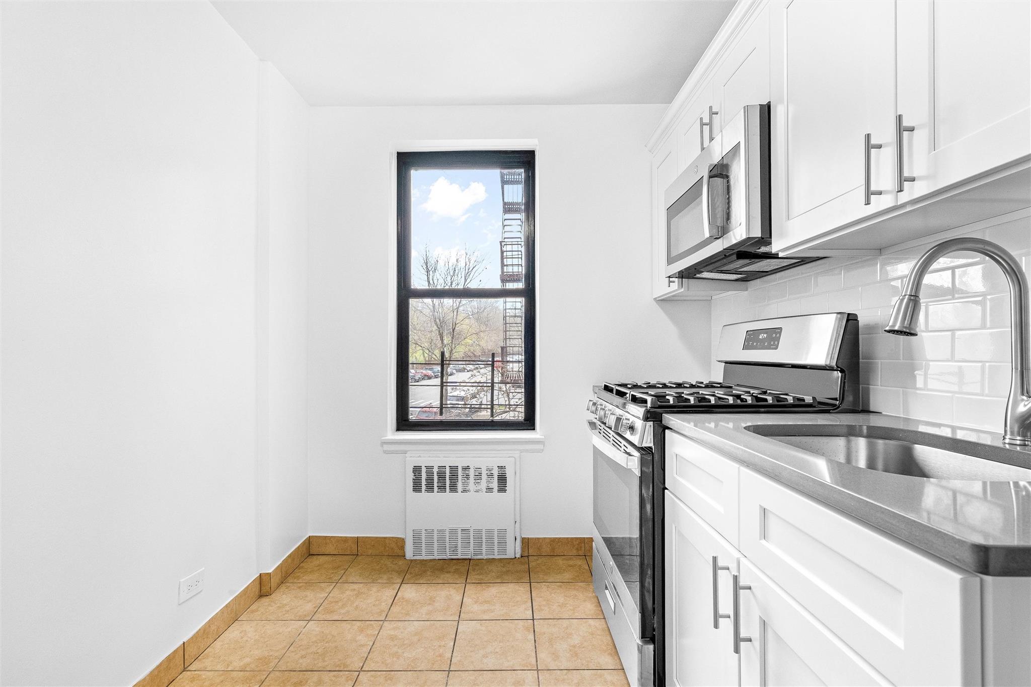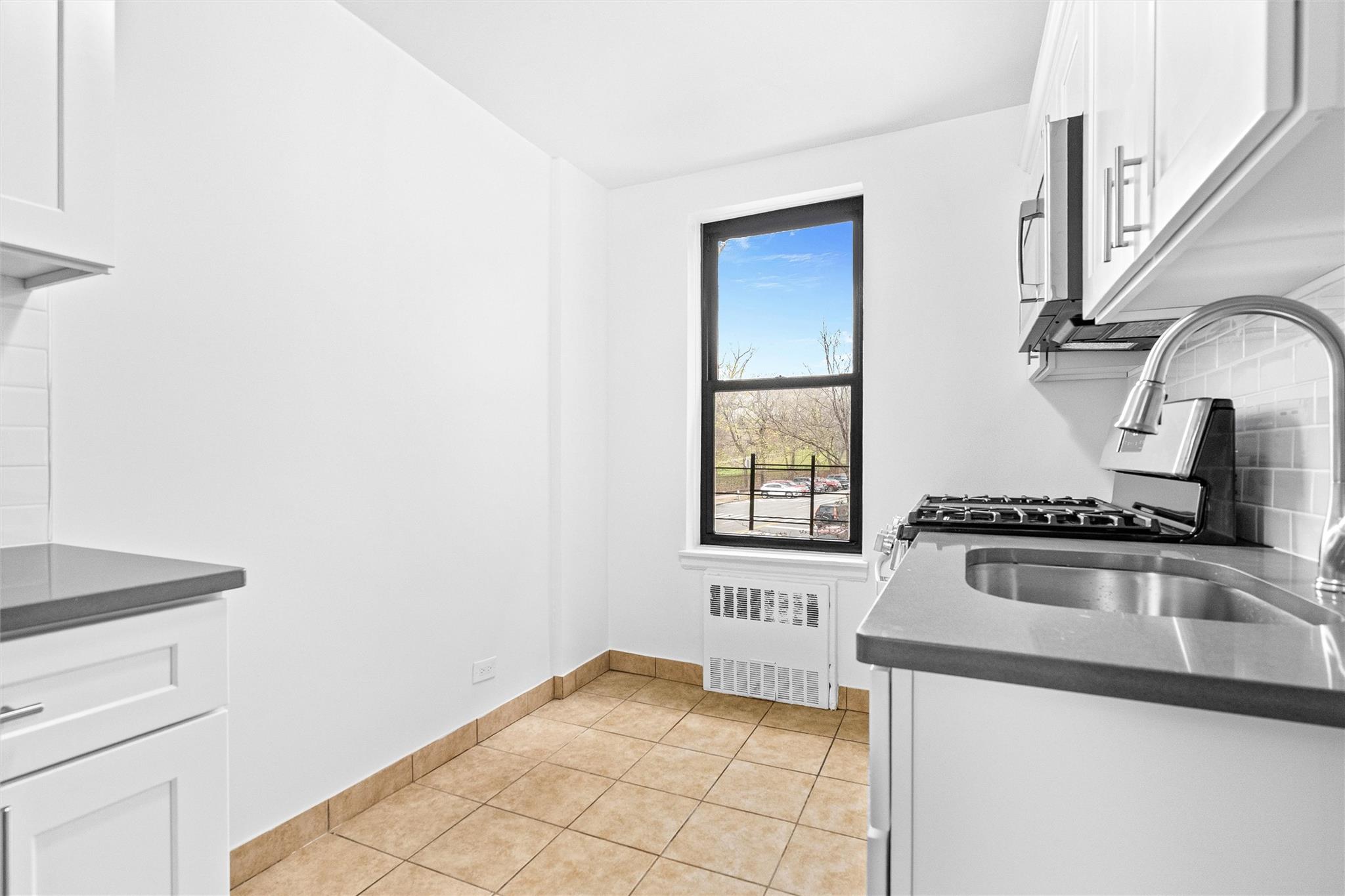 Tastefully renovated SPONSOR unit on one of the most coveted blocks in the Bronx. What makes this unit unique is a versatile floor plan with a spacious primary bedroom and a flex room, which can be used as a second bedroom or an office/studio. Enjoy unobstructed, serene views of Bronx Park and Reiss Field from each room. Brand new kitchen includes shaker-style hardwood-faced cabinets, quartz countertops with an undermount sink, a functional three-chamber fridge, and thought-through use of space. A monochromatic bathroom adds to the minimalist style of the apartment. Post-war Reiss Hall building is nestled in a jogger and cyclist-friendly area. All nature lovers will appreciate the proximity to the NY Botanical Garden as well as the famous Bronx Zoo. Located just minutes away from a major transportation hub at #2 and #5 White Plains Rd train station, Bx12 cross Bronx bus, and an easy entrance to the Bronx River Pkwy and Pelham Pkwy highways, this charming residence will appeal to those with the highest level of living standard. Make sure to see this beauty before it is gone! Live-in super.