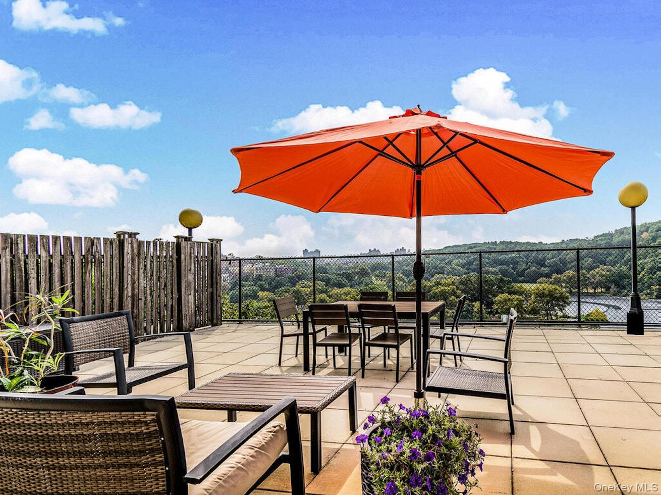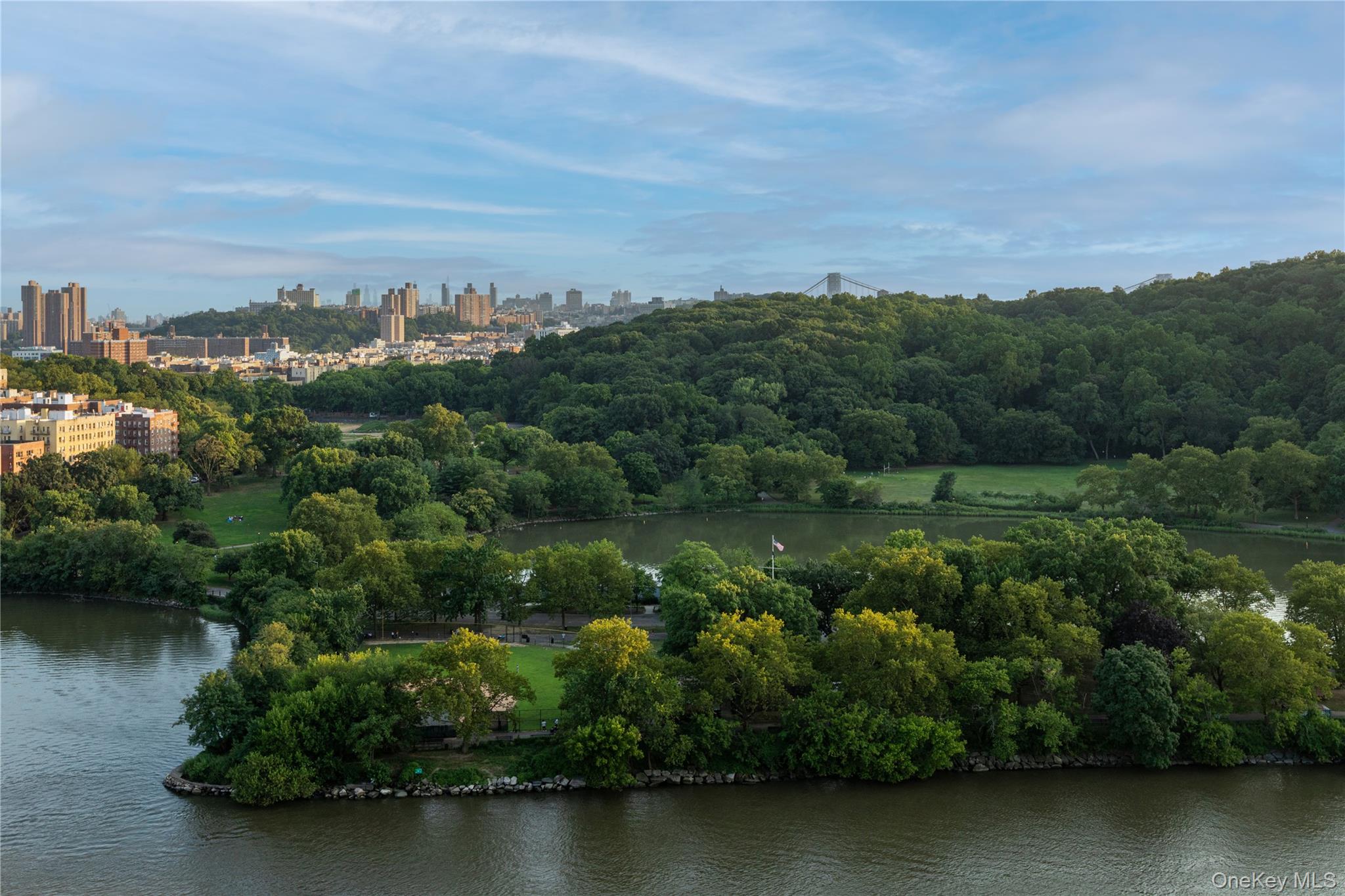 Immerse yourself in spectacular river views from every window of this south- and east-facing corner two-bedroom, two-bath apartment, complete with a private terrace. Located in the highly distinctive Blue Building at 2400 Johnson Avenue, this residence features an L-shaped living and dining area where expansive windows flood the space with natural light. Enjoy breathtaking views of Inwood Park, the Hudson River, the East River, and the Palisades. Sip a glass of wine as you soak in the stunning sunsets and the captivating NYC skyline as evening falls. Upon entering, you're welcomed by a spacious hallway with abundant closet space to meet your storage needs. The large living room flows seamlessly into a separate dining area that opens onto the terrace. The windowed kitchen is thoughtfully designed with full-sized appliances, granite countertops, and ample cabinet space—perfect for all your culinary creations. Both bedrooms are generously sized and feature east-facing windows that bathe the rooms in morning sunlight. The primary bathroom is en suite, while the second bathroom is windowed and includes a tub. This full-service luxury cooperative offers a 24-hour attended lobby, a year-round indoor pool, a fitness center currently under renovation, a community deck, a laundry room on your floor, storage options, and a three-level parking garage with available spaces. It's also pet-friendly—one dog is welcome with prior approval. Ideally located near shops, schools, local and express buses, the #1 train, and Metro-North, this apartment offers the perfect blend of comfort and convenience. Showings are by appointment only—don’t miss your chance to own this exceptional property while it’s still available!