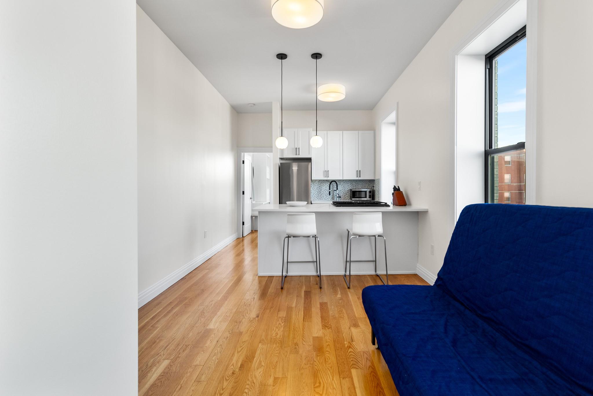 FRESH PRICE! Welcome to 764 Saint Johns Place #4C, a top-floor 1-bedroom, 1-bathroom condo with abundant natural light in a boutique, walk-up building professionally converted to condominiums in 2023. This modern unit boasts an open-concept layout with soaring high ceilings and rich hardwood flooring, creating a spacious and airy ambiance. The kitchen features sleek stainless steel appliances, a gas range/stovetop, a stylish backsplash, a breakfast bar, and a window that fills the space with natural light. The subway-tiled bathroom offers a clean, contemporary feel, while the bedroom includes a closet with plus modular wall storage and comfortably fits a queen-size bed. Situated in a pet-friendly building, this residence ensures seamless living and peace of mind with Manhattan Skyline views, professional property management and common laundry room. Located in a prime location, you're just moments away from the vibrant Franklin and Nostrand Avenue corridors with diverse dining and grocery options. Enjoy easy access to Prospect Park, the Brooklyn Museum, Botanical Gardens, and the Central Library. Commuting is effortless with nearby public transit options, including subway lines 2, 3, 4, 5, and local bus routes. Experience comfort and convenience in the heart of Brooklyn.