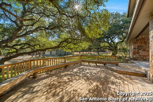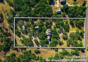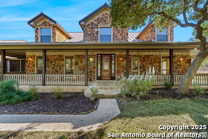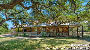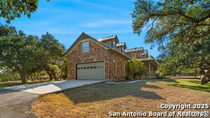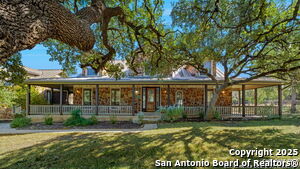 Hill Country Living outside city limits and no mandatory HOA on five beautiful acres of oak studded land. This custom built home offers almost 4000 ft of living space , high ceilings, open floor plan. Main house has 5 spacious bedrooms , 4.5 bathrooms with a loft apartment above the garage with a full bath. There is a large upstairs play area or flex space. Downstairs office with closet or could be used as a secondary bedroom downstairs. Detached shop / garage with another full bathroom and unfinished space above for another living area plumbed and ready to build out. Property is completely fenced , private gate , private well and septic. Rare opportunity. Directly between Fair Oaks Ranch and Bulverde. There is also a barn / covered stall for horses or additional storage.