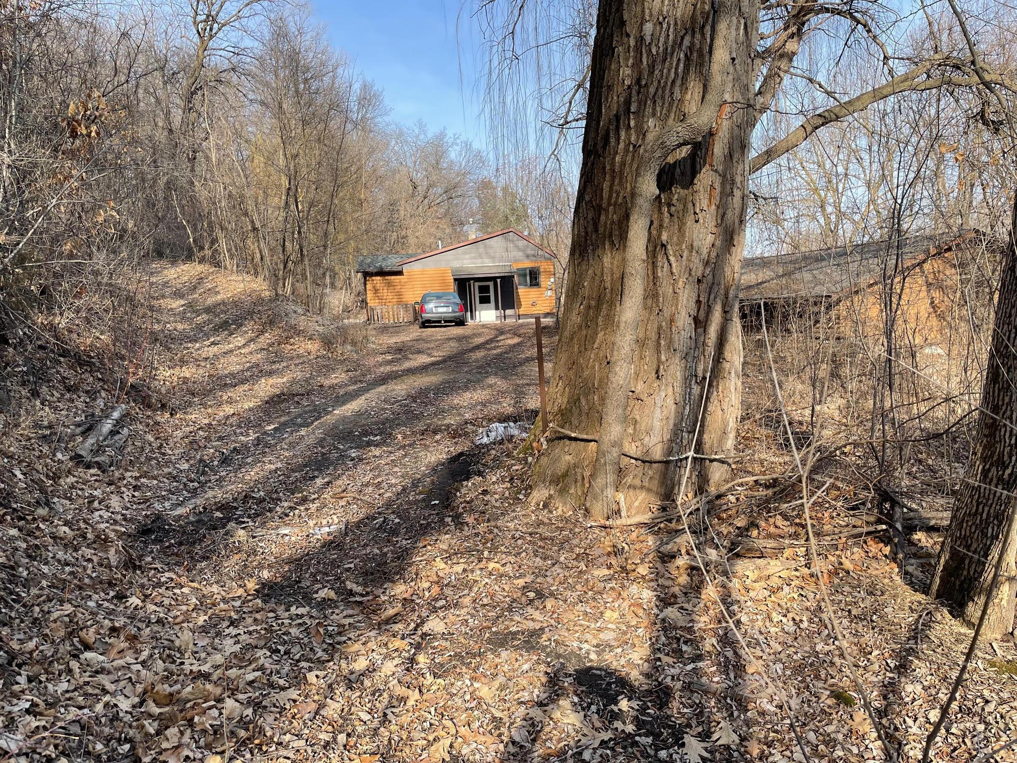 Attention investors: 2 bedroom 1 1/2 bath house and multi use garage building are on a 2 acre multilevel Bluff property, within the City Of Carver. Parcel is zoned, residential multifamily, which allows for a variety of development scenarios. Including, single family homes, duplexes, 6 to 8 zero lot line townhomes, or an eight unit multifamily building are possible with City approval. All utilities are already at Property location. The house interior is, finish to suit. Across the street is Carver Creek and the Minnesota Valley national wildlife refuge, which encompasses the Minnesota River. From the top level of this unique property there are Long views of the Minnesota River Valley.