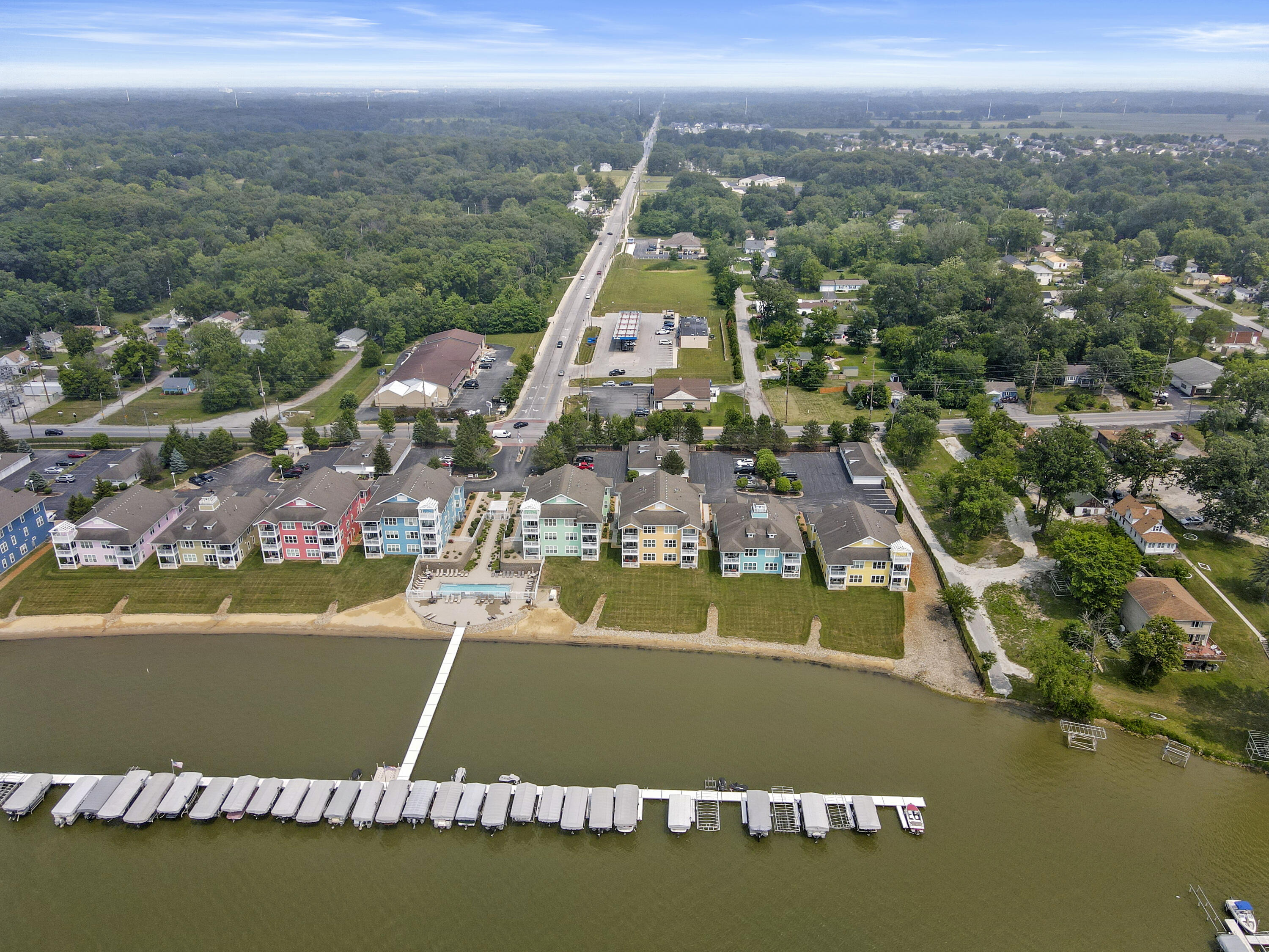 FANTASTIC CONDO ON CEDAR LAKE INDIANA! Sunset Harbor is a Sought After Gated Community. Rare Opportunity Knocking to get on the Ground Floor with Private Entrance. This unit is very conveniently located with in this gated community. Super Nice by having all the fun just out your patio door to enjoy all the green space doing some grilling and playing games with friends and family. Just a few steps away is the Crystal Clear Inground Heated Pool to relax and kick back. The kiddos will surely enjoy the sandy beach making sandcastles. Just a short stroll from your patio is the pier to your very own and conveniently located boat slip No.27. There is also room for two jet ski's just across from your slip. Enjoy your slice of paradise on your patio watching the Amazing Sunsets Over the Water. You'll love this Gorgeous 2 bed / 2 bath Condo w/Private Entrance (Not many have a private entrance). Freshly painted and updated with LVP flooring and New carpet. Awesome Primary Bath w/Walk-In shower, Dual Vanities and Dual Mirrored Medicine Cabinets. Guest Bath w/New Vanity, Lights & Mirror. Kitchen has beautiful refinished cabinets w/pantry, Granite counter tops, island and stainless steel appliances. Refrigerator and Stove new last year. Unit comes with a deep oversized detached garage that is full of cabinets. Exercise room has weights, treadmills, ellipticals, television and music. Mailbox and garbage drop off are conveniently located just outside your door. HOA fee includes pier, heated pool, grass, snow, landscape, cable, garbage, soft water and exterior maintenance. Just outside your gated community are these and more convenience's that are within walking distance. Restaurants, Ice Cream Shop, General Grocery Store, Barber Shop, Hardware Store, Gas Station and Liquor Store. Cedar Lake is an All Sport Lake. Grab this one and enjoy all that the lake life has to offer!