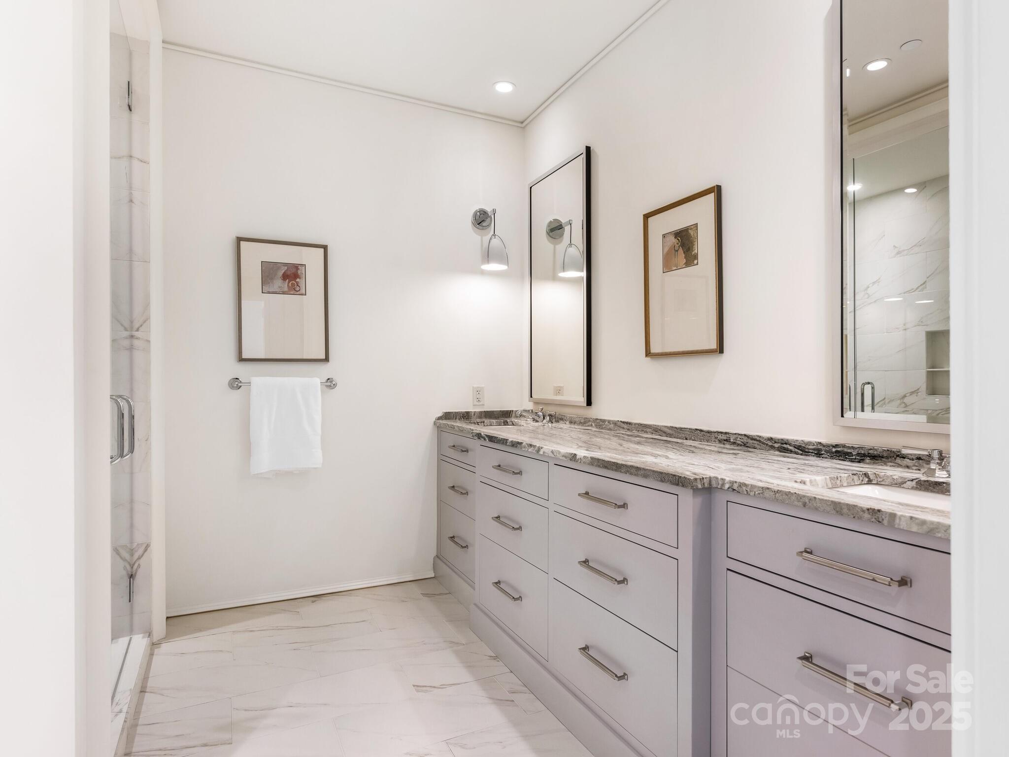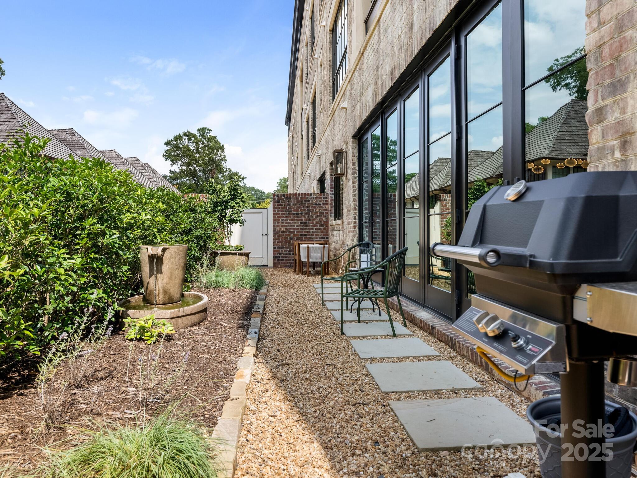 One of the most exclusive luxury condos located in the heart of Myers Park. Brians Speas developed this fabulous project with the help of the well known architect Ken Pursley. The building has 17 units that offer complete privacy and wonderful views of tree lined streets. This unit is located in the best part of the building - located in the back corner that has complete privacy and away from the other townhomes. High ceilings, wide planked flooring, open floorpan with complete privacy for each bedroom. The kitchen includes a newly installed designer tile that is the focal point along with a large marble island. This kitchen is a buyers dream - high end appliances, expansive marble countertops, custom cabinetry and lighting. The Living room is open to the Dining area that is perfect for entertaining. French doors open onto 660 square feet of the pea gravel courtyard which includes a water fountain, built in grill, Dining area, beautiful planting that offers complete privacy. This courtyard is one of the best features to this unit because of the location being at the end/corner of the building and has direct access to the backyard thru the units gate . The Primary Suite has a picture window that has the direct view of the yard and magnolias. Secure gated entry, two deeded parking spots, storage unit and wonderful common areas in the building!
