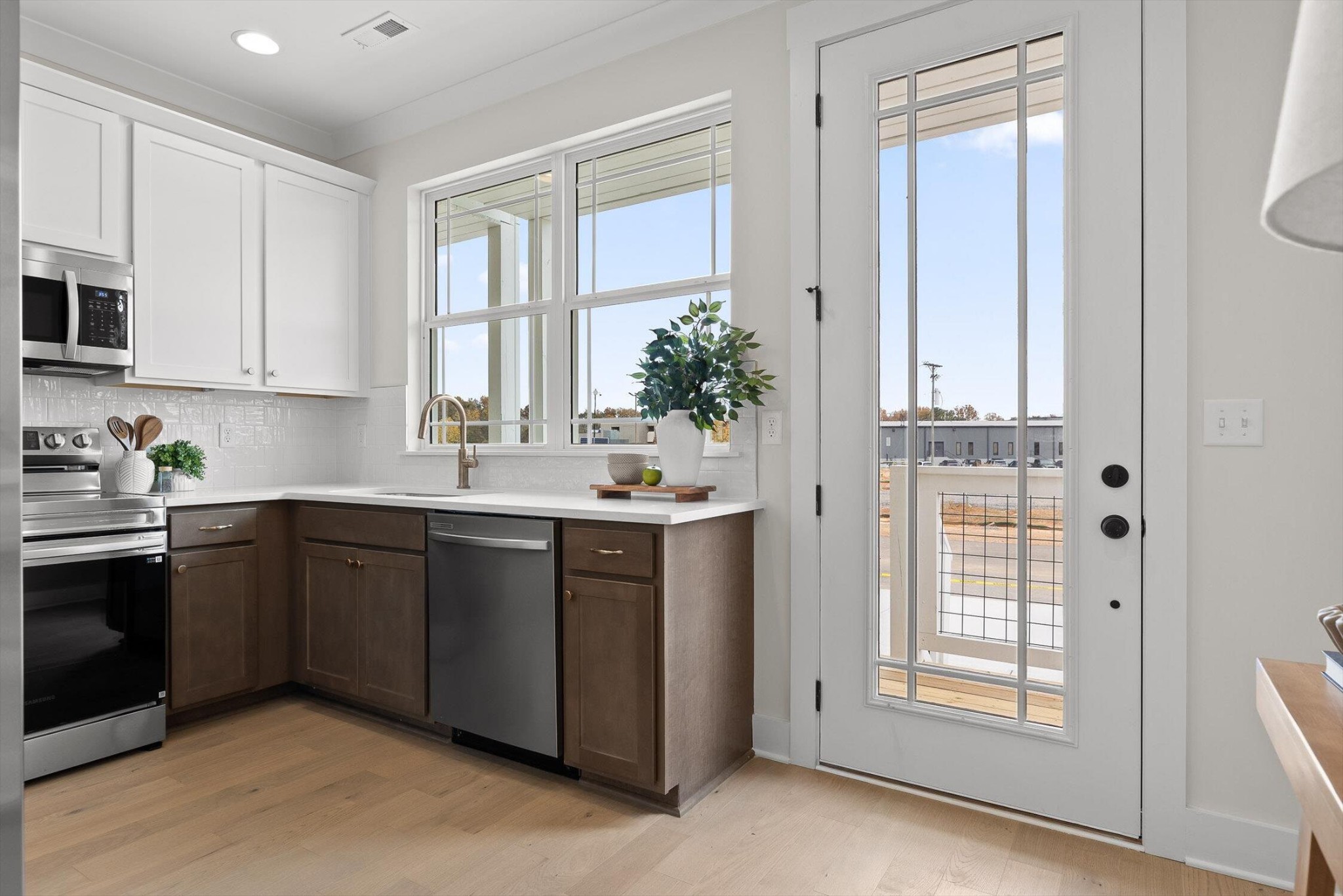 Welcome to Cielo Luxury Townhouses, a brand-new East Ridge community designed for easy, modern living just 10 minutes to Downtown Chattanooga and steps from Parkridge East Hospital. This 3 bedroom, 2.5 bath floor plan features 1,482 square feet of functional living space with clean finishes and multiple outdoor spaces. The main floor offers a bright and open layout with a spacious living area, dining space, and a stylish kitchen that includes quartz countertops, designer cabinetry, stainless appliances, upgraded lighting, and a window that brings in tons of natural light. Upstairs, the primary suite includes a walk-in tile shower, double vanity, and a layout that feels peaceful and private. Two additional bedrooms offer generous space for guests, a home office, or kids rooms. The guest bath has modern finishes, great storage, and a clean design. Laundry is located on the same level for convenience. This floor plan stands out for its four outdoor spaces—a covered front & back porch and two upper front porch & back balconies that give you room to enjoy the outdoors year-round. Every home at Cielo includes energy-efficient construction, smooth ceilings, a programmable thermostat, and professionally selected exterior color packages. These townhomes are not in a flood zone, investor-friendly, and open to mid-term rental opportunities. Multiple units, color packages, and upgrade options are available depending on the stage of construction.