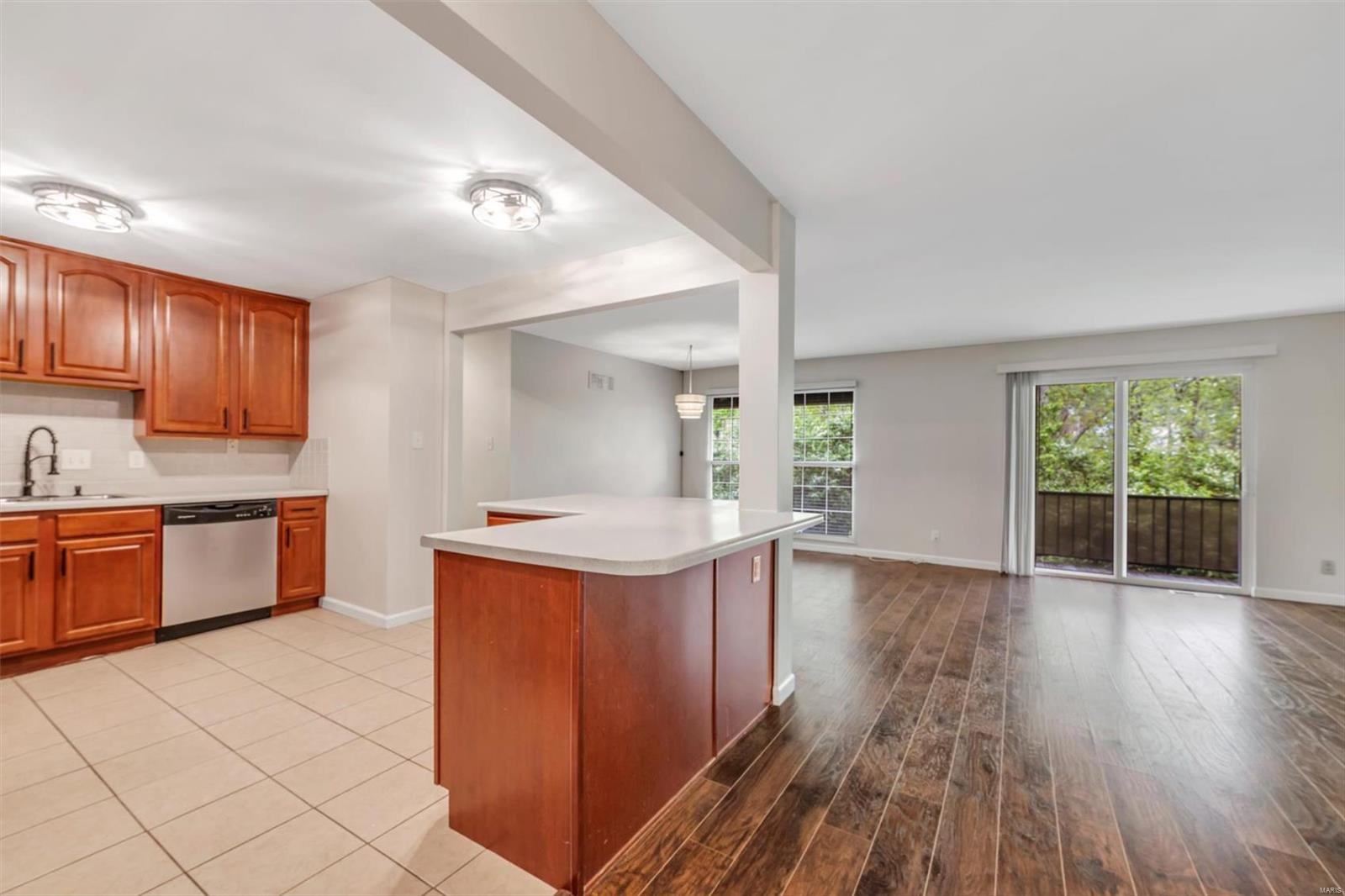 Welcome to 13453 Coliseum Dr #B in Chesterfield! As a major bonus, the seller is covering the buyer's first full year of condo fees — that’s over $5,800 in savings at closing! This beautifully updated 3-bedroom, 2-bath condo offers gleaming hardwood floors, a modernized kitchen with custom cabinetry and center island, and two fully renovated bathrooms. The spacious primary suite is a true retreat, featuring double closets and a private bath with a separate shower. Enjoy a private backyard with a covered deck, perfect for relaxing or entertaining. Additional highlights include an attached 2-car garage, newer HVAC, brand-new water heater, and an unbeatable location near Olive Blvd, Highway 141, and I-270. Enjoy low-maintenance living with access to a community pool, clubhouse, and more, all within the top-rated Parkway Central School District. Move-in ready and packed with value — don’t miss it!