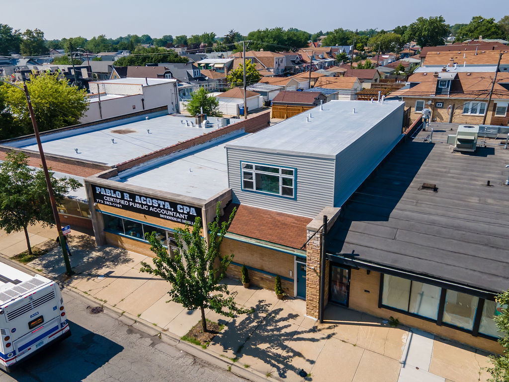 Outstanding opportunity to own a well-maintained mixed-use building in the Portage Park. This property includes two PINs and offers incredible flexibility for both investors and owner users. The main level features 3,000 sq ft of open commercial space with high ceilings and exposed brick. Large employee kitchen, 4 bathrooms, ample storage and private parking. This property is perfect for a variety of business types, including retail, professional or medical offices, personal services, restaurant/cafes, fitness studios and more. Above commerical space is a beautifully renovated (2024) 1,000 sq ft. apartment (2 beds, 1 bath) with new kitchen and appliances, harwood floors, new furnace, new water heater, central air and new electrical service. This residential unit is ideal for additional income or live/work use. Other upgrades include a full tear-off and new decking on the upper roof (2023), Lower roof approx 10 yrs old, parking lot sealed (2021). Property is in great condition. Sold AS-IS. Schedule your tour today!