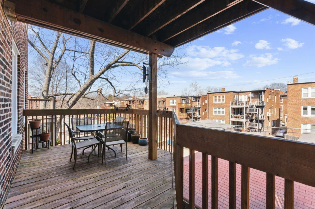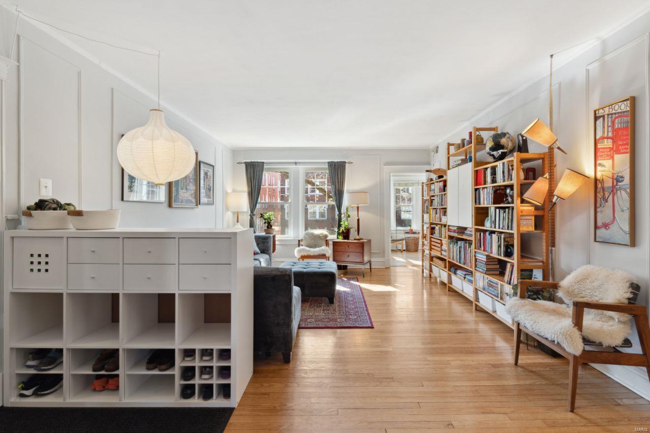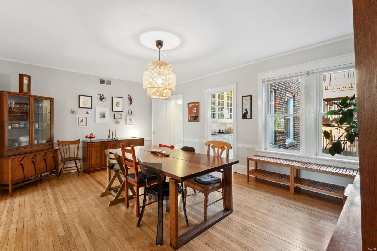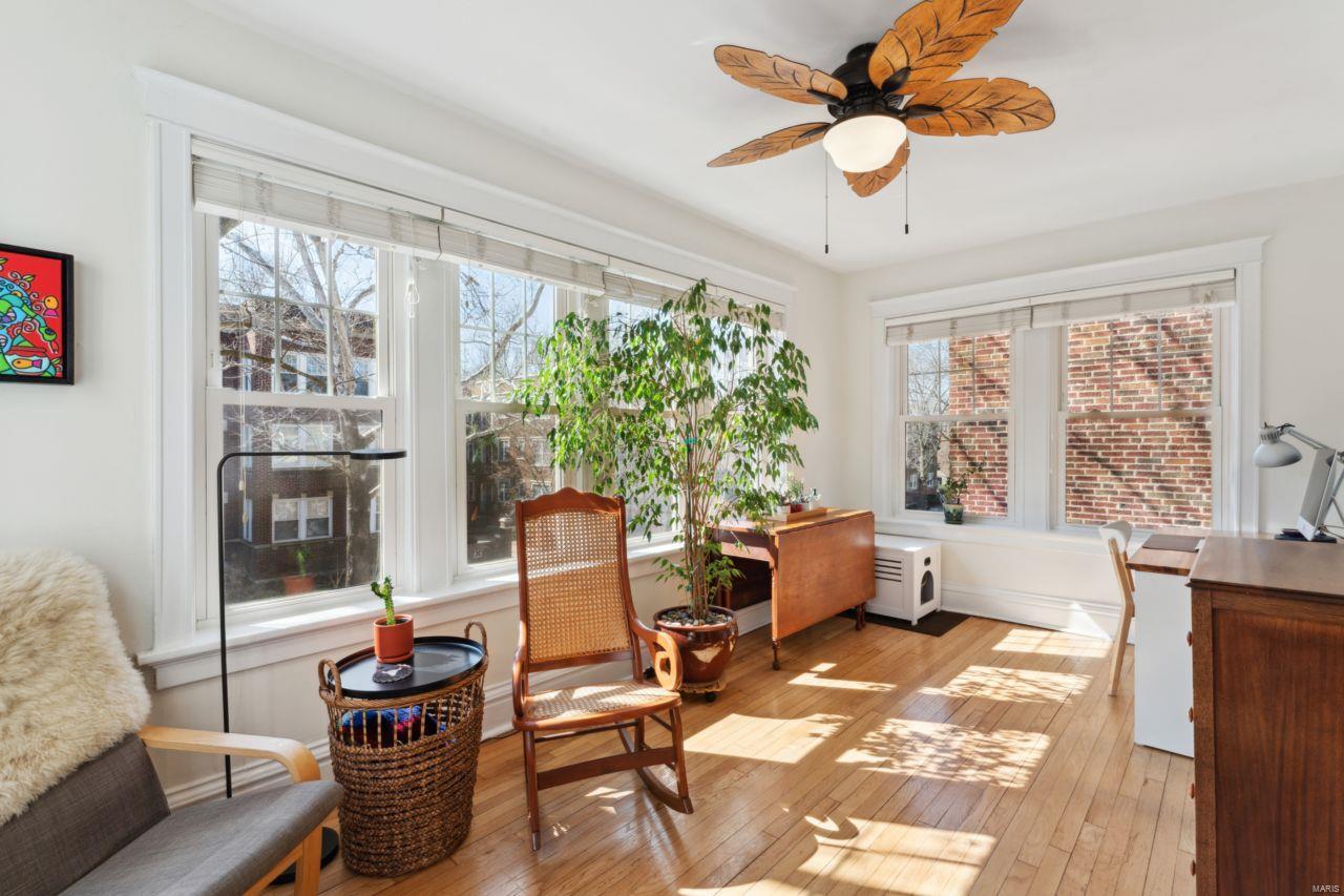 Large 1,785 SQFT second-floor condo, where natural light fills every corner, creating a warm & inviting atmosphere. Neutral palette & beautiful hardwoods enhance the bright & airy feel, making it a perfect retreat for both relaxation & entertaining. Classic wall molding levels up the welcoming living room. Host memorable dinners in adjacent large dining room. 3 ample bedrooms & 2 full nicely updated bathrooms. Stylish ceiling fans, butler’s pantry, new dishwasher (2025) & built-in linen closet. Sunroom is perfect spot for office or relaxing with a book. Savor spring mornings on your private outdoor deck. Located in desirable DeMun neighborhood/Clayton School District, this condo offers unmatched convenience. Enjoy a short walk to Forest Park, restaurants & coffee shops, and a variety of entertainment options. Basement has gated storage + washer/dryer, which stay. One car garage. Note: Unit must be owner-occupied for 2 years before renting out & not eligible as Airbnb.