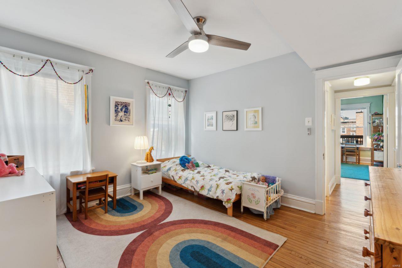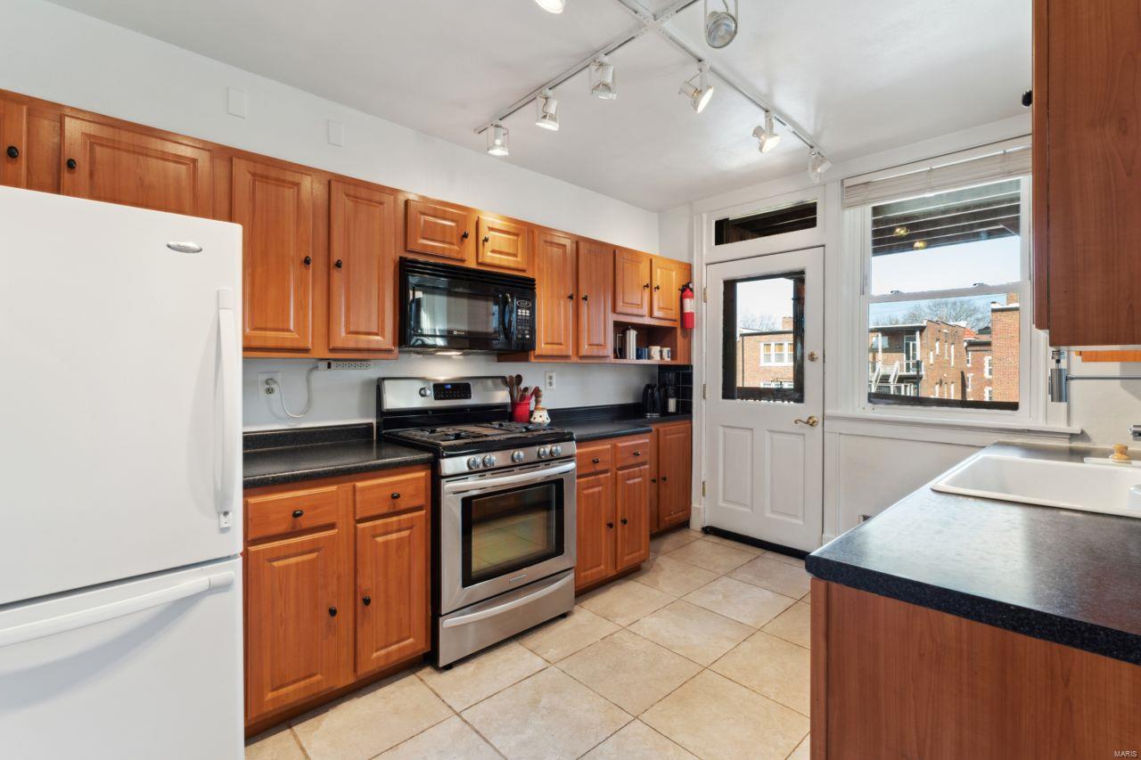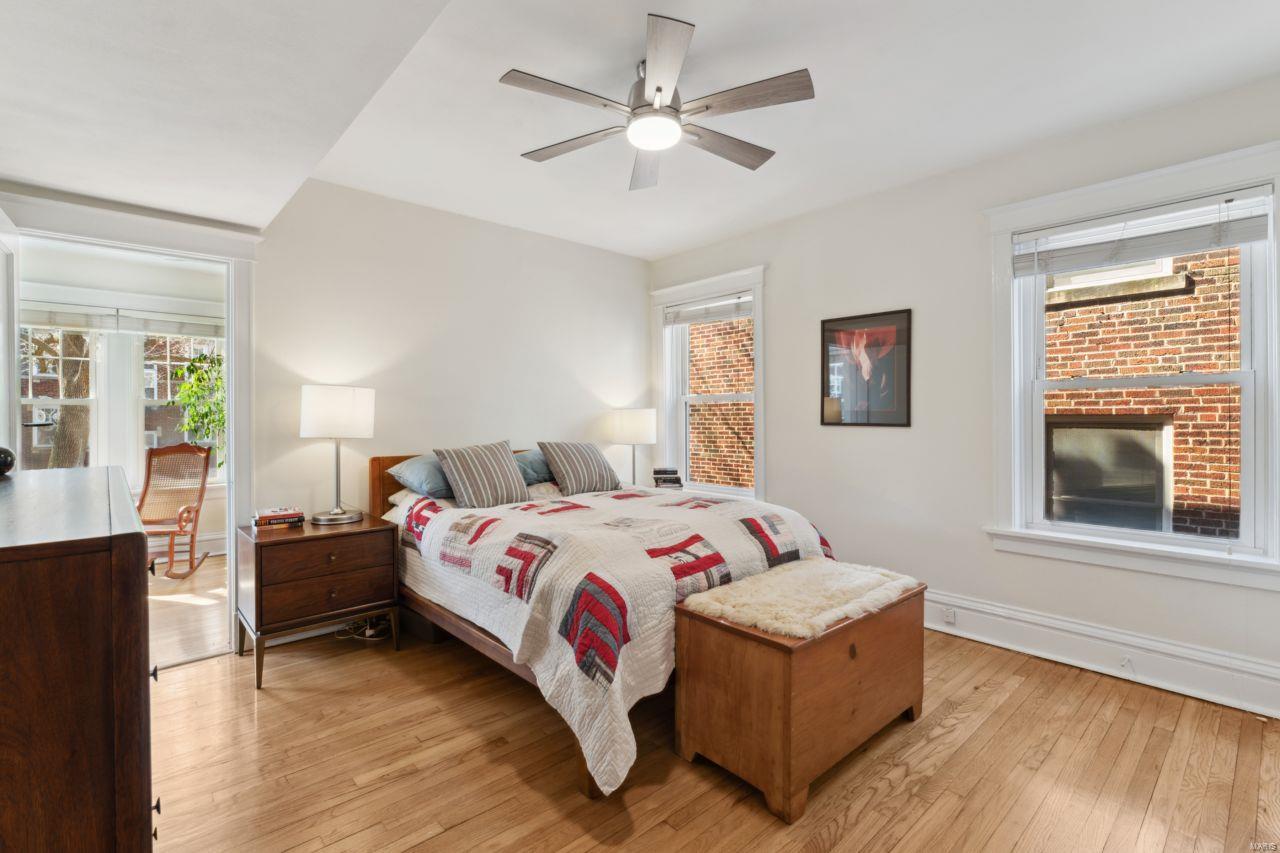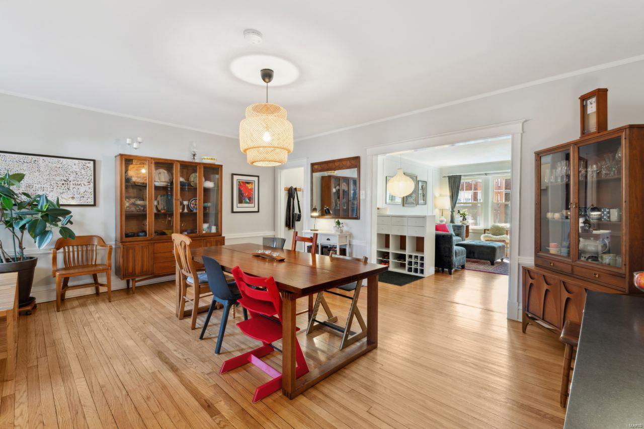 Large 1,785 SQFT second-floor condo, where natural light fills every corner, creating a warm & inviting atmosphere. Neutral palette & beautiful hardwoods enhance the bright & airy feel, making it a perfect retreat for both relaxation & entertaining. Classic wall molding levels up the welcoming living room. Host memorable dinners in adjacent large dining room. 3 ample bedrooms & 2 full nicely updated bathrooms. Stylish ceiling fans, butler’s pantry, new dishwasher (2025) & built-in linen closet. Sunroom is perfect spot for office or relaxing with a book. Savor spring mornings on your private outdoor deck. Located in desirable DeMun neighborhood/Clayton School District, this condo offers unmatched convenience. Enjoy a short walk to Forest Park, restaurants & coffee shops, and a variety of entertainment options. Basement has gated storage + washer/dryer, which stay. One car garage. Note: Unit must be owner-occupied for 2 years before renting out & not eligible as Airbnb.
