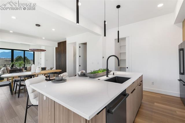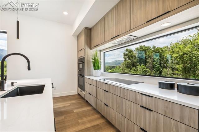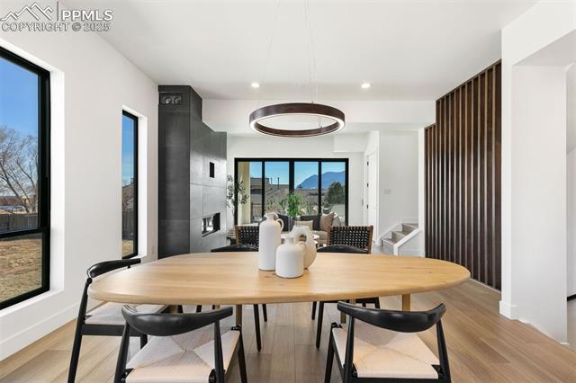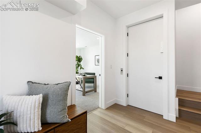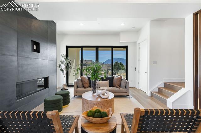 Under Construction to be completed in February 2026. Welcome to Talley Circle Townhomes, where modern luxury meets Colorado’s iconic mountain backdrop. Perfectly perched on a quiet cul-de-sac, these homes offer sweeping views of Pikes Peak and the Front Range while placing you just minutes from Garden of the Gods, hiking trails, and downtown Colorado Springs. Step inside and discover a home designed to impress. The custom-upgraded kitchen is a true showstopper, featuring Bosch appliances, sleek cabinetry, a hidden coffee station, and a walk-in pantry large enough to store every appliance with ease. An open-concept main level flows seamlessly with soaring ceilings, wide-plank LVP flooring, and a cozy fireplace all bathed in natural light and perfect for entertaining. Your primary suite is a private retreat, complete with a spa-inspired 5-piece bath, oversized walk-in closet, and a private balcony where jaw-dropping mountain views greet you morning and night. Two additional bedroom suites, one upstairs, one downstairs, provide incredible flexibility for guests, a home office, or even a media room. Multiple balconies, a spacious patio, and your own private backyard let you soak in the views year-round. Add in a private in-home elevator, oversized 2-car garage with generous storage, and true lock-and-leave convenience and you’ll see why Talley Circle is turn-key living at its finest.