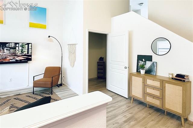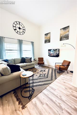 Welcome home to this lovely 3-Bedroom, 3 Bath townhome located near the Powers corridor. From the moment you walk in you will enjoy large amounts of natural light in every room! As you enter the home through the tranquil courtyard, you will find high ceilings, new luxury vinyl flooring and a spacious light and bright living space. The open concept main level family room is ideal for entertaining or just hanging out. A large attached half bath is also conveniently located on the main level. The upper level opens to a spacious, open, bright kitchen with plenty of countertop space and lots of cabinets. The spacious kitchen has new luxury vinyl flooring, is freshly painted and has a newer refrigerator and sink faucet, and again, lots of light! The spacious kitchen also offers a coffee bar, with extra counter space and cabinets and a cozy sitting area. The open eating area also has a walk-out to the private enclosed composite deck. On the private upper level you will find new carpet and 3 bedrooms . There is a nice 3/4 hall bath in the hallway to serve the 2 secondary bedrooms. The primary bedroom has a walk-in closet and a 4 Piece Bath with double sinks. All have been freshly painted and have new carpet! The laundry room is conveniently located upstairs next to the primary bathroom. The attached 2 car garage is located privately tucked down the back stairs from the main level family room. A brand-new roof was installed summer of 2025. This townhome offers the comforts of a spacious and tastefully designed home with some lovely updates including new Hot Water Heater in 2022. Very convenient location with quick and easy access to Powers Blvd, Woodmen, Shopping and Dining.