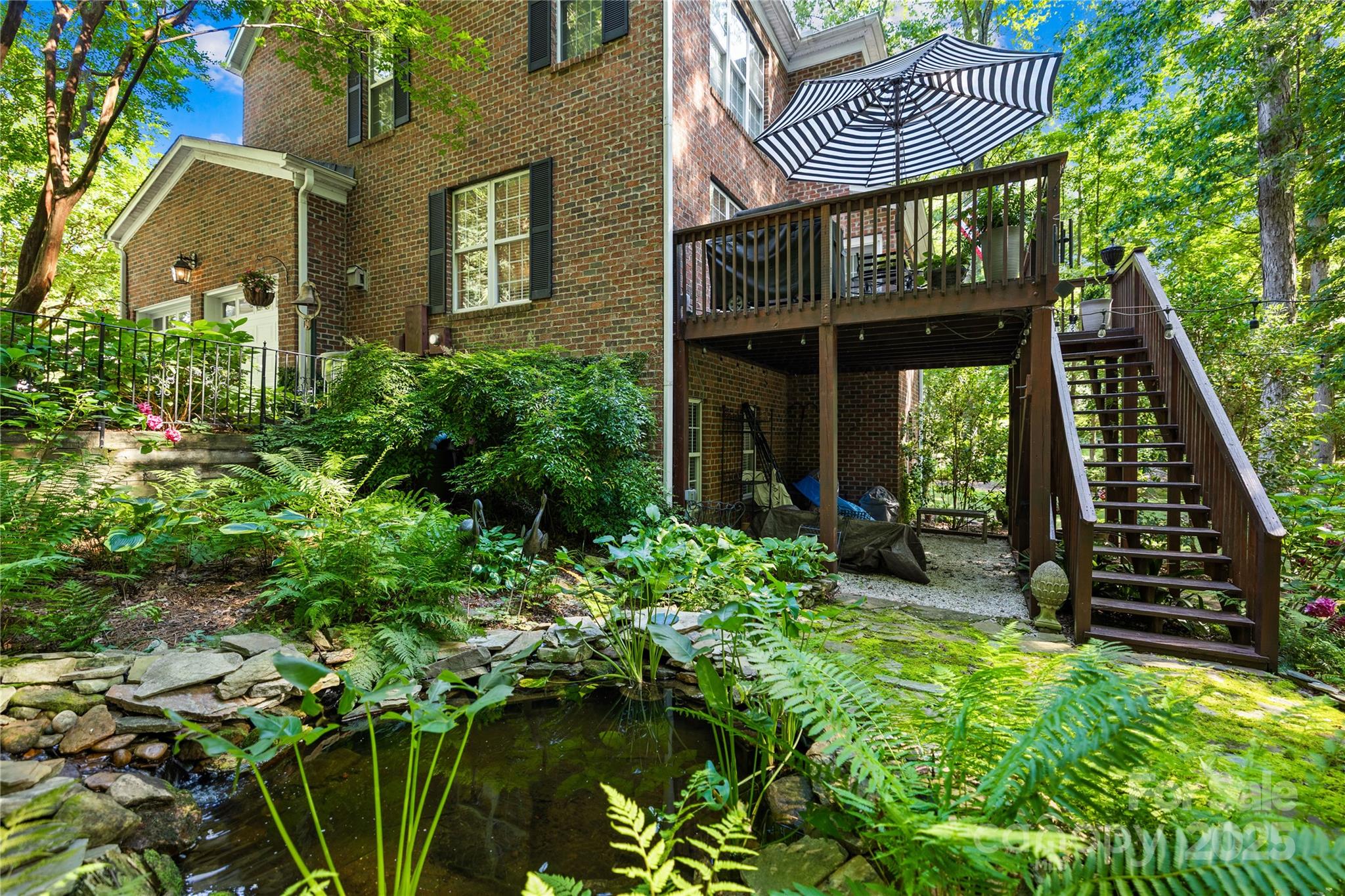 Located exactly between downtown Davidson & downtown Cornelius. A short walk to restaurants & activities and even the College. This all brick home is located in the back of a cul-de-sac lot with tons of privacy in backyard gardens. It truly is a Southern Living paradise with koi pond, extensive landscaping and towering trees. Oversized tumbled Charleston brick with vinyl trim makes exterior maintenance free. This home was intentionally planned to entertain. Formal areas feed into the kitchen & family room and overlook the wooded backyard from the deck. The second story features large primary suite, 3 additional BR's & Bath, a third floor with BR & bath and then the partially finished basement includes living area with gas fireplace, dining area in the kitchenette and a full bath. Unfinished area designed for future bedroom. Perfect setup for in-law suite or apartment. An additional unfinished area currently used as workshop/storage. The amount of living & storage space is amazing.