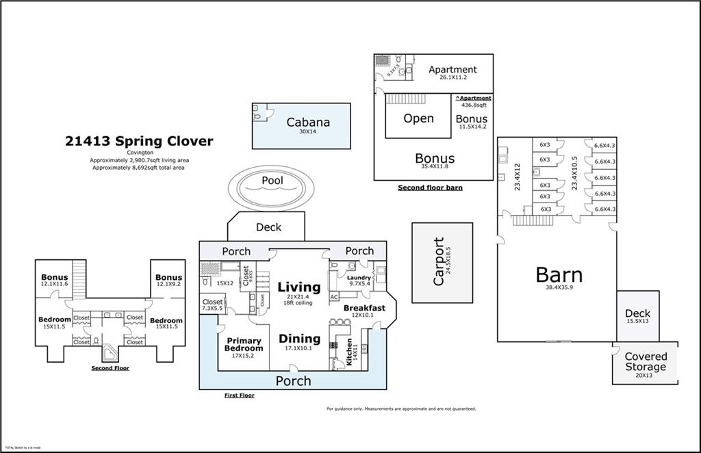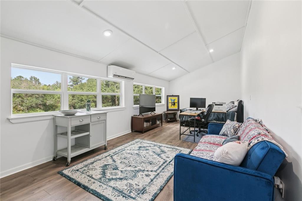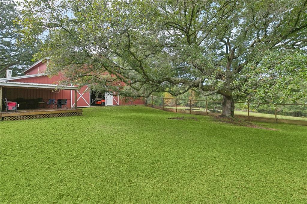 Welcome to your dream retreat on Spring Clover Lane, a quiet country road just off Old Military Road in Covington. Nestled among majestic live oak trees, this picturesque 3-bedroom, 2-bath home sits on 5 beautifully cross-fenced acres—perfect for privacy, relaxation, and enjoying the outdoors. Step inside to find soaring cathedral ceilings and an abundance of natural light, creating a warm and inviting atmosphere throughout. The spacious living area features a charming wood-burning fireplace, ideal for cozy evenings at home. Wraparound porches invite you to sit back and enjoy the serene surroundings from every angle. Outdoors, a private pool and cabana provide the perfect setting for summer gatherings and quiet afternoons. And for those who need extra space to work or host guests, the oversized barn includes a fully climatized 437 sq ft studio apartment or office—complete with its own kitchenette and full bathroom. This one-of-a-kind property offers the perfect blend of country charm and modern comfort, with plenty of space to grow, create, and unwind. Whether you’re seeking a peaceful homestead, a family escape, or a live/work setup, this Covington gem is a rare find.