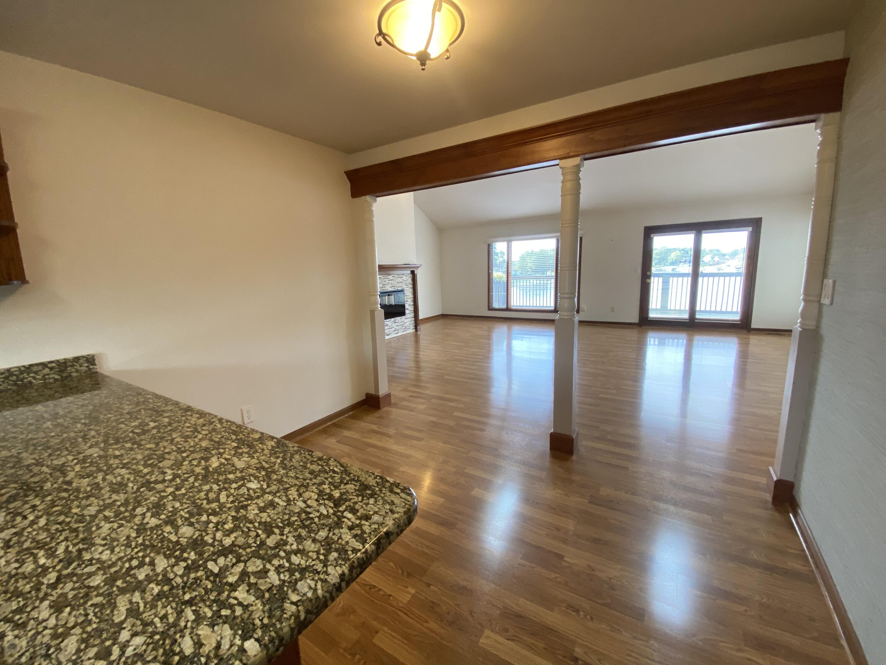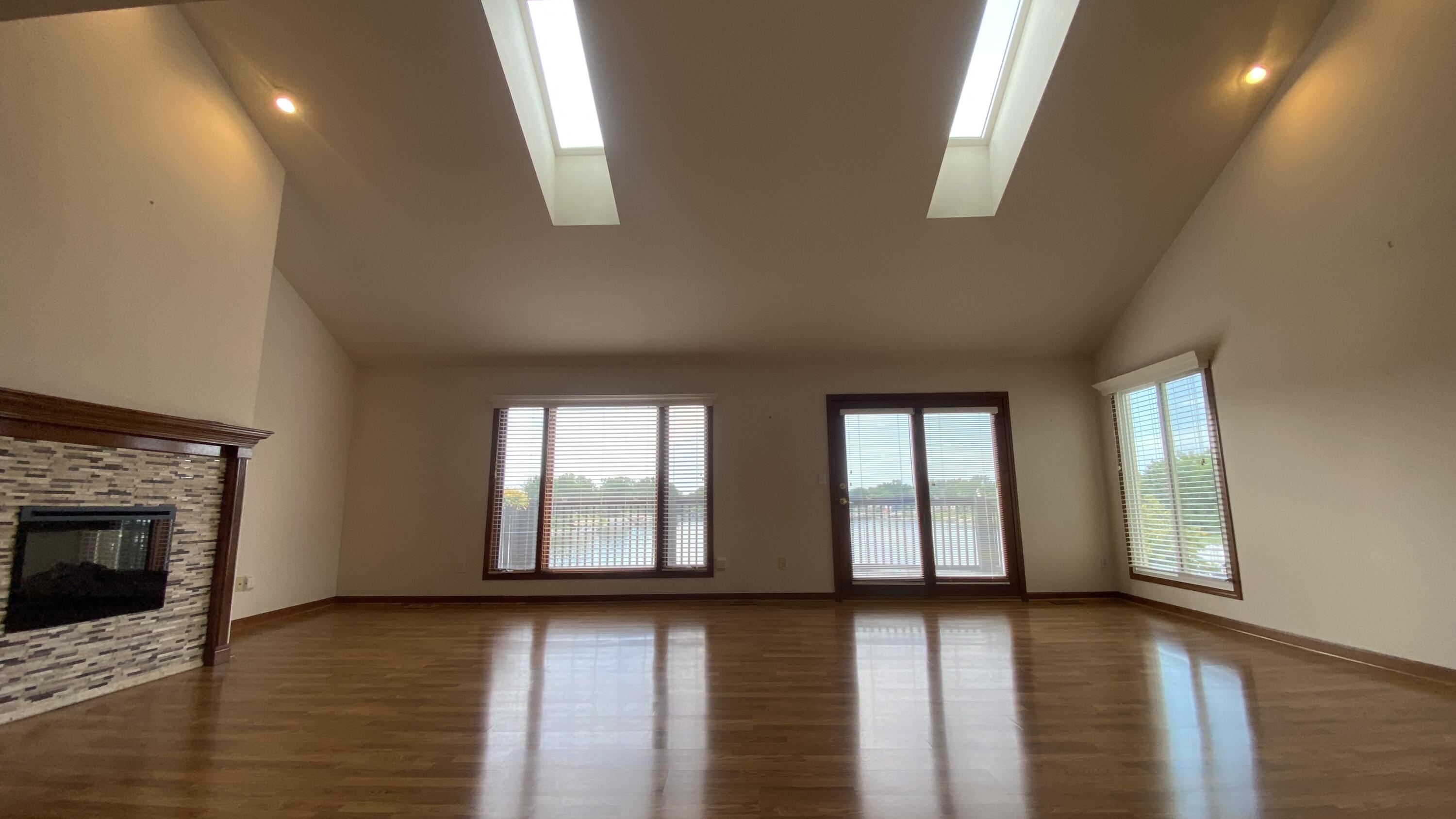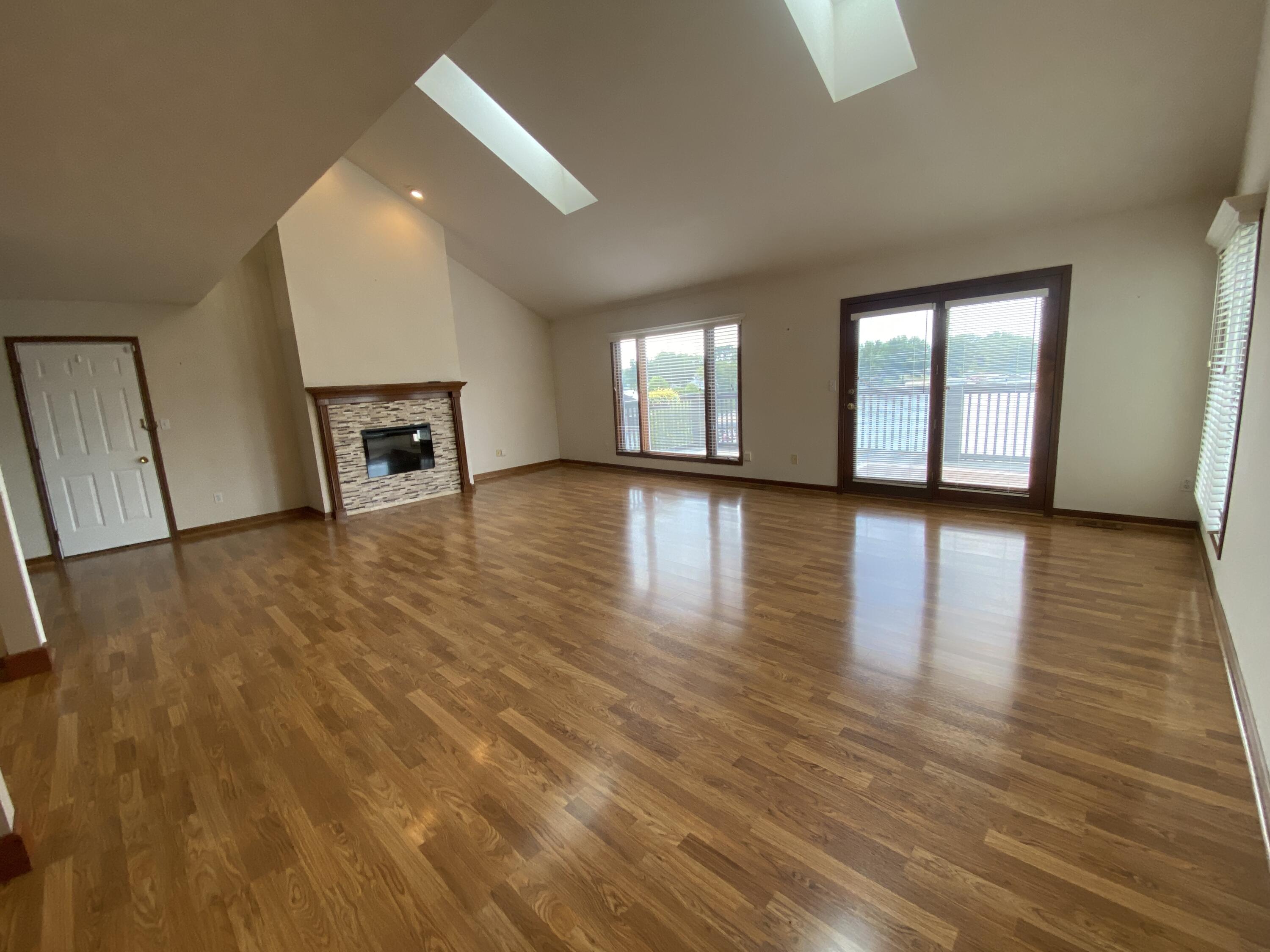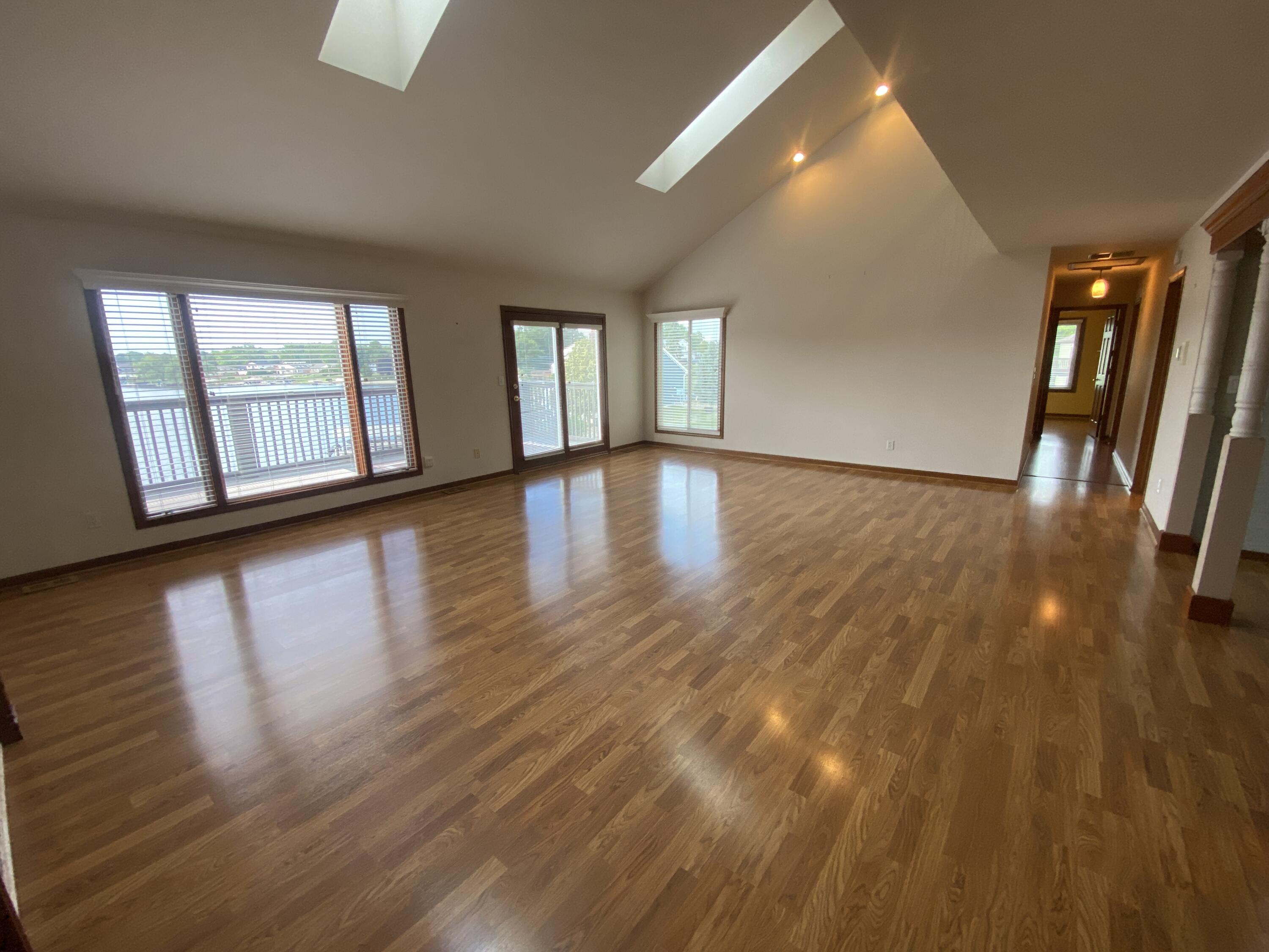Enjoy stunning Lake views from this 3 bedroom and 2 bath condo. Easy maintenance free living located on the all-sport Lake Holiday in resort style community of Lakes of the Four Seasons and all the amenities it has to offer. A bright, open floorplan that takes you from foyer area into the large living room with Lake Views, tall ceilings , complete with electric fireplace and easy care laminate flooring, walk out to Big Deck overlooking the Lake! Living rooom is Open to the kitchen with loads of cabinets, undermount sink, granite countertops, and includes Stainless steel appliances. The primary bedroom has double closets, walkout balcony with lake view and it's own Updated ensuite bath. The Big upper level Rec room overlooks both the Kitchen and the Living room. The two other generous bedrooms have full closets, (one with double closets) laminate flooring, Lake views and share full hall bath. Plus there is a main level laundry/utility room with cabinets and shelves. The condo also has a pull down attic storage in the attached garage. This condo is located steps away from the Lake Holiday, condo boat docks and near Sandy beach with cabana picnic, playground and beach swimming area! Community offers plenty of amenities including, lakes, beaches, golf course, driving range, parks, and dog park, pool, clubhouse, pro-shop, restaurants, summer concerts and more! Well maintained Condo and MOVE IN READY!