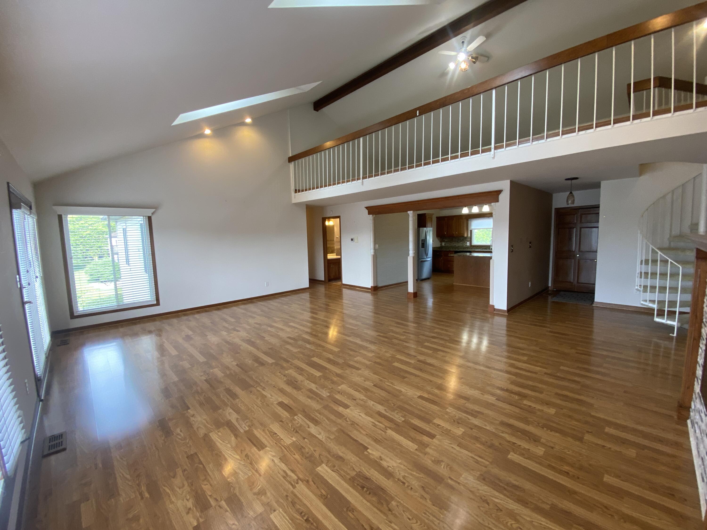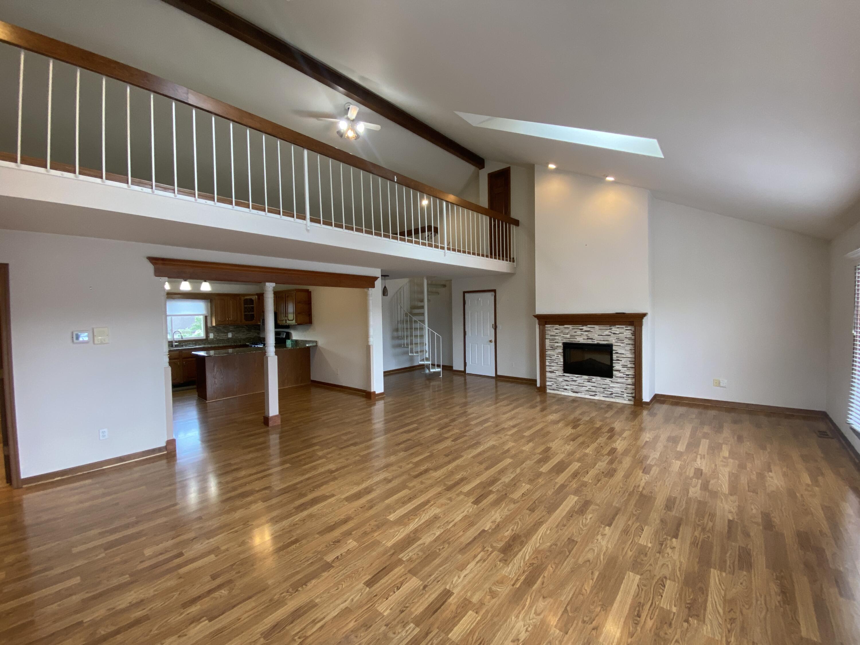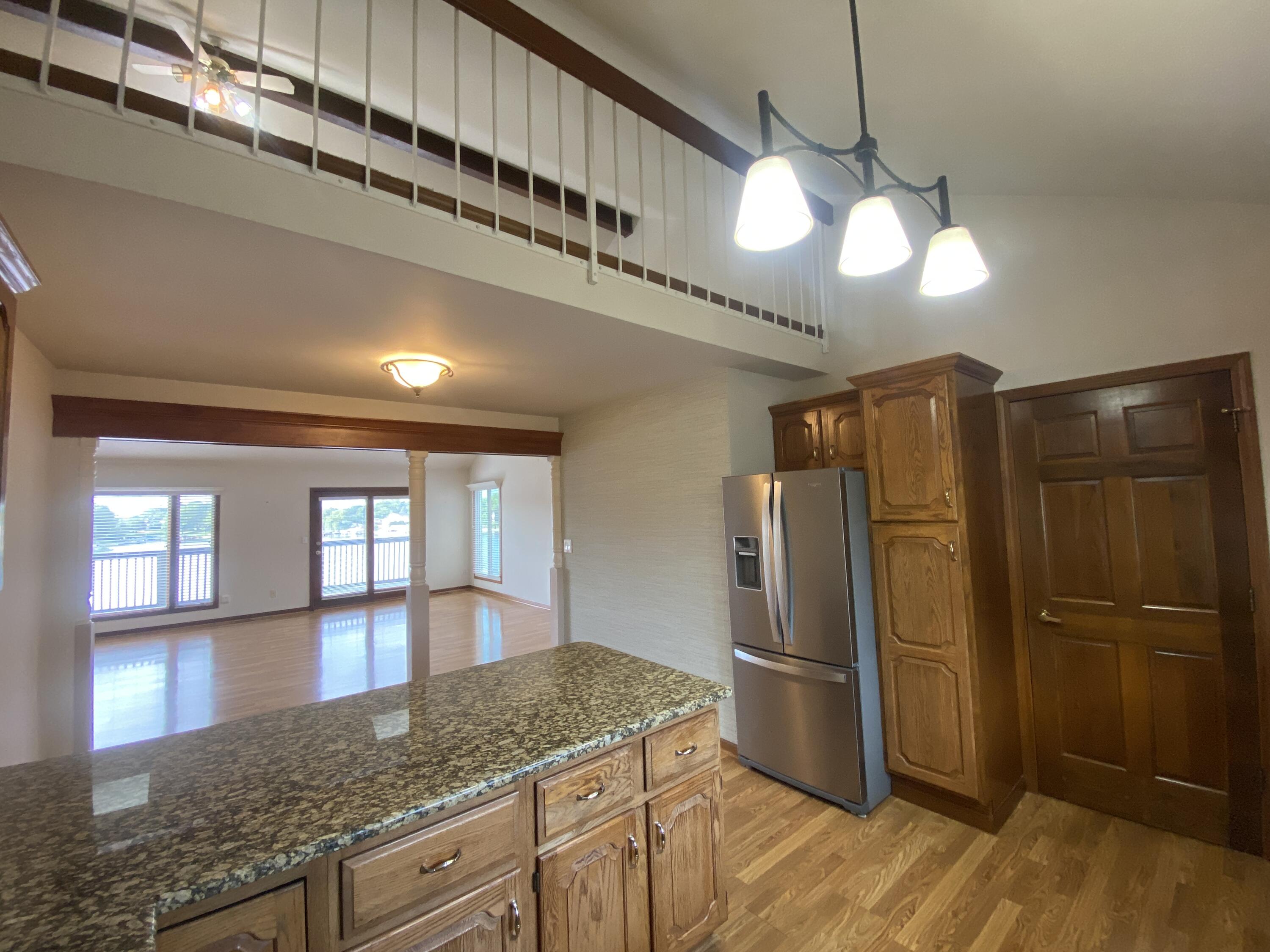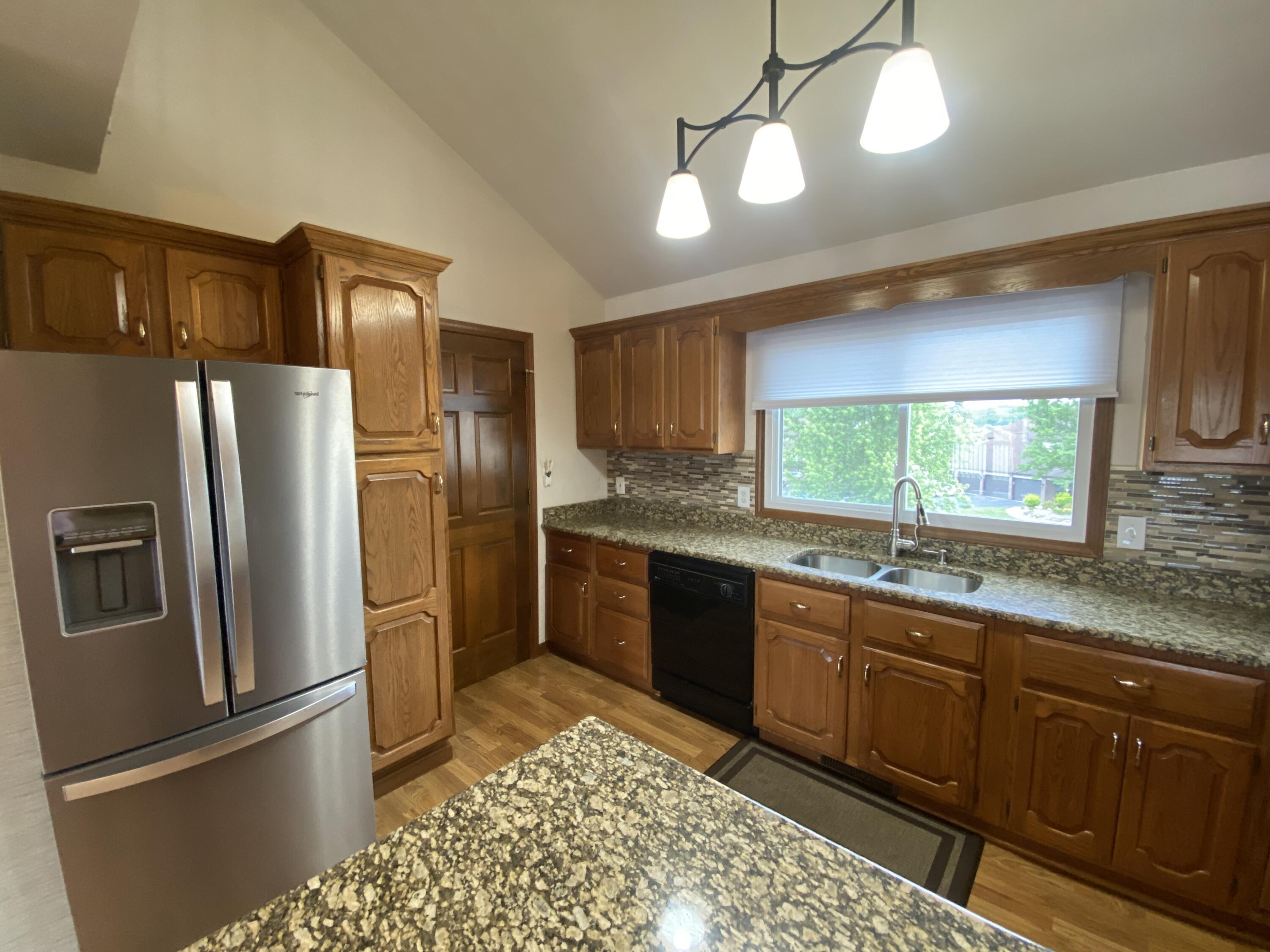 Enjoy stunning Lake views from this 3 bedroom and 2 bath condo. Easy maintenance free living located on the all-sport Lake Holiday in resort style community of Lakes of the Four Seasons and all the amenities it has to offer. A bright, open floorplan that takes you from foyer area into the large living room with Lake Views, tall ceilings , complete with electric fireplace and easy care laminate flooring, walk out to Big Deck overlooking the Lake! Living rooom is Open to the kitchen with loads of cabinets, undermount sink, granite countertops, and includes Stainless steel appliances. The primary bedroom has double closets, walkout balcony with lake view and it's own Updated ensuite bath. The Big upper level Rec room overlooks both the Kitchen and the Living room. The two other generous bedrooms have full closets, (one with double closets) laminate flooring, Lake views and share full hall bath. Plus there is a main level laundry/utility room with cabinets and shelves. The condo also has a pull down attic storage in the attached garage. This condo is located steps away from the Lake Holiday, condo boat docks and near Sandy beach with cabana picnic, playground and beach swimming area! Community offers plenty of amenities including, lakes, beaches, golf course, driving range, parks, and dog park, pool, clubhouse, pro-shop, restaurants, summer concerts and more! Well maintained Condo and MOVE IN READY!