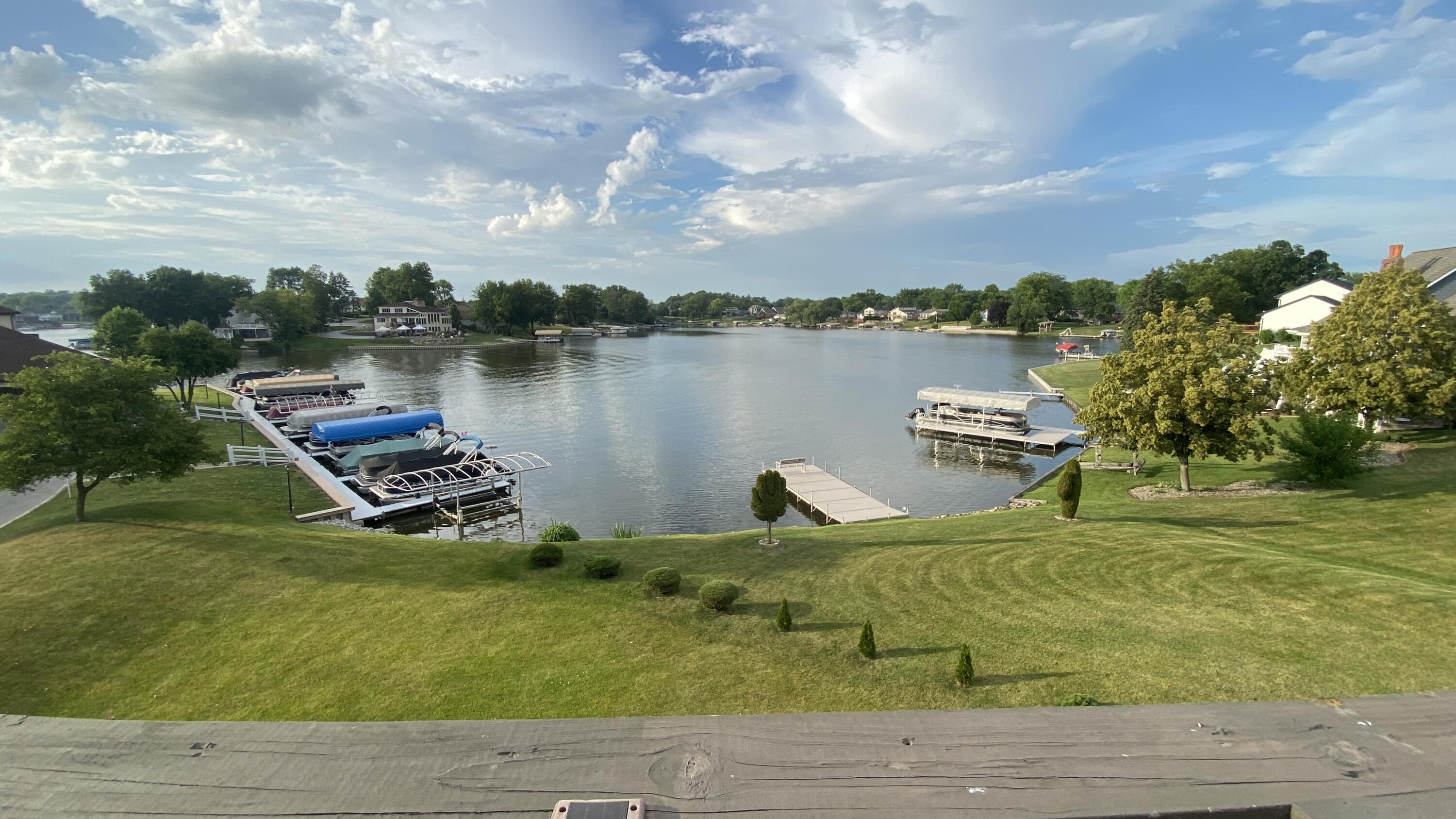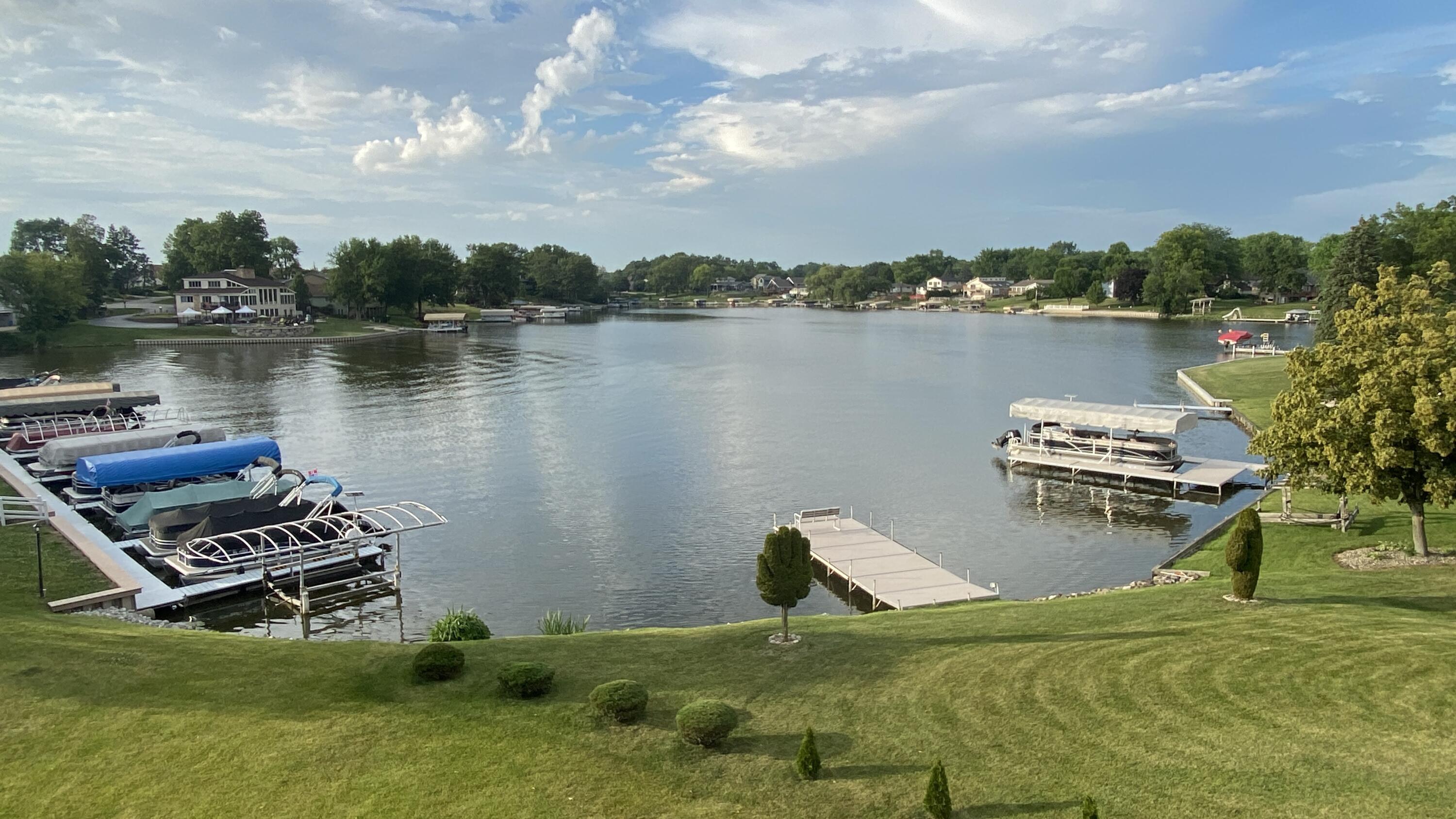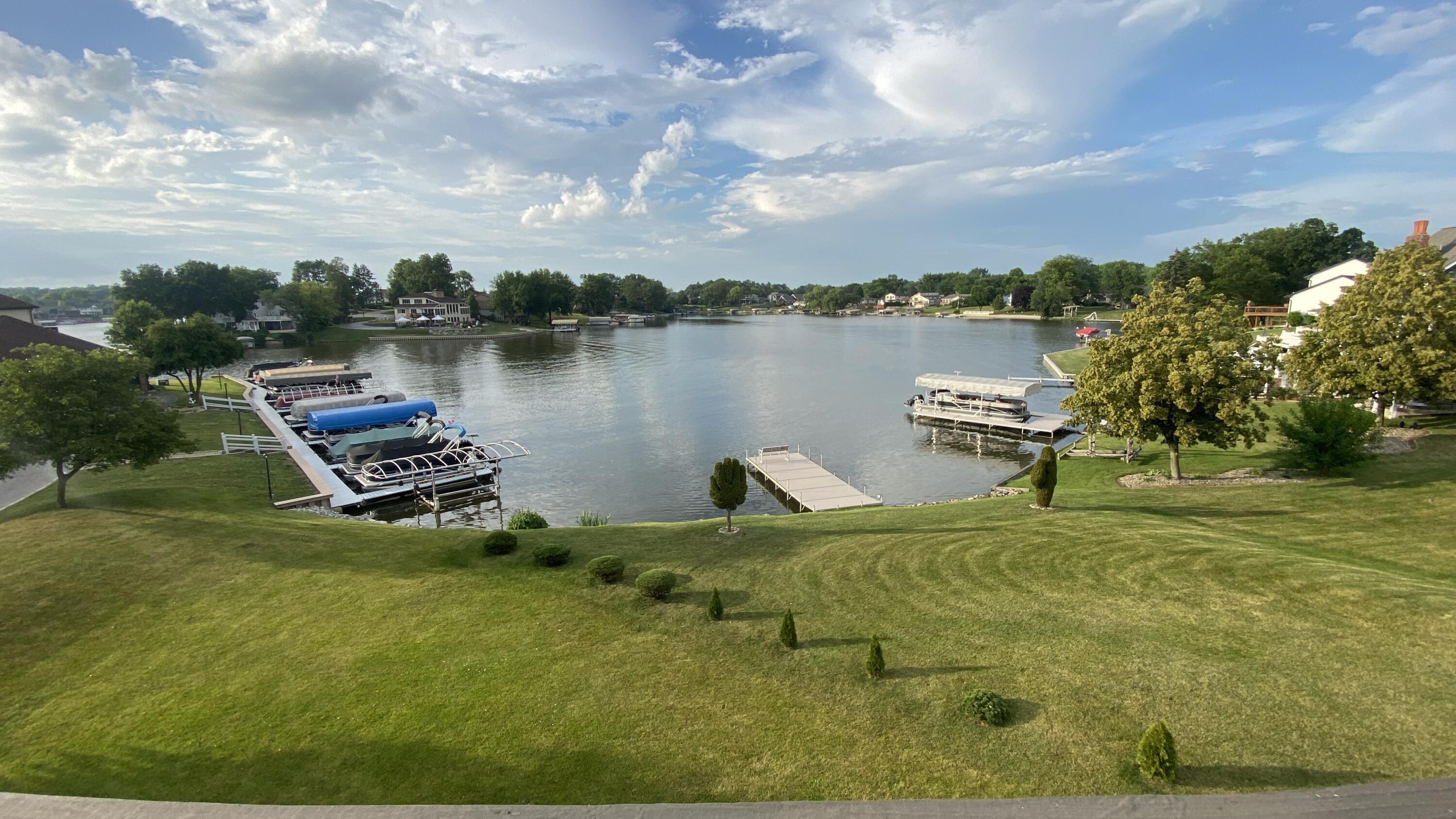 Enter at 109th main entrance, proceed N Lakeshore Dr , Left on East lakeshore Dr, Right on Sunnyslope, Left on Four Seasons Pkwy, right on Forest , right on Sandy Beach, to spinnaker left to 5050Spinnaker on right. Top floor right side unit F.