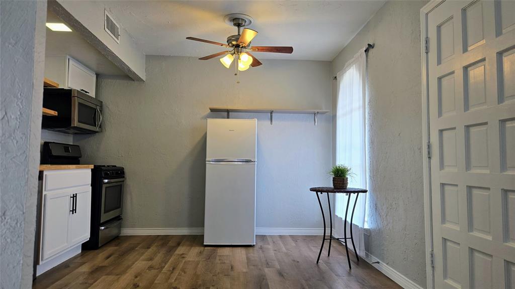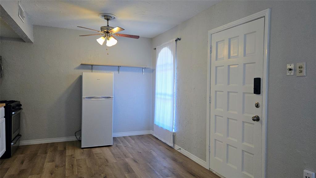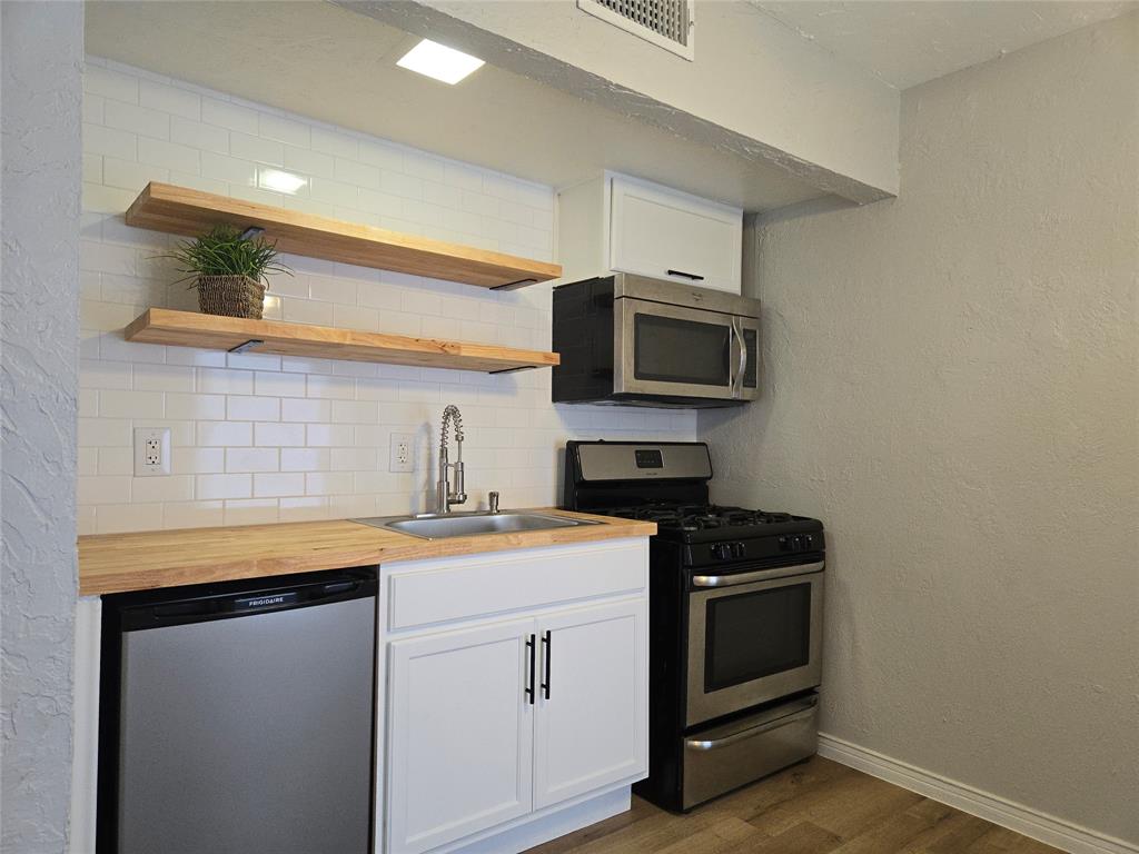 Step into affordable homeownership with this beautifully updated efficiency condo in the desirable Prestonwood Country Club community. This move-in ready unit features a smart layout with defined living and dining areas, plus a private sleeping nook that comfortably fits a queen bed. The full bath has been stylishly updated, and the entire space is freshly painted with new luxury plank flooring throughout. The kitchen is well-equipped with a gas stove, microwave, refrigerator—everything you need for convenient living. A large covered balcony offers an outdoor retreat. Bring your personal touch to turn this 12x7 Balcony into outdoor living space. Community pool, club house, and laundry facility is just at end of the street. Enjoy modern, low-maintenance living with an HOA fee of just $210 per mth, covering exterior maintenance, HVAC components, common plumbing, and more. Utilities average around $50 per mth and vary with usage. Another big saving is HOA covering exterior insurance. You just need to purchase insurance for content. The community is peaceful and quiet, well-maintained, and features on-site management, a sparkling pool, and access to a scenic greenbelt. Additional perks include one designated parking space right in front, ample visitor parking, and FHA approval for easy financing. Conveniently located near North Dallas Tollway and 190, you're minutes from shopping, dining, UTD, and everything the Metroplex has to offer. Buyers and their agent to verify all information. Investors: Please contact the HOA directly for leasing guidelines. Governing documents can be found at www.pwccca.org