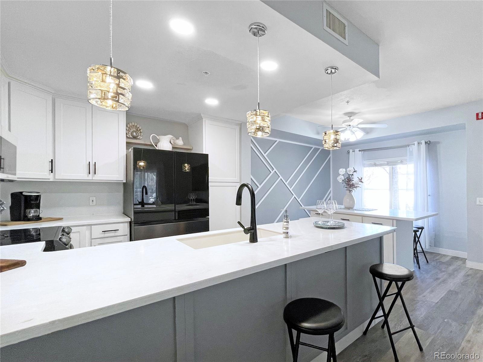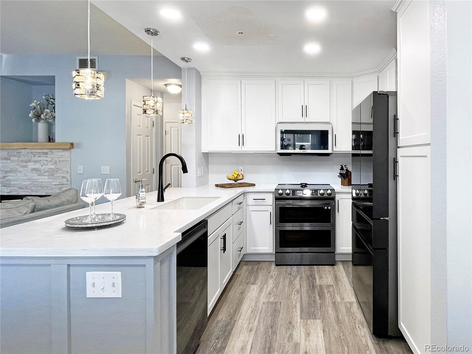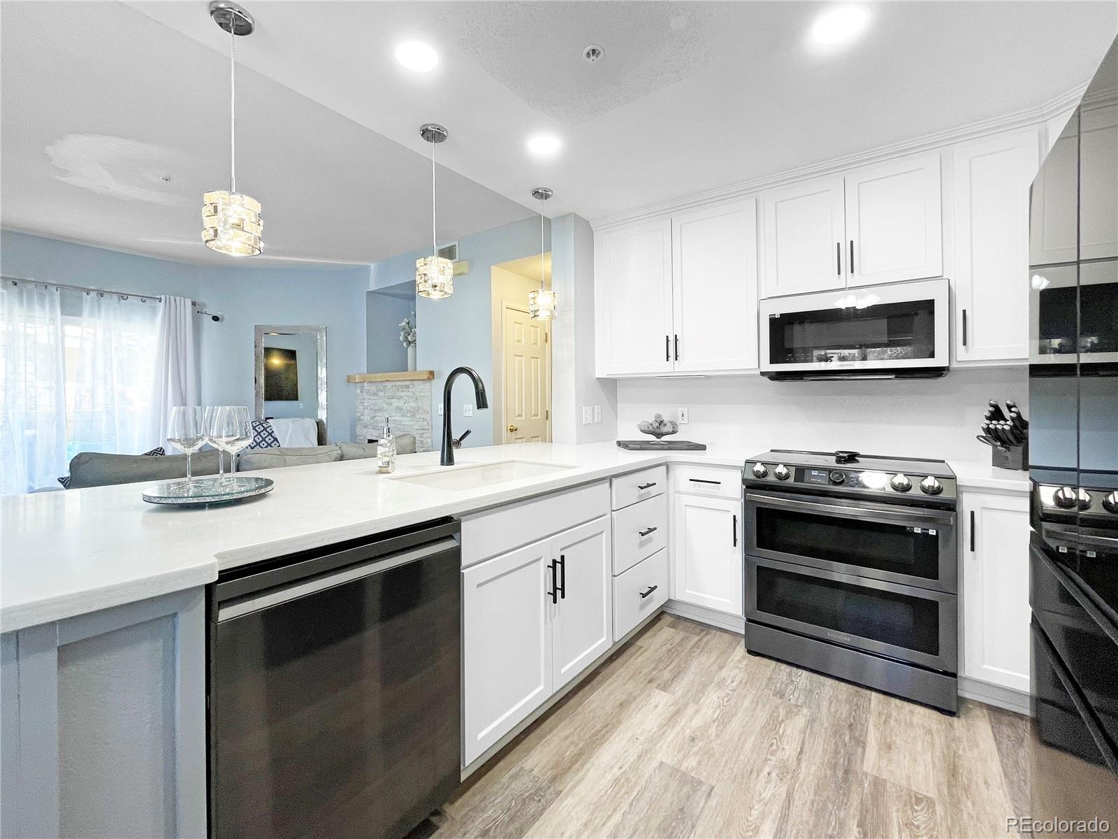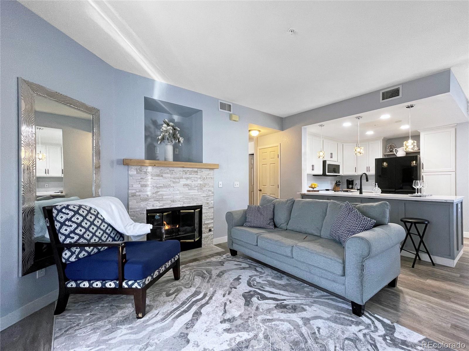 Welcome to the desirable gated River Rocks Condominium! If you like entertaining this kitchen will excite you. This condo features an open floor plan for family and friend gatherings. Kitchen has been completely remodeled with custom cabinetry, high end appliances, a beautifully designed accent wall and a custom island for extra storage. Spend time cooking and conversing with your guests as they sit next to the warm brick accent gas fire place! Living room features a sliding door for easy access to grill on your patio on those warm summer days. Be greeted in the master bedroom by a custom designed wall, with large bathroom counter top and a walk-in closet. Enjoy the variety of amenities this community has to offer such as a clubhouse, pool, spa/hot tub, gym or simply grab fresh air while walking around the open green belts. This unit is located next to the clubhouse, pool and it's designated parking spaces so you can bring your groceries in without the hassle of going up or down stairs. Conveniently located near major intersections for fast commute. Walking distance to shopping centers if you need to grab a bottle of wine! Don't miss out on this great opportunity. Call today for your private showing!