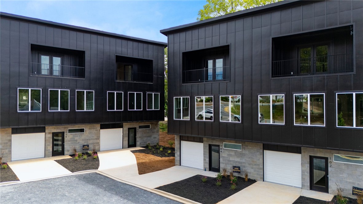 In the middle of Easley, perfectly situated within walking distance of The Silo’s, renowned as Easley's premier outdoor entertainment space/ brewery. Additionally, conveniently located just two blocks from the Doodle Trail – a beloved local favorite, often considered the Swamp Rabbit Trail's cousin. Crafted by the exceptional Greenville builder, Elements Design Build LLC, these three-story lofts boast a striking exterior design that combines elements of concrete pavers, steel, and glass. This home is quiet and energy efficient due to the foam insulation. The facade exudes a contemporary and urban aesthetic, enhanced by large windows that flood the interior spaces with natural light. Additionally, each townhouse features a spacious balcony on the third floor, providing a perfect spot for relaxation or outdoor dining. Upon entering the townhouse, you'll find yourself on the main floor, which hosts a versatile bedroom (gym, office, and more) with a private bath. This floor also has an oversized garage, Giving both secure parking and additional storage space. The main level includes a patio with that ever-needed grill space. The modern theme continues throughout. Ascending to the second floor, you'll discover the heart of the townhouse – a beautifully appointed kitchen-living-dining. The kitchen boasts high-end stainless-steel appliances, complemented by full wood cabinetry and granite countertops. The large island allows for additional eating space. This floor is appointed with a private powder bath for convenience. The stairs are flooded with light due to a custom wood wall. The living room area provides a comfortable and stylish setting for relaxation and socializing, with large windows providing views of the surroundings and filling the space with natural light. Moving up to the third floor, you'll find the luxurious master bedroom suite. This spacious room features ample space for a king-sized bed, bedside tables, and additional furniture. Natural light floods the room from the oversized balcony with extra storage closets and metal railings, enhancing the cozy charm. The master bedroom also boasts two spacious walk-in closets, one of which could be used as a private office. The master bath provides a walk-in tile shower and two sinks along with a private toilet. Additionally, the third floor includes a convenient laundry room, located near the master bedroom for easy access. Overall, these three-story lofts create a harmonious blend of modern design and urban aesthetics, providing a stylish and functional living space across all three levels.