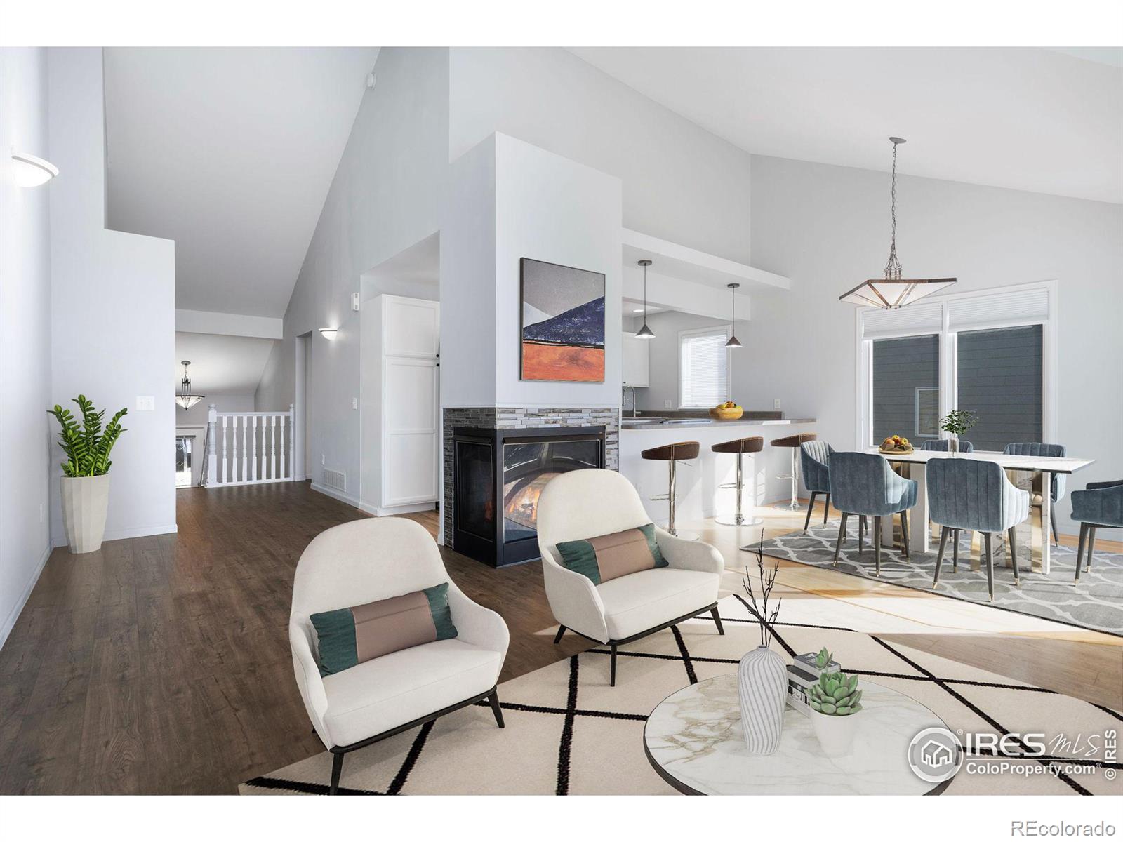 Welcome to this beautiful end unit condo in Ranch Meadow. This well maintained and move-in ready condo has recently been updated with a fresh coat of paint, luxury vinyl plank floors, new stainless kitchen appliances, and an updated primary bathroom. The bright living area has large south facing windows, vaulted ceilings, and a two-sided gas fireplace. The sliding glass doors open to the upper deck where you can enjoy mountain views of Olympus, Twin Sisters, and Mt Meeker with the Continental Divide peaking above the rooftops. The primary bedroom and bathroom are also on the main level. Both lower level bedrooms have access to a covered deck and have a shared bathroom. Just minutes away from downtown Estes Park, this highly sought after community combines the beauty of nature with convenient access to amenities. Several other Ranch Meadow condos have sold quickly so don't miss out on this one!