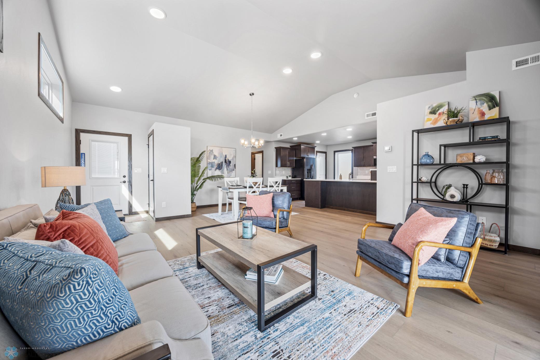One-level "Alexandra" plan in south Fargo's Legacy Townhomes Association - with lawn & snow cared for! Two bedrooms, two baths and two garage stalls in this beautiful one-level home with east facing Sun Room! Turn-key and worry free; with no steps inside our out. Sod lawn included - And an HOA for lawn and snow (only $135/mo). Enjoy cooking and entertaining in a kitchen with beautiful quartz countertops, tile backsplash, soft-close cabinets, deep pots-n-pans drawers and a raised dishwasher - a real back saver! The primary bedroom is generous in size, with tray ceiling and a private bathroom - where you'll find extra cabinetry for storage, a step-in shower and access to your walk-in closet. Across the house is a second bedroom and 2nd bathroom with an oversized soaking tub, as well as laundry and access to the garage. Tall ceilings throughout the living and dining spaces make way for transom windows that let in sunlight yet maintain privacy. And speaking of sun -you'll enjoy relaxing in the Sun Room all year 'round! Under Construction - expected completion by the end of the year. Call for details!