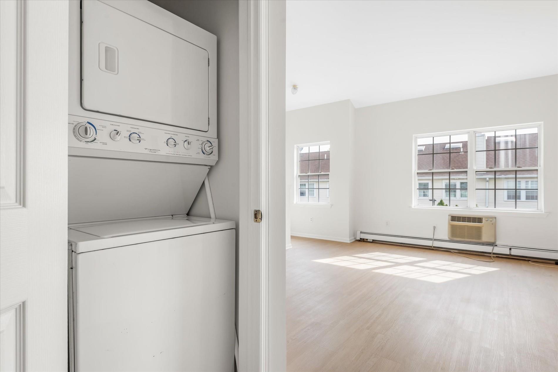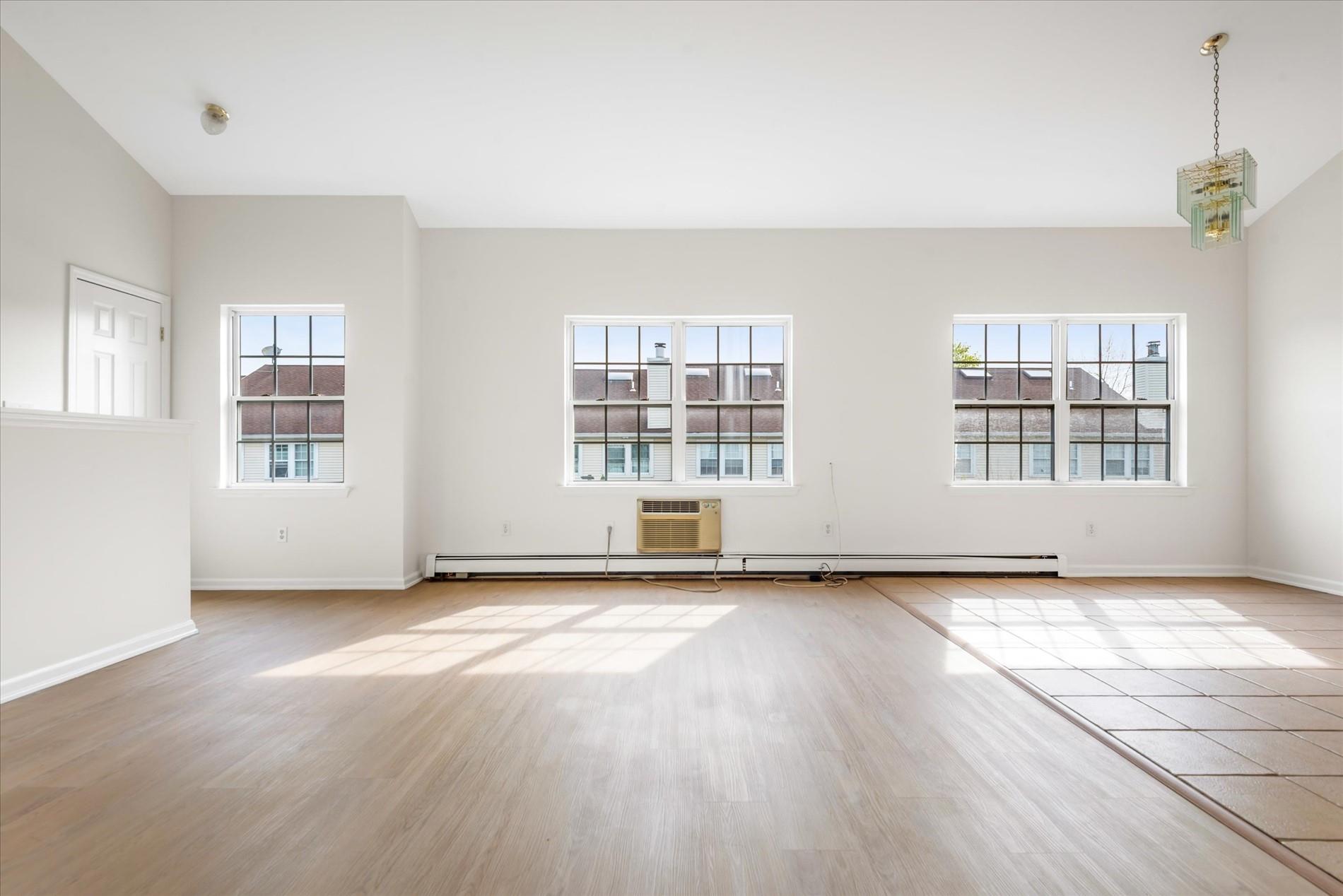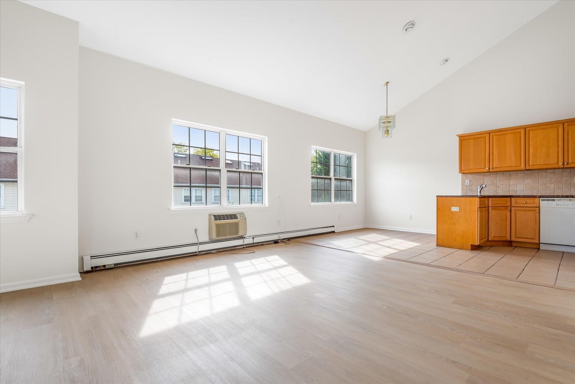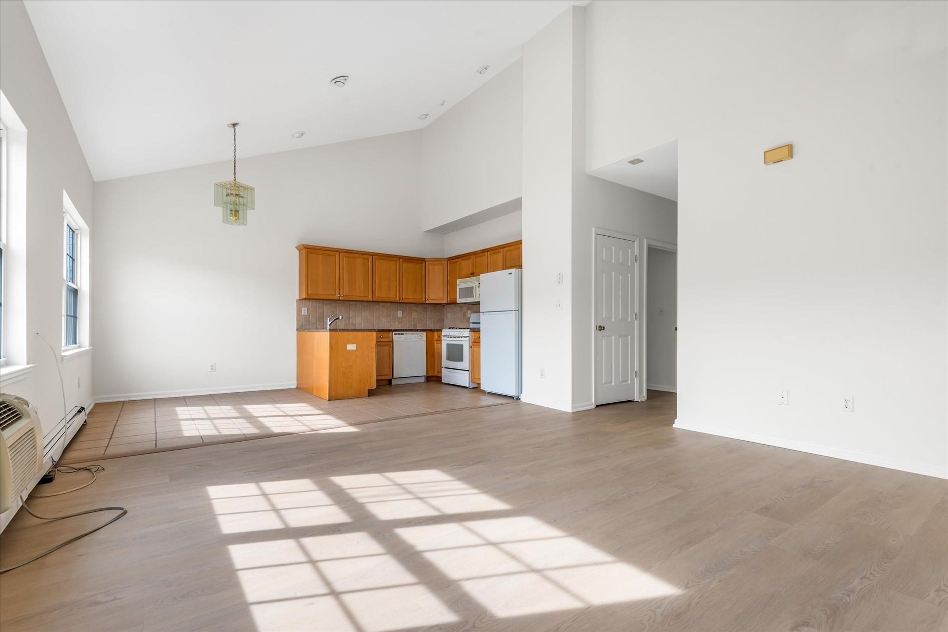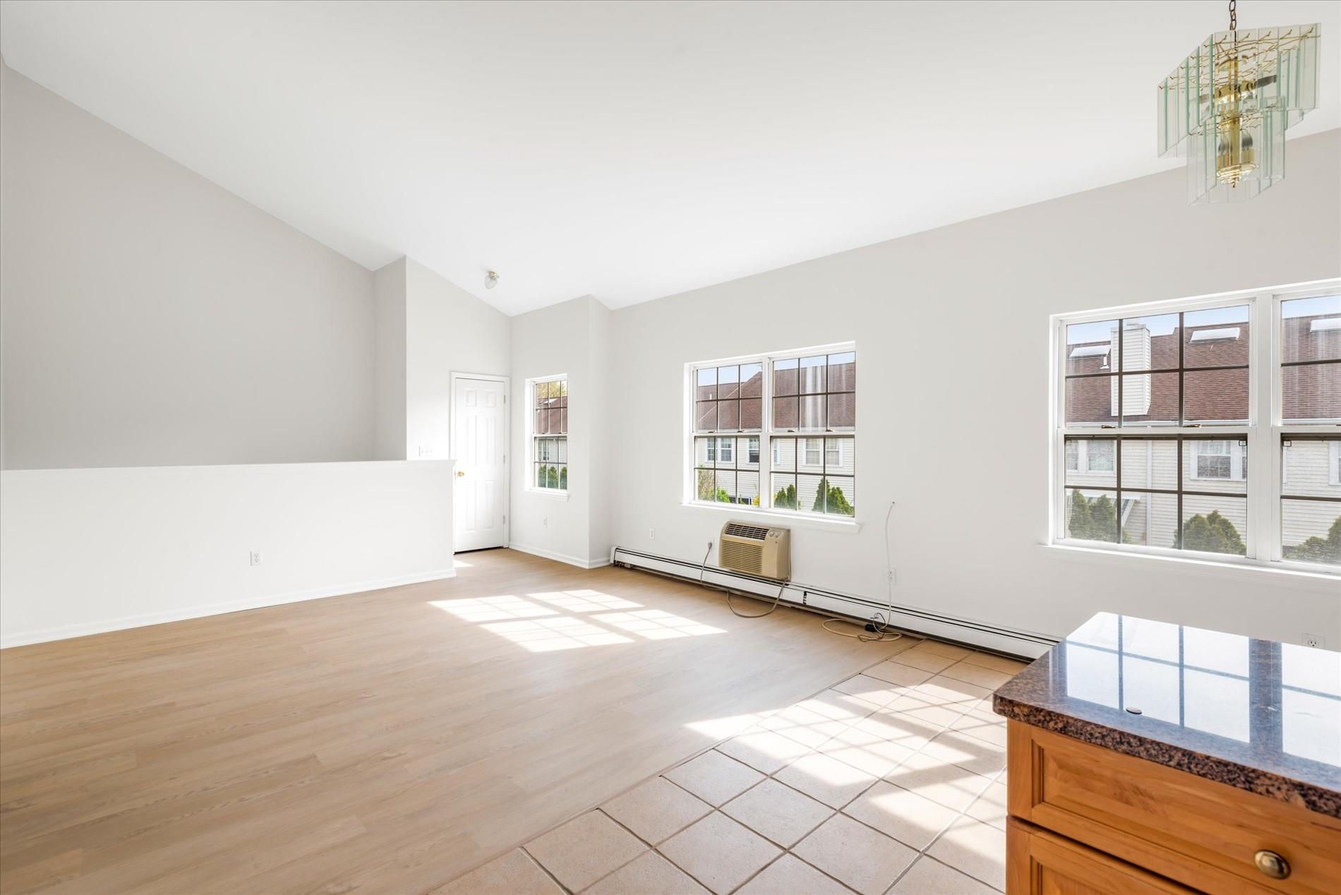 Welcome to your new home in Elizabeth Ann Gardens, a peaceful 55+ community! This beautifully maintained second-floor condo is full of warmth, light, and comfort. Step inside and you'll immediately notice the abundance of natural sunlight pouring in through large windows, highlighting the brand-new floors and fresh paint throughout. The spacious living room features soaring vaulted ceilings that create an airy, open feel. The layout flows into the dining area and kitchen, where you’ll find plenty of room to cook, host, and enjoy life’s everyday moments. The en-suite primary bedroom offers a private bathroom, while the second bedroom is perfect for guests, a home office, or your creative space. Convenient in-unit laundry is tucked neatly in the hallway for ease and efficiency. Enjoy your private balcony for morning coffee or evening relaxation. Located minutes from Bethpage State Park, this condo offers not only a serene, move-in ready interior but also a welcoming community and access to nature. Bright, welcoming, and thoughtfully cared for—this is the home you’ve been waiting for!