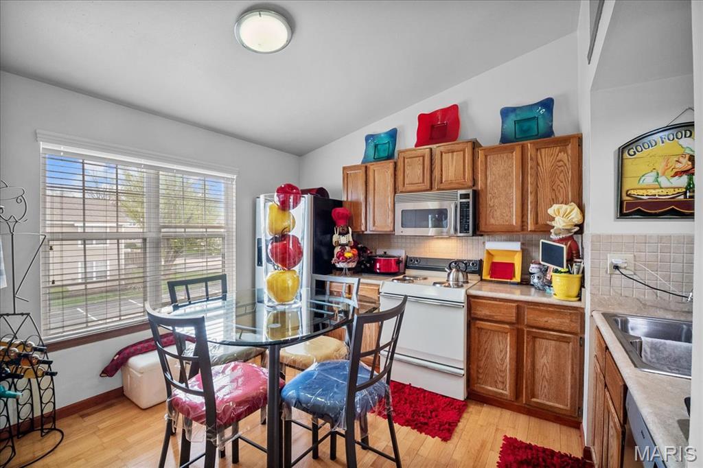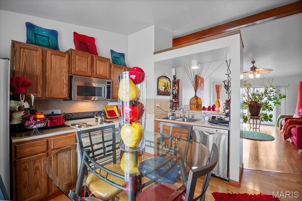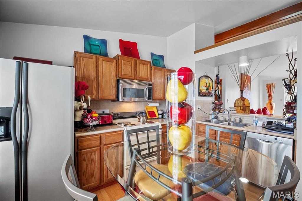 Upper level condo has a private balcony where you can sit out & enjoy the singing birds, also enjoy the amenities such as the swimming pool during the hot summer days. The unit is impeccably cared for with an the eat-in kitchen with stainless steel appliances. The living room invites you to unwind and enjoy the ambiance of your space with your own personal balcony which is a perfect spot for morning coffee and evening sunsets. There are 2 dedicated spaces for your vehicles with ample visitor parking in close proximity. The campus of River Oaks features tennis courts, swimming pool and a large, beautiful lake to enjoy nature at its finest. Appliances, including the stackable washer/dryer stay. Location: Upper Level