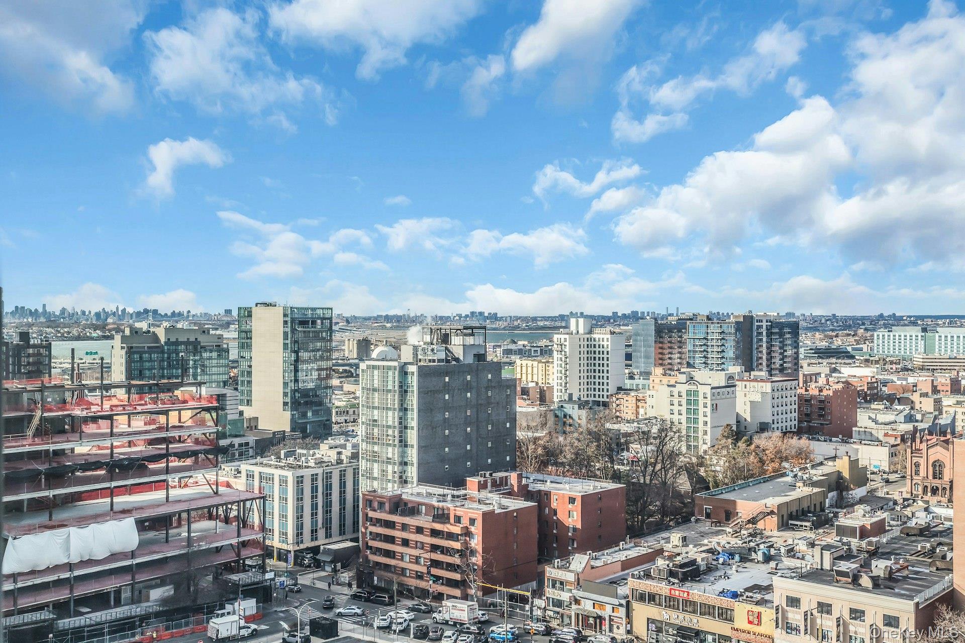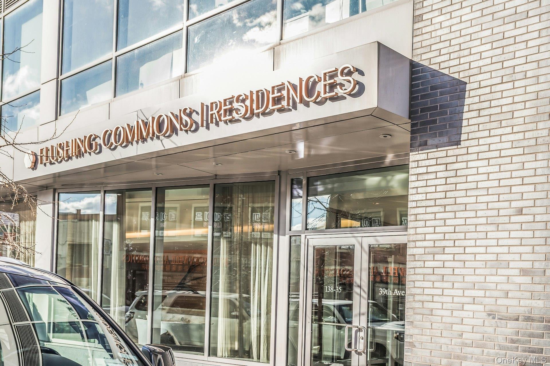 Experience true luxury living in the heart of Flushing. This spacious 2-bedroom, 2-bath condo at Flushing Commons offers 1,018 sq ft of thoughtfully designed living space on a high floor with an open layout and abundant natural light. The home features Swedish oak wood floors, natural quartz stone countertops, Bosch appliances, an in-unit washer and dryer, and double-glazed insulated windows. Residents enjoy premium amenities including a 24-hour concierge, gym, lounge, library with reading room, terrace lounge, pool table, rooftop garden, and pet-friendly environment - all while benefiting from a 421-A tax abatement through 2033. Parking is available directly through the complex. Ideally located just two blocks from the #7 subway and close to bus lines, the LIRR, restaurants, shops, banks, medical offices, and more, this home offers unmatched convenience and comfort.