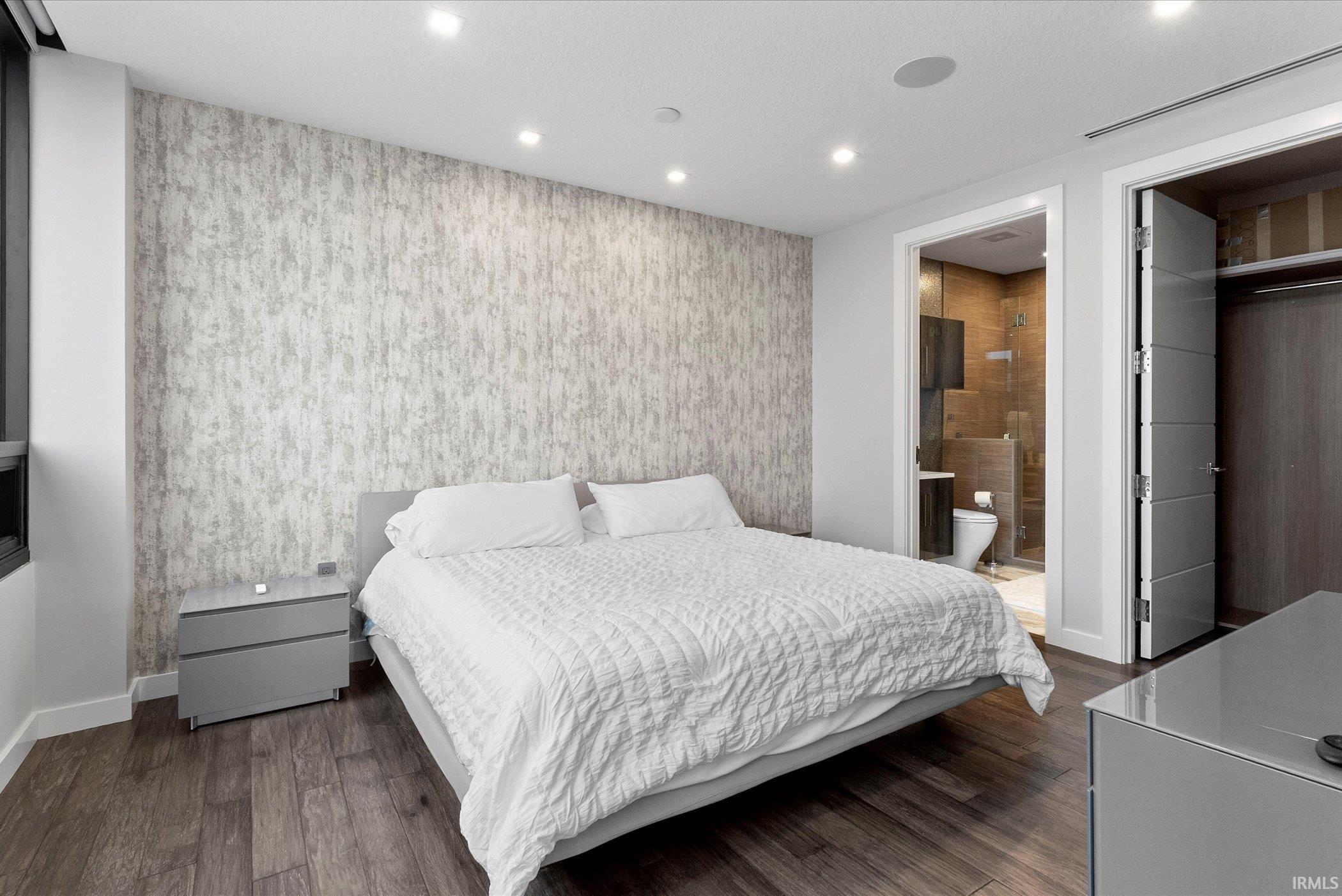 Fully furnished luxury condo with panoramic downtown views. Includes two deeded parking spaces (valued at $90,000) in a secure garage with car wash; extra storage available for rent. Features a Savant smart-home system, Kevo touch-to-open entry, and ButterflyMX remote guest access. Large windows, marble floors, and custom wood ceilings create an elegant, modern feel. The gourmet kitchen offers Wolf/SubZero appliances, wine and beverage coolers, a large island, and ample custom cabinetry. A glass door opens to the corner patio, blending indoor and outdoor living. A smart glass track door leads to a private workspace. Electronic shades throughout. The primary suite includes a ceiling feature, bar/fridge, spacious bath with corner tile/glass shower, and access to the primary closet & laundry suite. The second bedroom features great views, walk-in closet, and a private full bath. On-site gym, cafe and shop to provide grocery items to full meals for added convenience. Luxury living at it's finest in Downtown Fort Wayne!