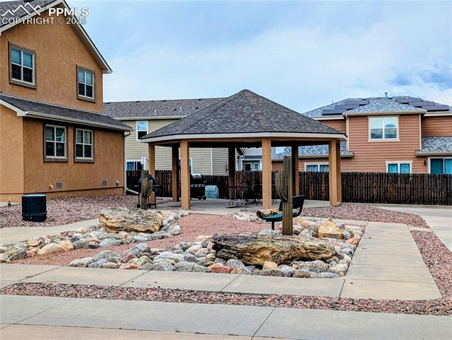 ?This charming end unit is spacious, low maintenance, and offers the perfect blend of comfort and convenience. It is a 3-bedroom, 2.5-bathroom home with over 1,400 square feet of comfort and functionality, including central air conditioning and an attached 2-car garage. Step inside to find an inviting main level with laminate flooring, a well-appointed kitchen, and an open-concept family and dining area—perfect for entertaining. A half bath with pocket door on this level adds extra convenience. Upstairs, you’ll also find a generous primary suite with a walk-in closet and an attached bathroom featuring twin vanities, a walk-in shower, soaker tub and a gas fireplace. Perfect for winter soaking. You’ll also find two additional bedrooms, a full hallway bathroom, as well as a dedicated laundry area. Outside, you have a community area that offers covered space and grilling for your delight. It is ideally located just minutes from the Mesa Ridge shopping center, local parks, schools, and with quick access to I-25 and Fort Carson’s Gate 20. This move-in-ready home is a must-see! Schedule your tour today!