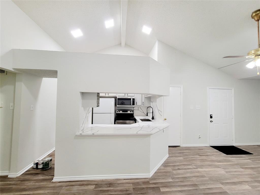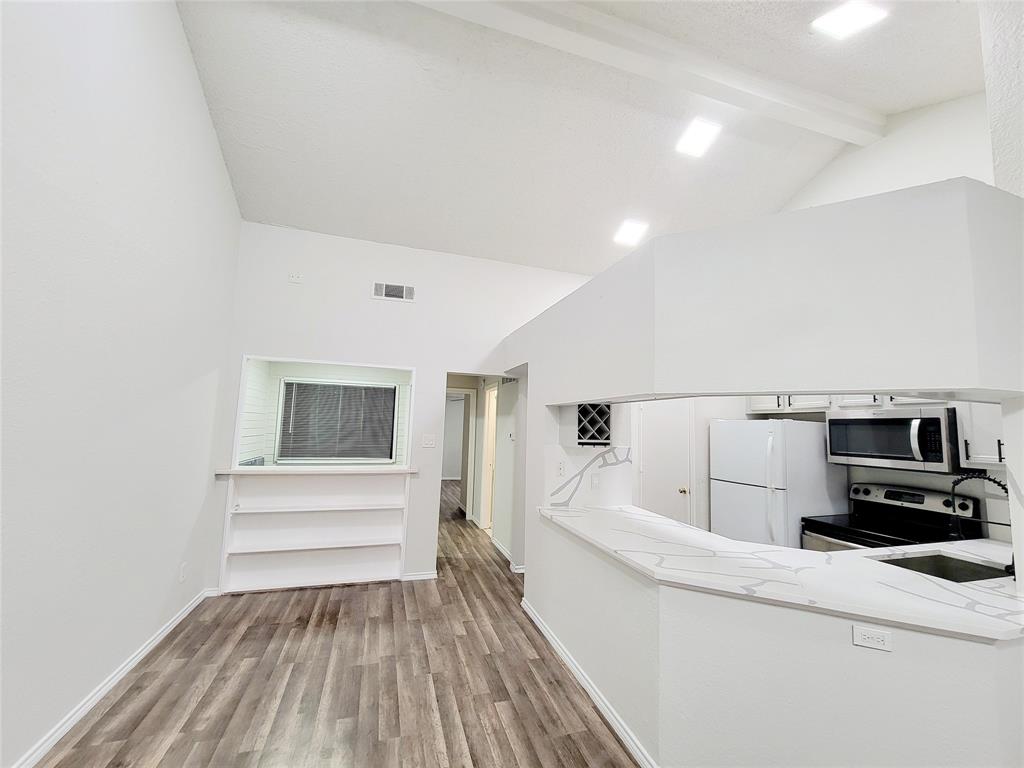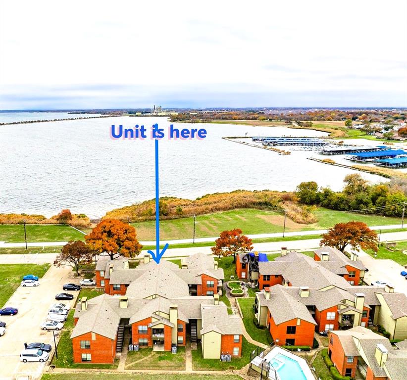 **Investor special! Right next to Lake Hubbard! This turnkey-ready condo is perfect for first-time homebuyers and savvy investors alike. Right next to the walking trail around Lake Ray Hubbard, this charming 2nd-floor 1 bedroom 1 bath unit boasts high vaulted ceiling with wood burning fireplace! It has in-unit laundry room, dining area, and a private enclosed porch. Enjoy low-maintenance living with no carpet—laminate floor and tile throughout! Beautiful brand new quarts counter top open to living room with Stainless Steel appliance and over range microwave. New walk-in shower and closet in the bathroom ! Ideally located near Overlooks greenbelt & marina, walking distance to Bass Pro shop & restaurants! This residence combines vibrant urban living with the serenity of nearby lakes. Plus, you're just minutes away from the popular attractions of The Harbor and Sapphire Bay. Don't miss this incredible opportunity to have the serenity of lakeside living!