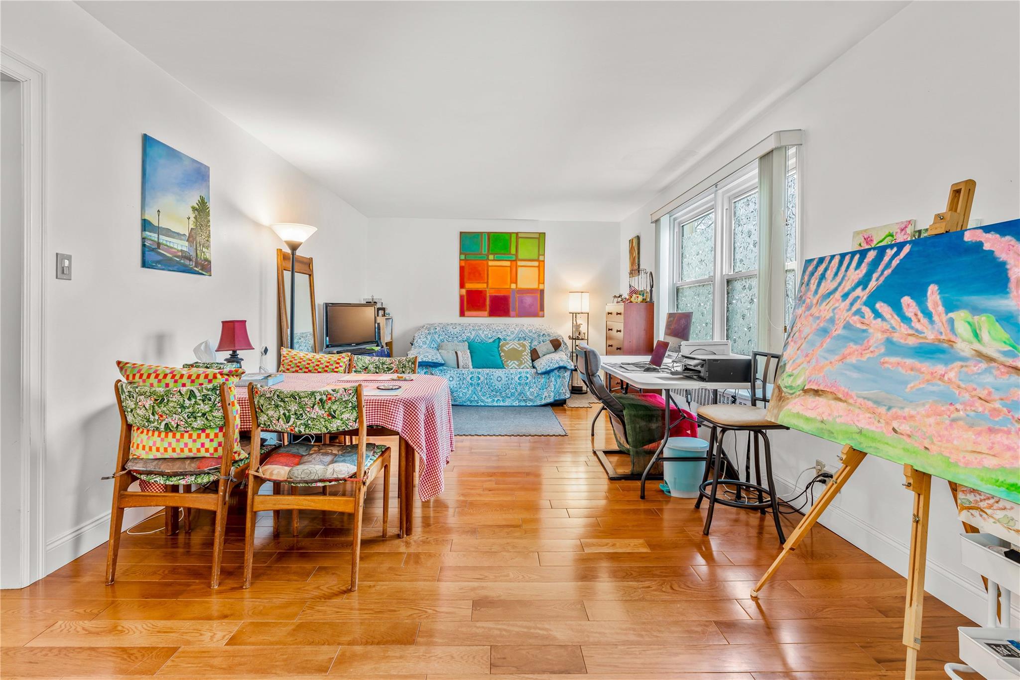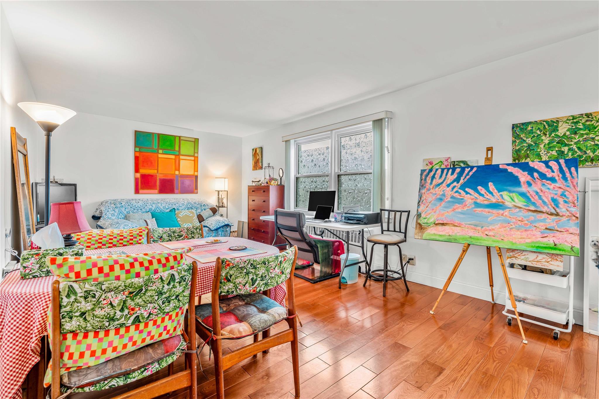Sunny second floor one bedroom apartment in Parkwood Estates ... Renovated just a few years ago. Includes deeded parking garage. Lovely pre-finished wood flooring throughout... Unfinished attic with potential for more room or just use as storage for now. Separate kitchen with quartz countertop, shaker cabinets and dishwasher.