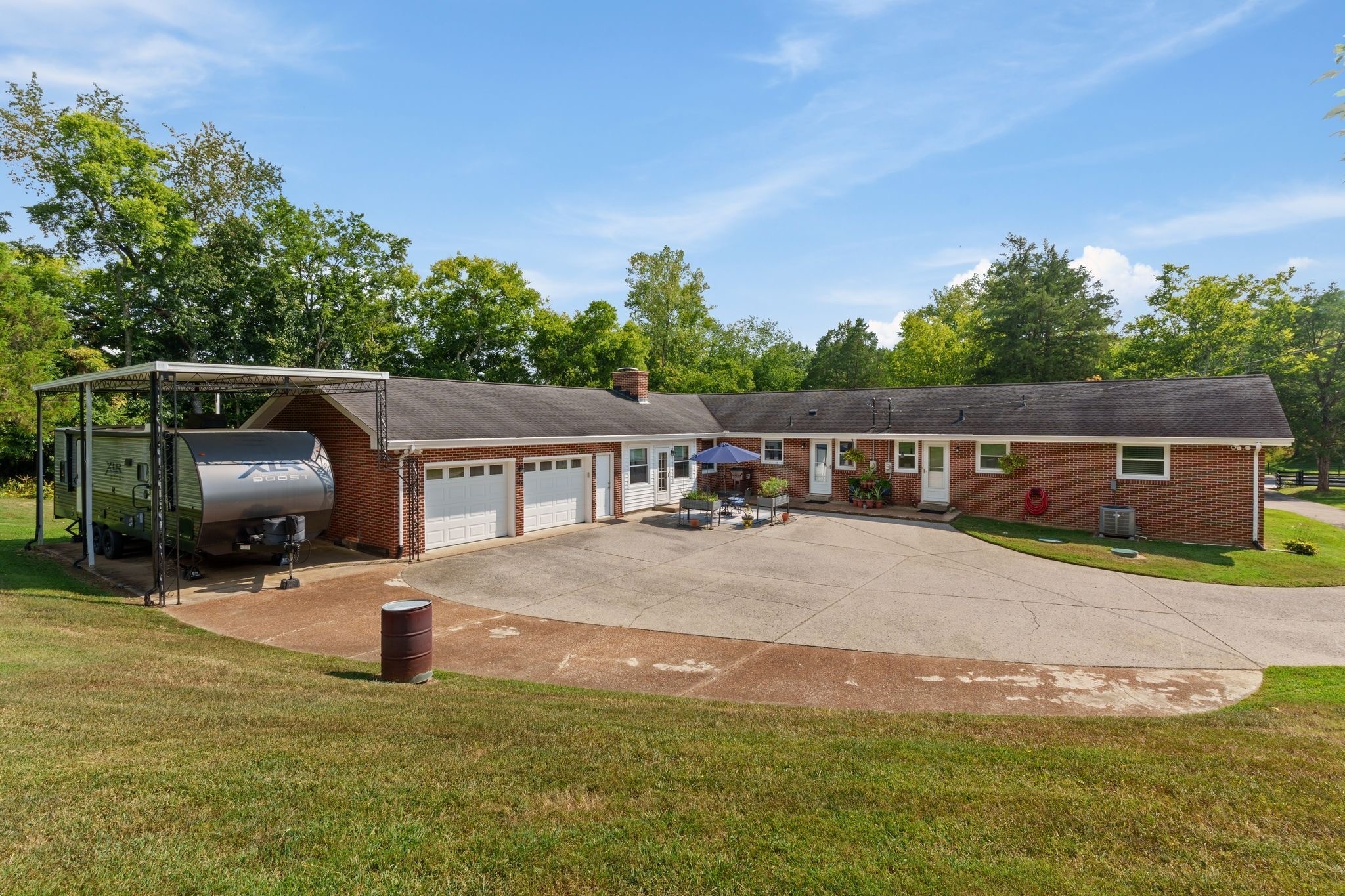 Discover this beautifully updated ranch-style home set on 8.2 gated acres, offering the perfect blend of privacy, space, and functionality. With over $200,000 in recent upgrades, this spacious property features 5 bedrooms, 3 bathrooms, and a flexible floor plan ideal for both everyday living and entertaining. The open living and dining areas flow seamlessly into a cozy den with a fireplace, while a bright recreation room adds charm and natural light. The home also includes two kitchens and two utility rooms, providing added convenience for large families or multigenerational living. A separate mother-in-law apartment offers a private living space with its own entrance, perfect for guests or extended family. Outdoor living is just as impressive with a screened and covered patio, fenced garden area, and a welcoming front porch for relaxing evenings. For the hobbyist or car enthusiast, this property features two attached garages, a third detached garage with storage/workspace, and a covered carport suitable for a camper or RV. The gated entrance ensures privacy while still being conveniently close to city amenities. Whether you're looking for a peaceful retreat or a versatile home with room to grow, this property checks every box. Don’t miss your chance to experience the perfect mix of country living and modern convenience—schedule your showing today! The screened porch is plumbed for an outdoor kitchen. The covered RV space has a power outlet panel with 20/30/50 amp receptacles, circuit breakers, and weatherproof.