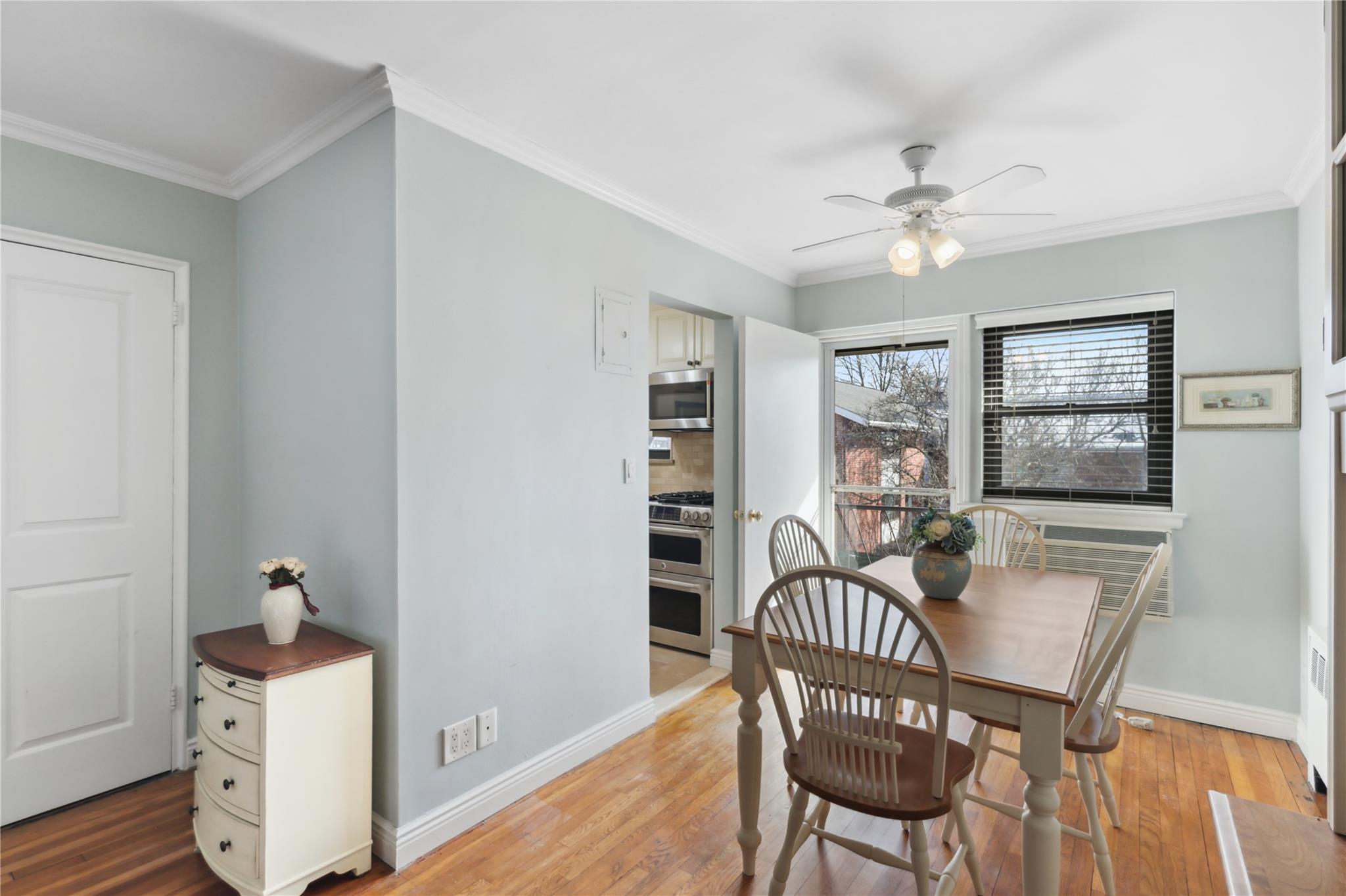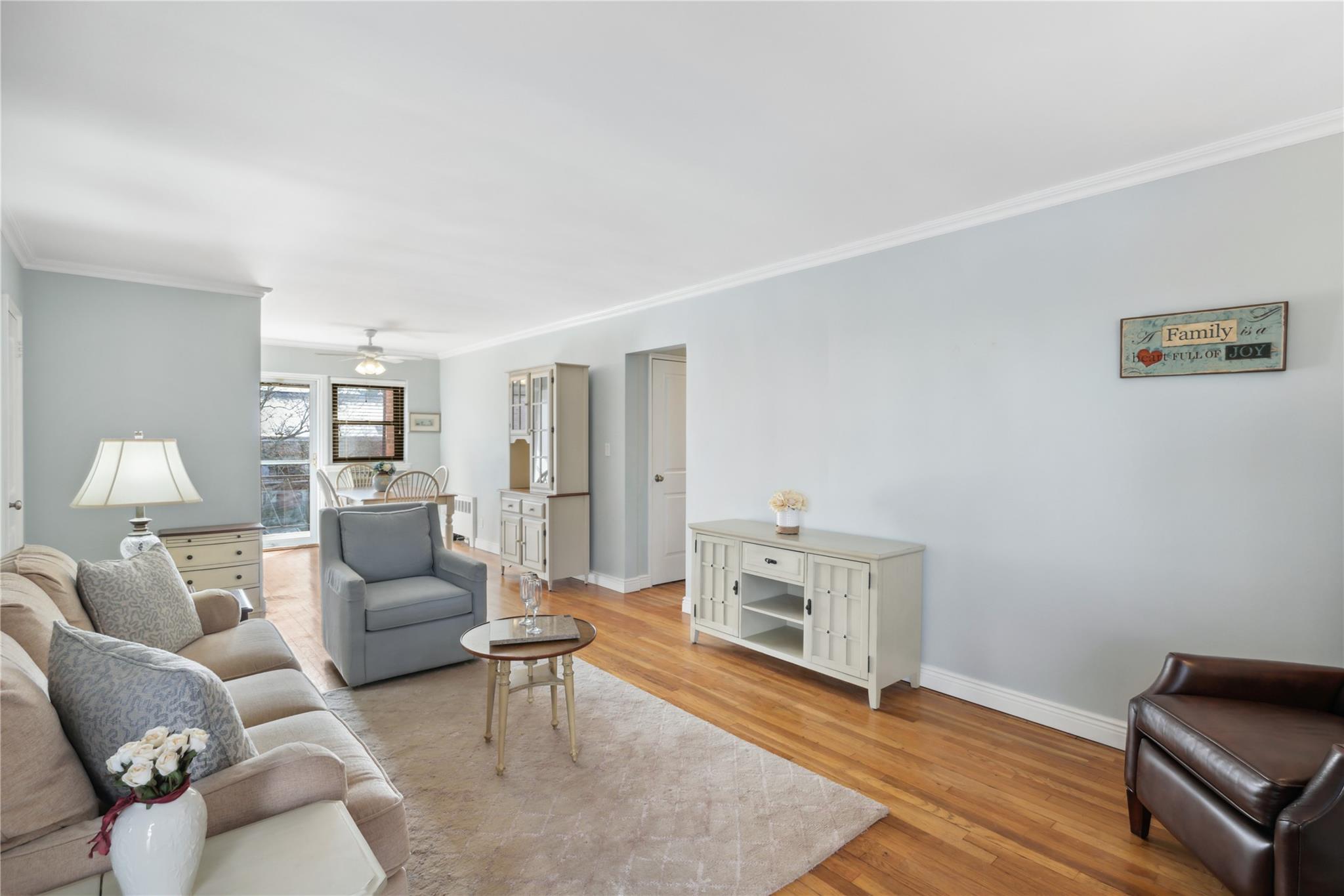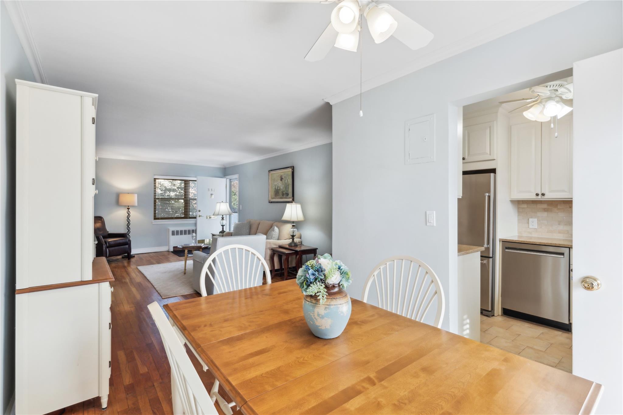 Welcome to a charming community in Harrison, NY. This spacious, ground-level apartment features two cozy bedrooms with generous closet space, an updated kitchen, a living room, dining room, new appliances, and hardwood floors throughout. Enjoy your morning coffee on the balcony and take advantage of the designated parking space included with the apartment. Storage may be available, depending on the waiting list. The apartment is filled with natural light, offering a bright and comfortable living space. Heat and hot water are included in the maintenance. Conveniently located in close proximity to a supermarket and the Metro North, this apartment is perfect for commuters. Halstead Avenue, the heart of Harrison, is just minutes away, offering a variety of services and excellent dining options. Board requires: 20% minimum down payment, 700 minimum credit score, and DTI not to exceed 35% of Applicant's gross monthly income. Proof of minimum liquid assets equaling 9 months of housing costs are required at closing. Renting allowed after 3 years.