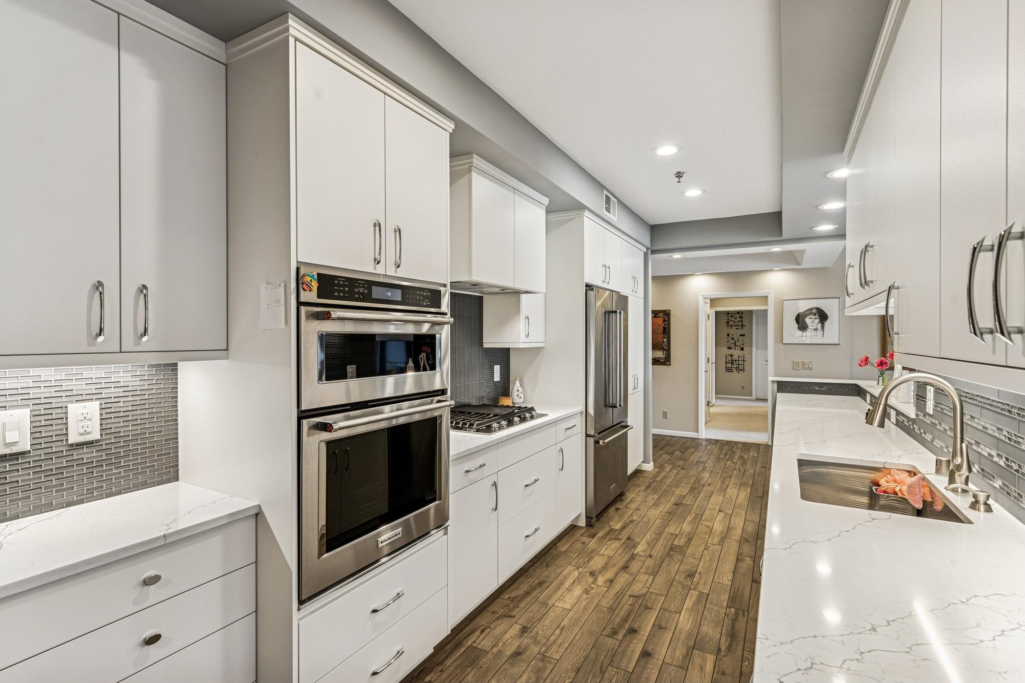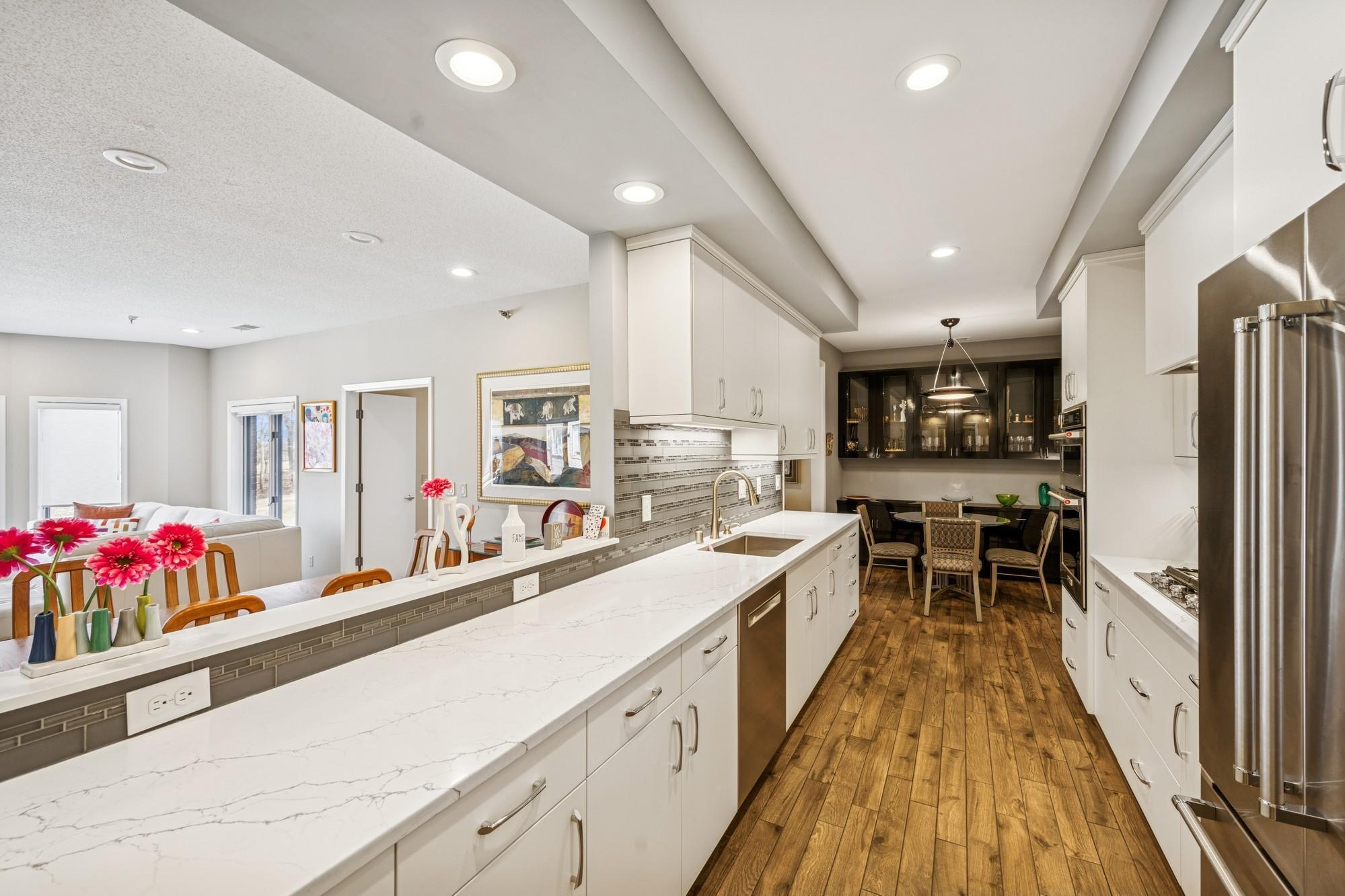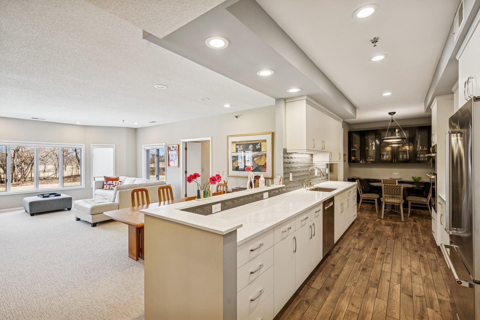Not often available a West Oaks of Minnetonka Condo. Two bedrooms, with updated primary bath, including walk-in shower, double vanity and huge walk-in closet. Kitchen updated with granite counter-tops stainless steel appliances, and extremely clean. Informal and formal dining areas, den, and fantastic views of Oakridge cc. Two heated underground parking spots side by side. Two large separate storage rooms, one on the same level as the unit and one in the garage area adjacent to their (7) parking spots 19/20. Party room is first come first serve with no additional cost to unit owners, quest suite for unit