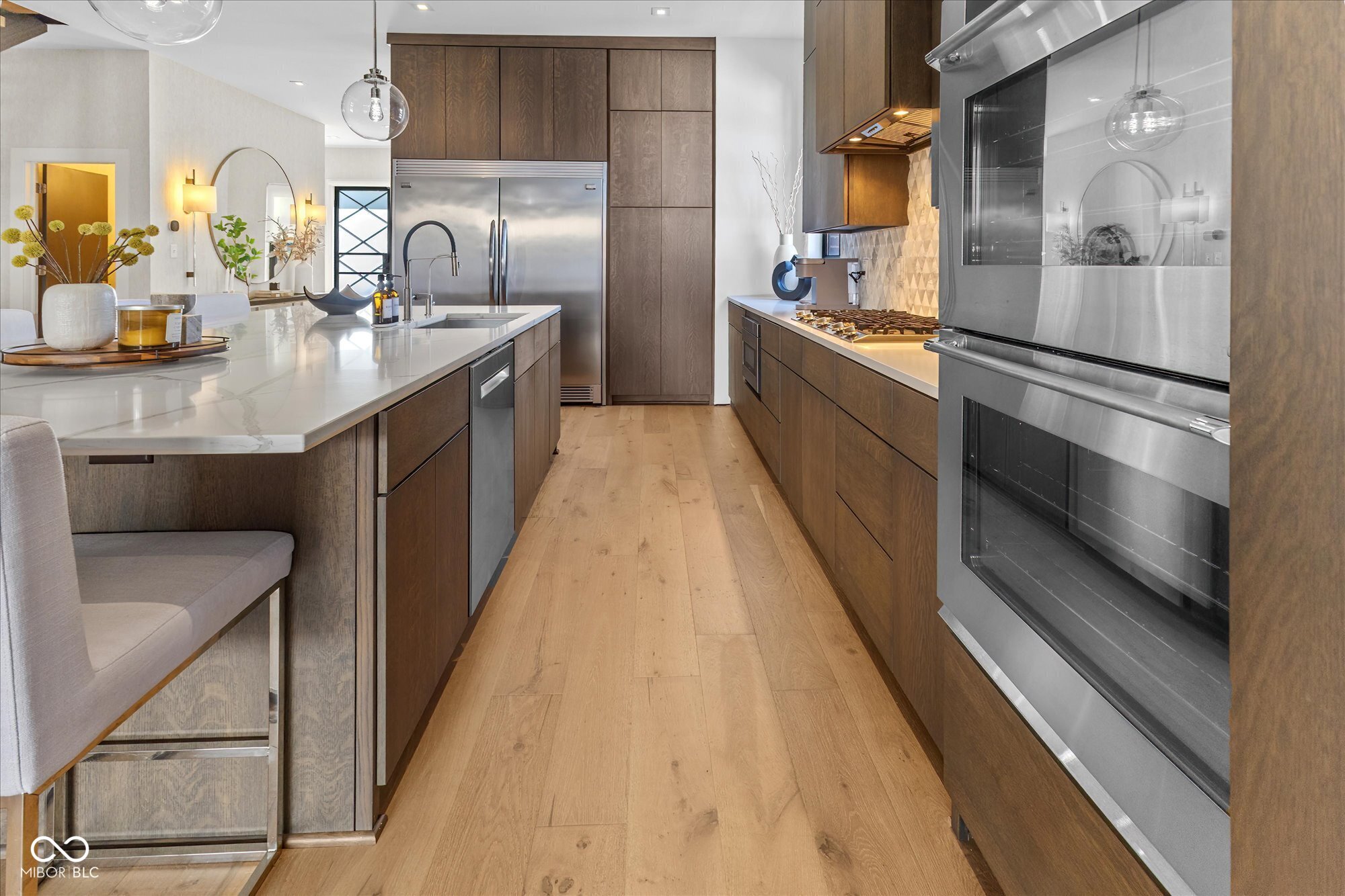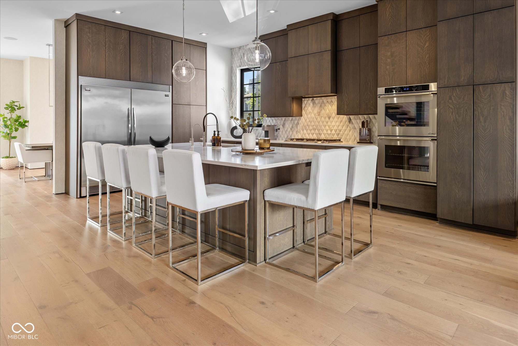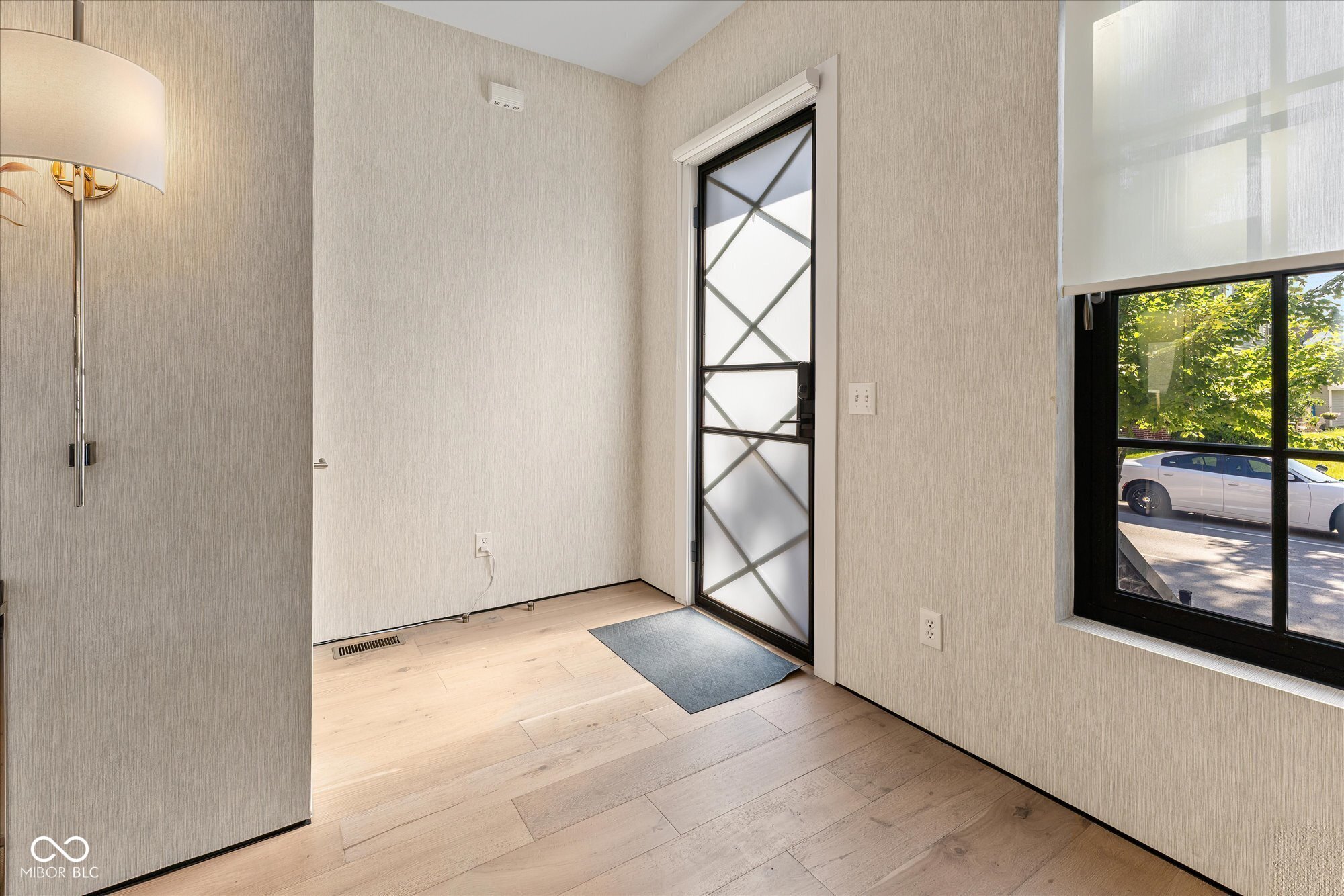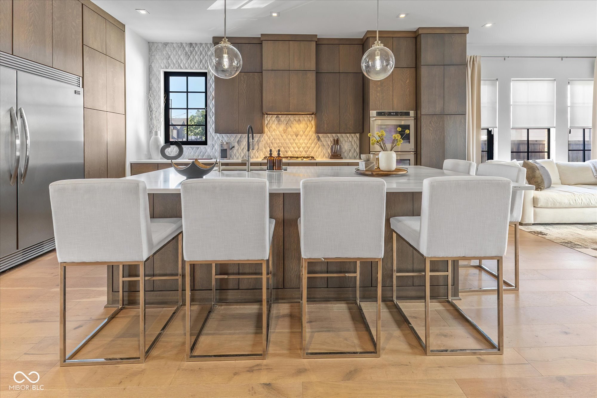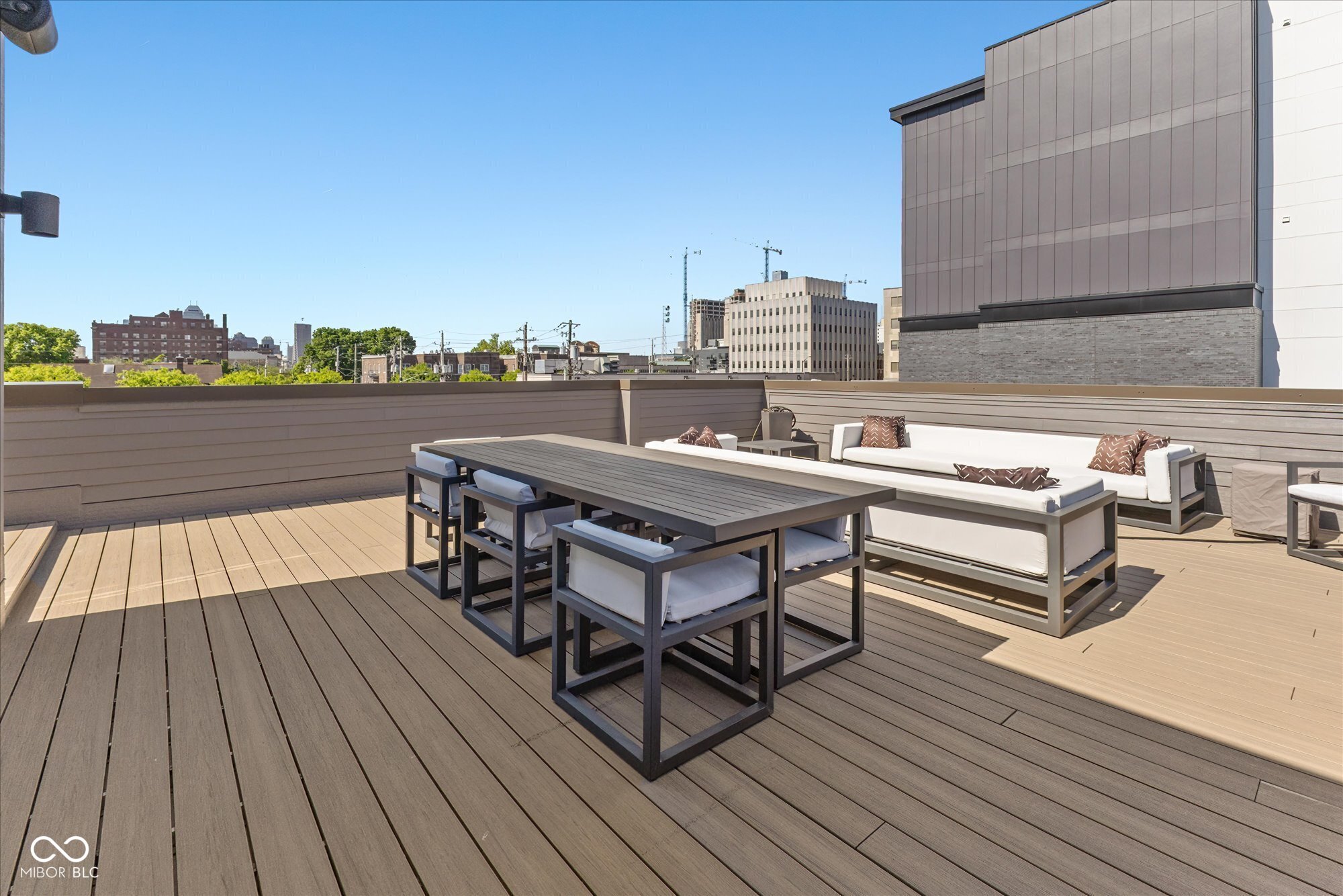 Price Improvement! Now offered at $849,900 - an exceptional value for luxury living in Herron-Morton's exclusive Penn Row community. Welcome to 1818 N Pennsylvania Street, a striking 4,000+ sq ft residence that combines bold design, skyline views, and high-end craftsmanship-just minutes from downtown Indianapolis. Step inside to soaring 12' ceilings and wide-plank white oak floors that set an elegant tone. The chef's kitchen is a showstopper, featuring Caesarstone quartz countertops, marble backsplash, double ovens, commercial-grade fridge/freezer, wine cooler, and an oversized island perfect for entertaining. Relax by the living room fireplace with Bose surround sound, or retreat to your private home theater for unforgettable movie nights. The primary suite impresses with a built-in king bed, spa-inspired bath with dual vanity and walk-in shower, and a custom walk-in closet designed for effortless organization. Additional highlights include a finished basement with half bath, motorized blinds, designer lighting, two fireplaces, and a detached two-car garage. Outdoor living is next level-an upgraded rooftop with Trex decking showcases panoramic city views, while the private fenced turf yard with deck, patio, and built-in fire pit creates the perfect space for entertaining or relaxing. Featured in the 2018 Indianapolis Home Show, this one-of-a-kind home blends modern luxury and historic charm in one of Indy's most desirable neighborhoods. City living has never looked so good-especially at this new price.