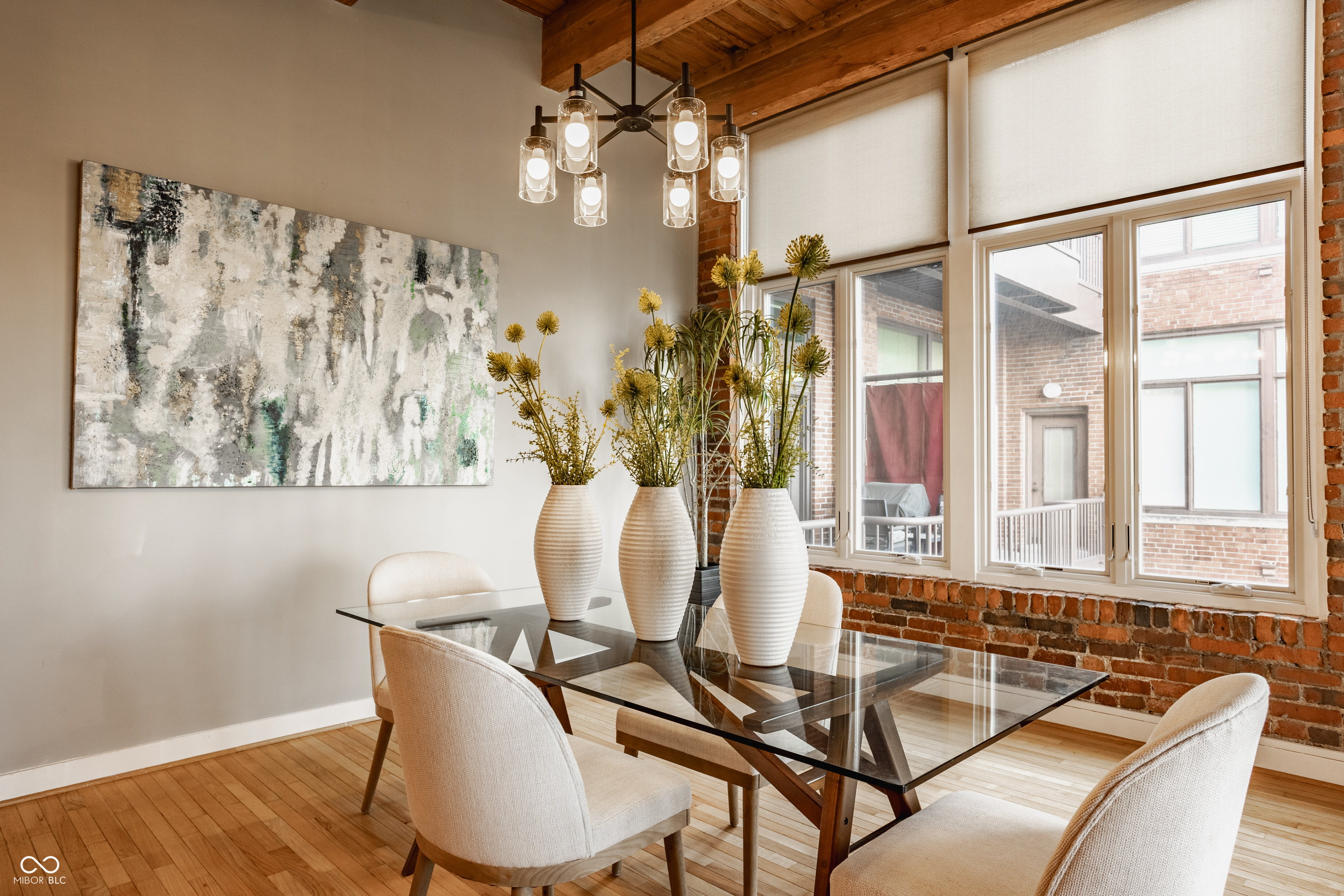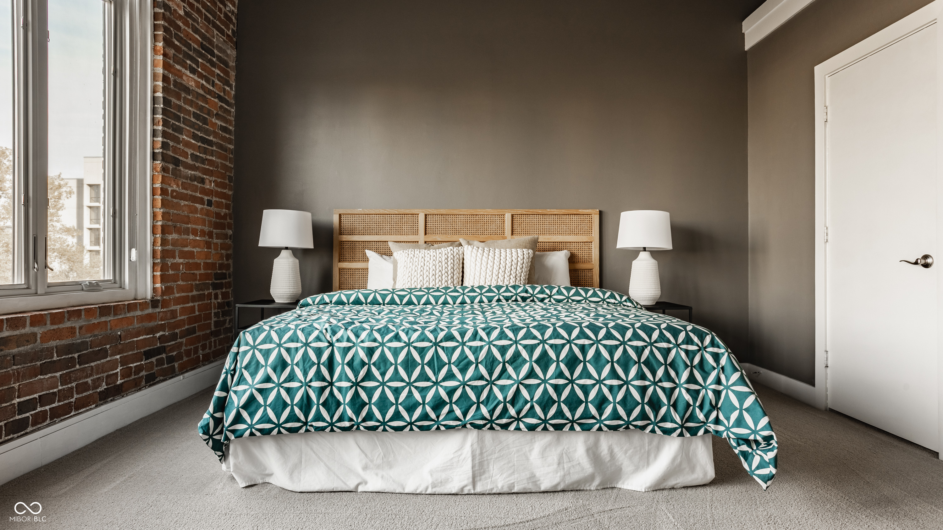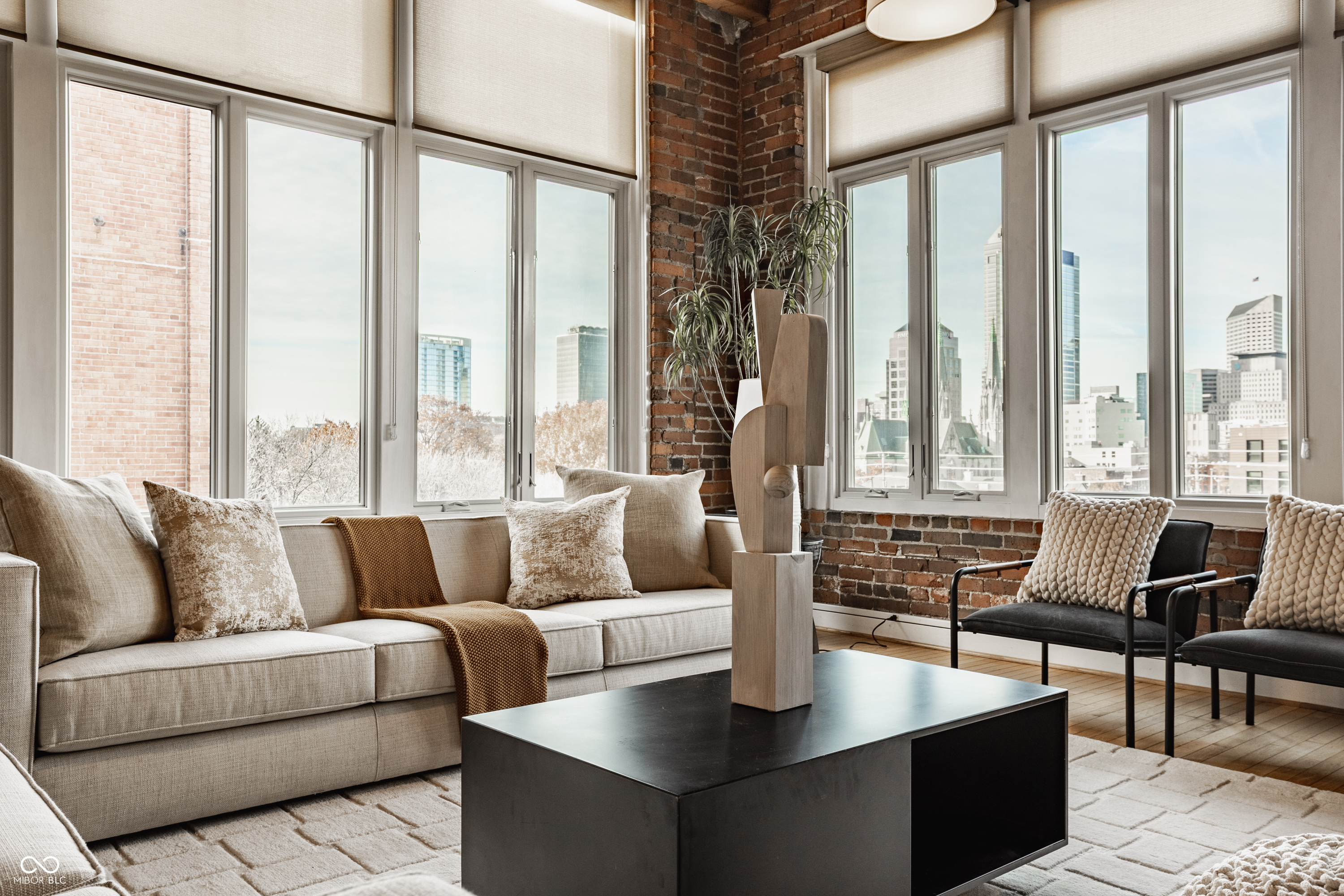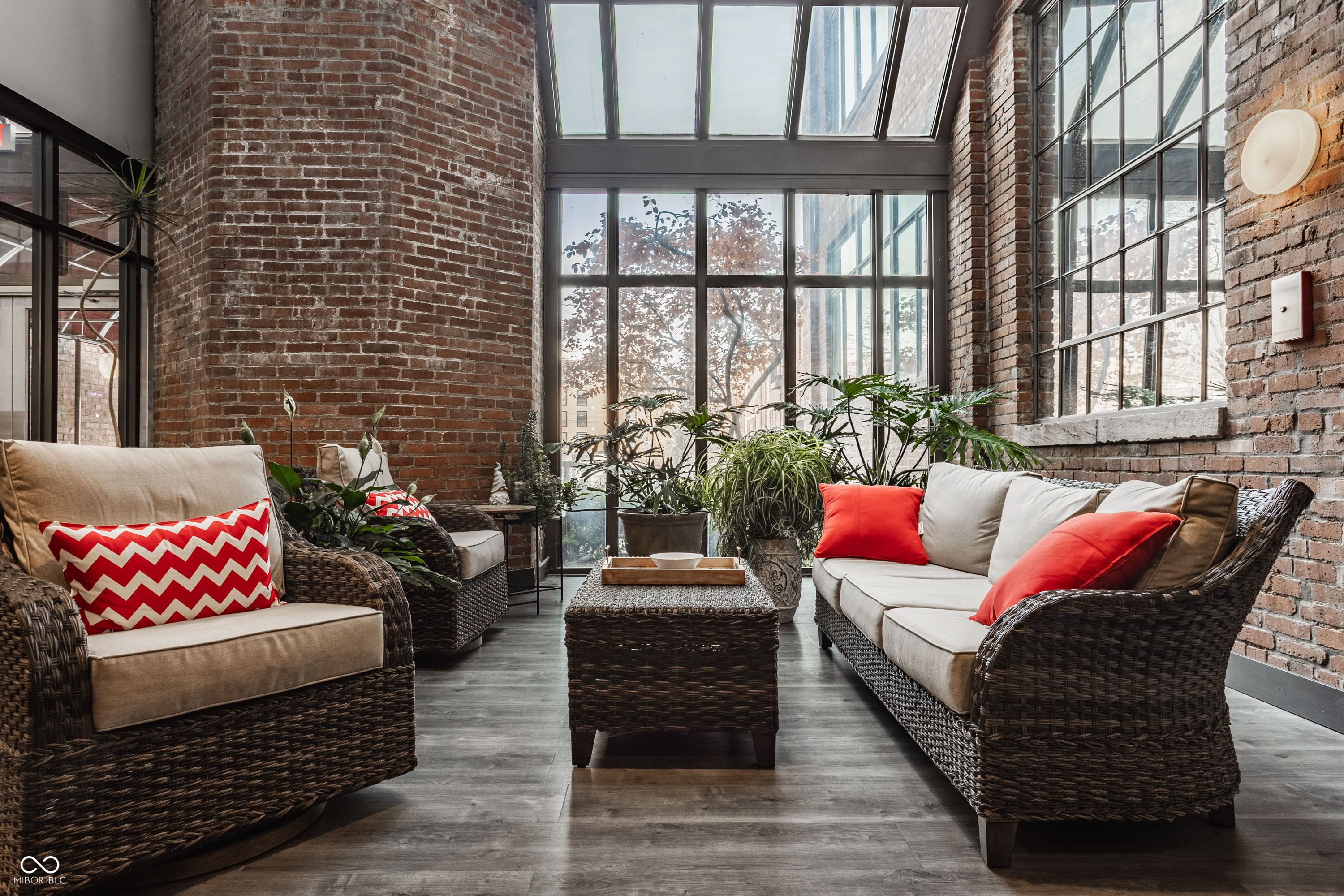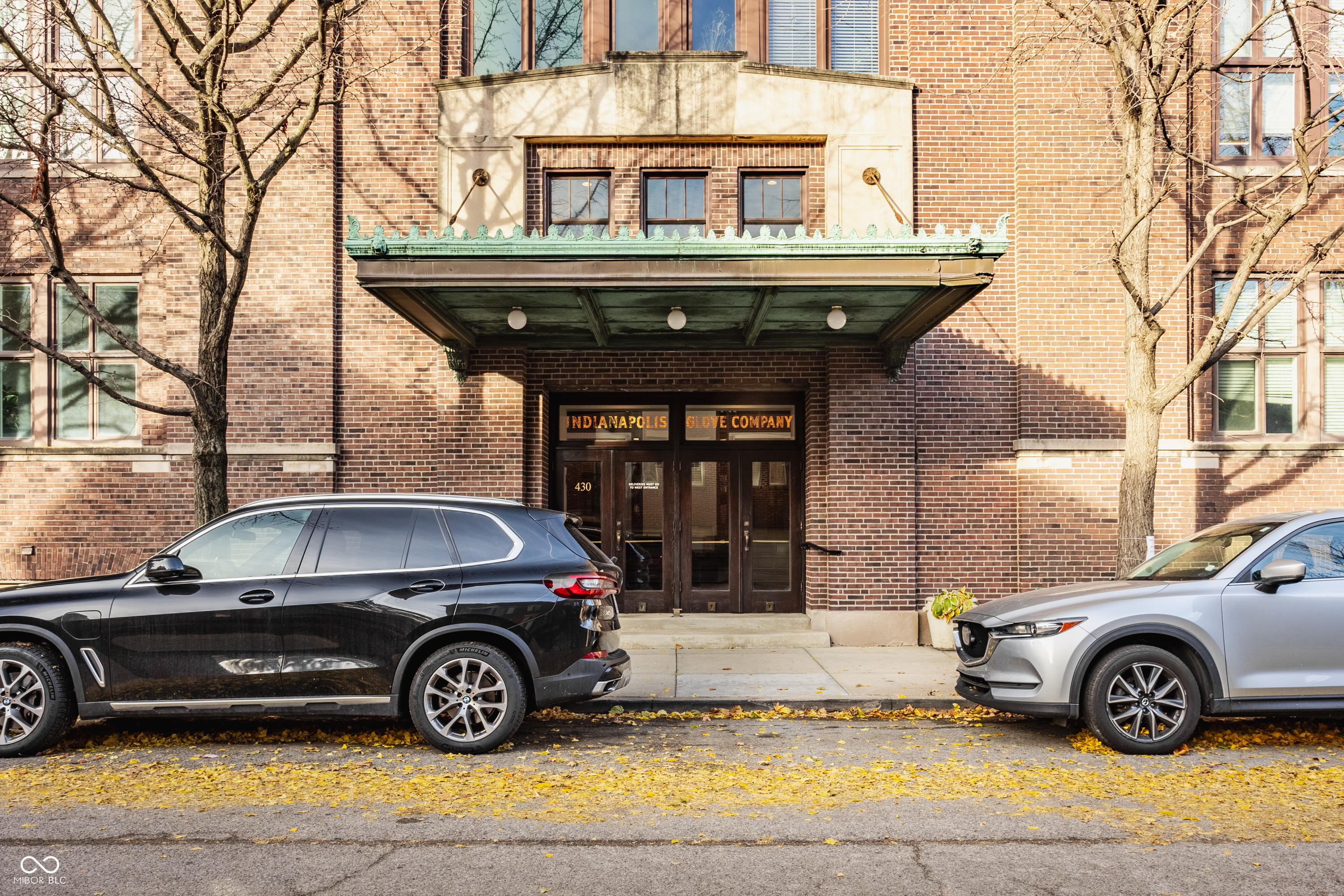 VIEWS! This incredible unit will leave you speechless! This 2-bedroom 2 full bath unit in the historic Glove Factory has so much to offer. Exposed brick & industrial beams run throughout the unit. The open floor plan is perfect for entertaining guests & friends. Updated kitchen has newer appliances. Living room is flooded with natural light, floor to ceiling windows & shows off an amazing skyline view of your favorite city. Your friends will be so jealous!!! Master bedroom also has skyline views & is connected to an updated master bathroom. Spectacular views in every room. Enjoy the rooftop terrace for an even better scenic experience. Dedicated parking space included in secure garage. Building has been through adaptive re-use & was formerly an old glove factory. Now it's your next dream home in the sky. Walking distance to Mass Ave, Rathskeller, Old National Center, shops, bars, restaurants & tons of other fun things. Don't miss out on this one!