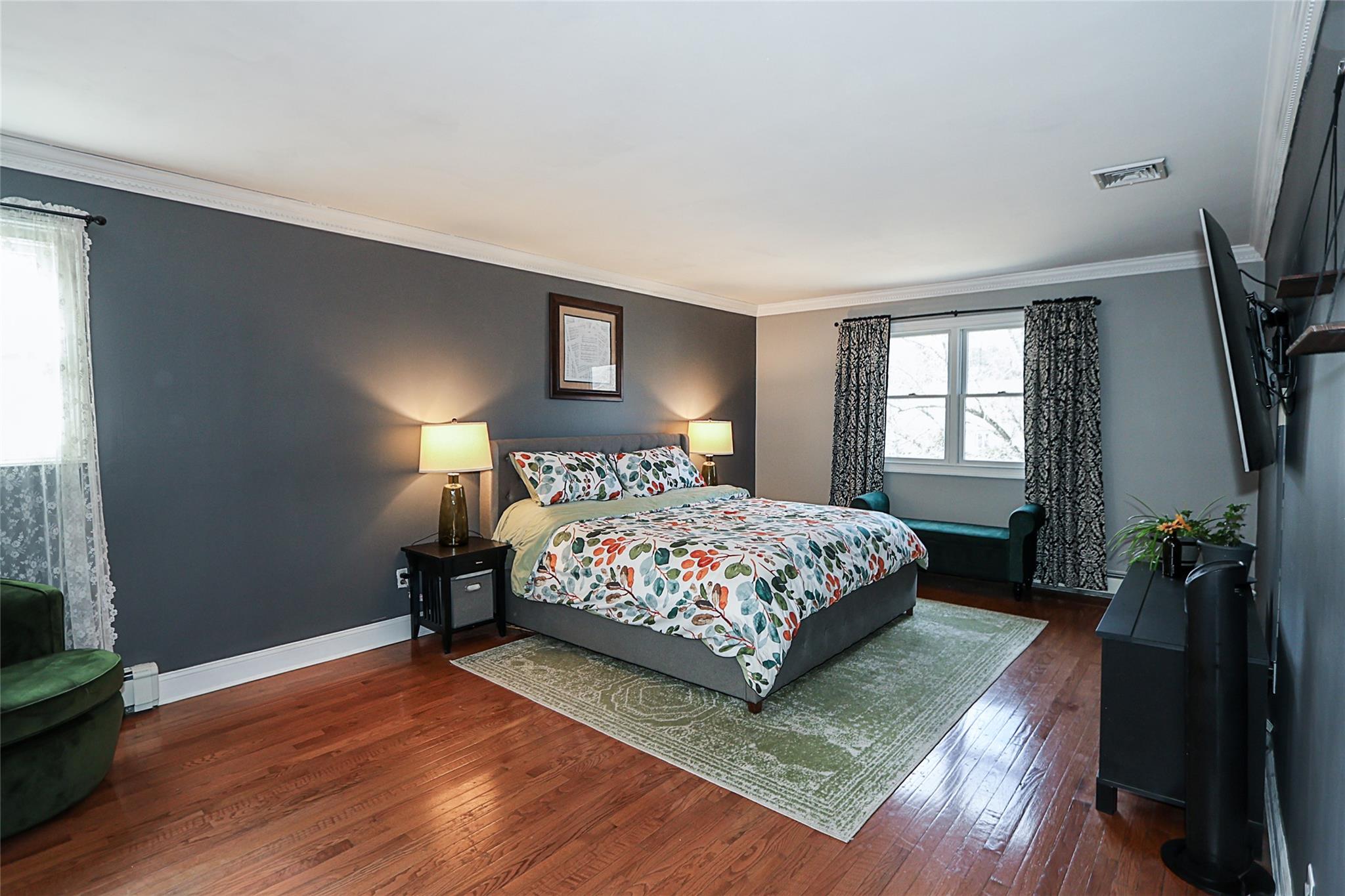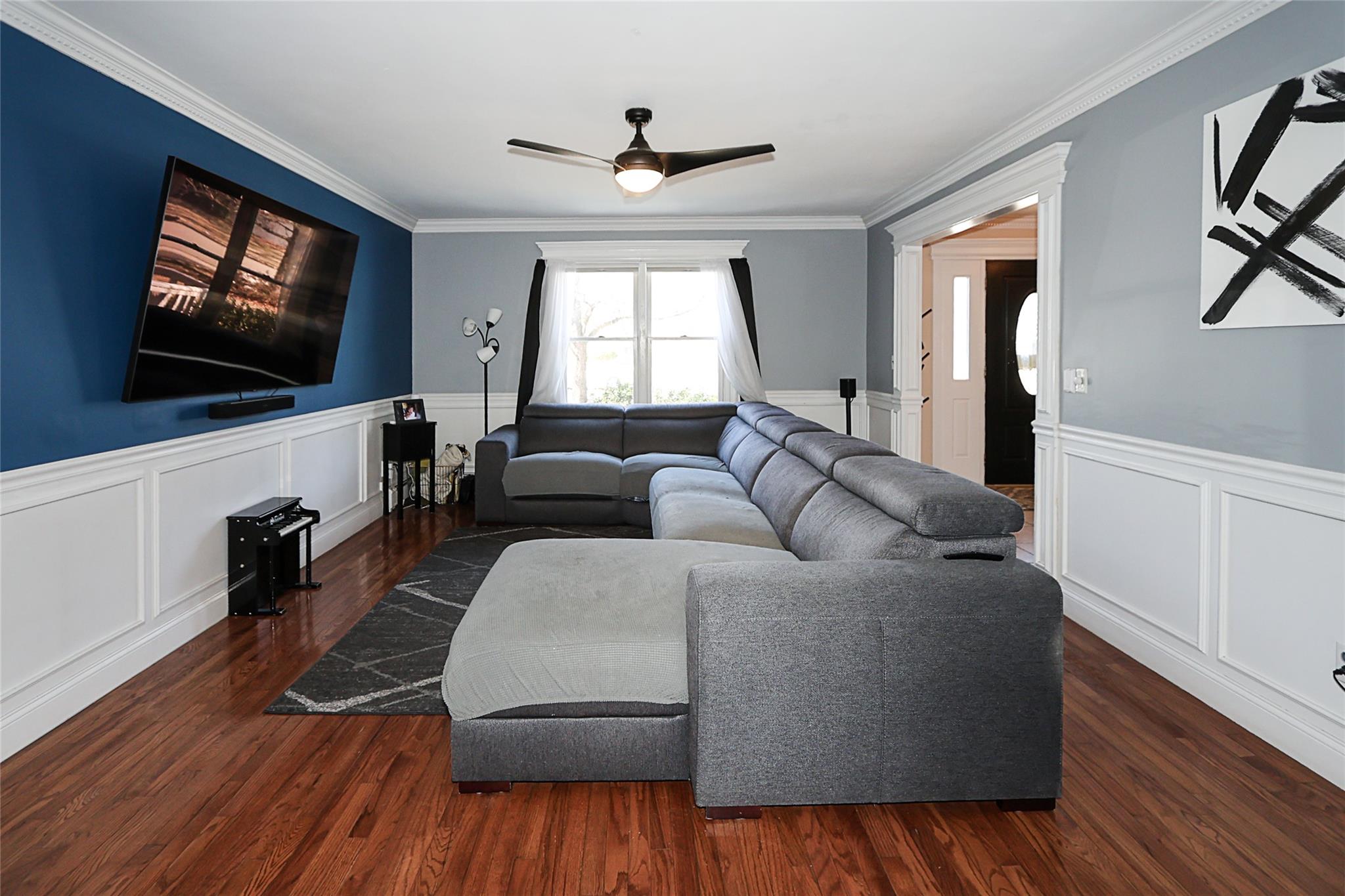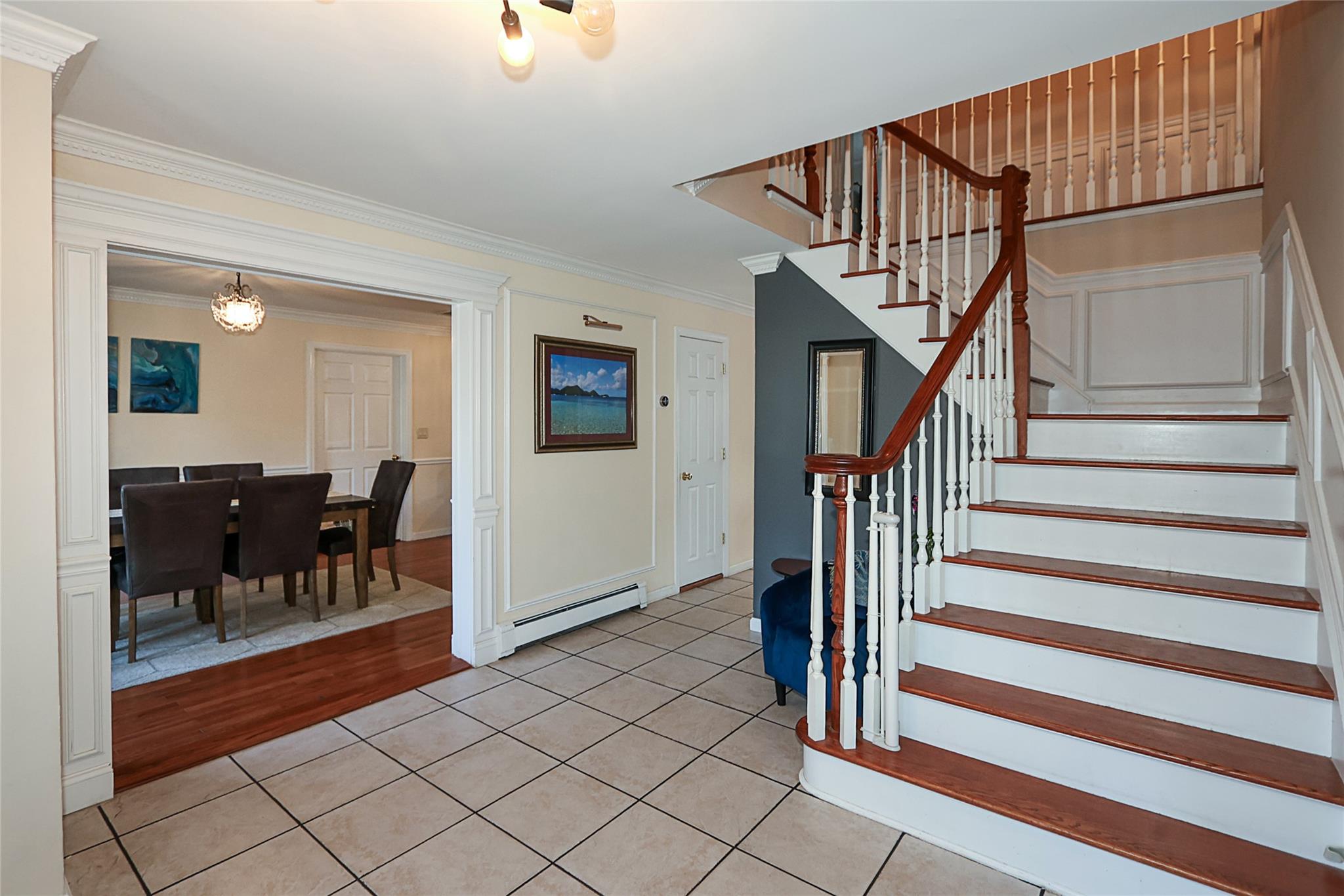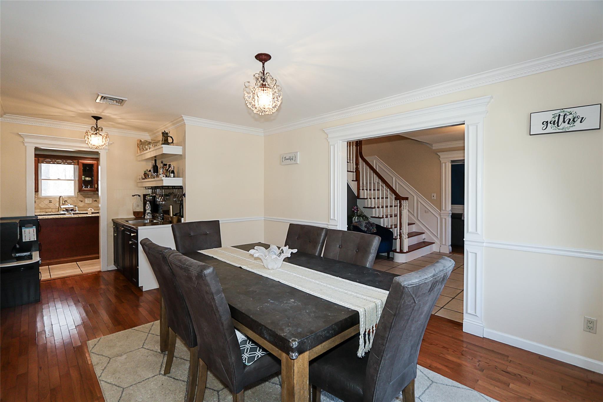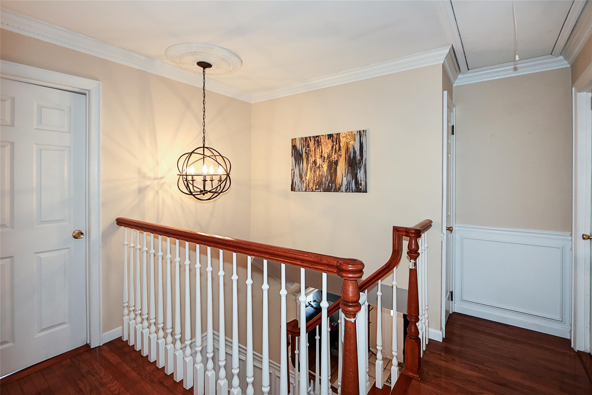 Stunning 4 bed/4 bath colonial comprised of a large entry foyer, LR, FDR W/Bar, EIK, hardwood floors, exquisite millwork, wainscotting and crown molding throughout. The large inviting entry foyer leads to a large dining room with separate bar area. The updated kitchen has cherry cabinets w/prep island which leads to a gorgeous family room with wood burning fireplace/ elegant custom mantel and built ins. The french doors in the family room lead to a large backyard with deck, waterfall and gazebo. Powder room /washer/dryer/pantry and bonus room are also on main level. Four bedrooms are located on second floor including a guest bathroom/primary bathroom with walk- in closet/private primary bathroom. Basement complete with utilities including central air/OSE and storage. This gorgeous, spacious home is move-in ready!!