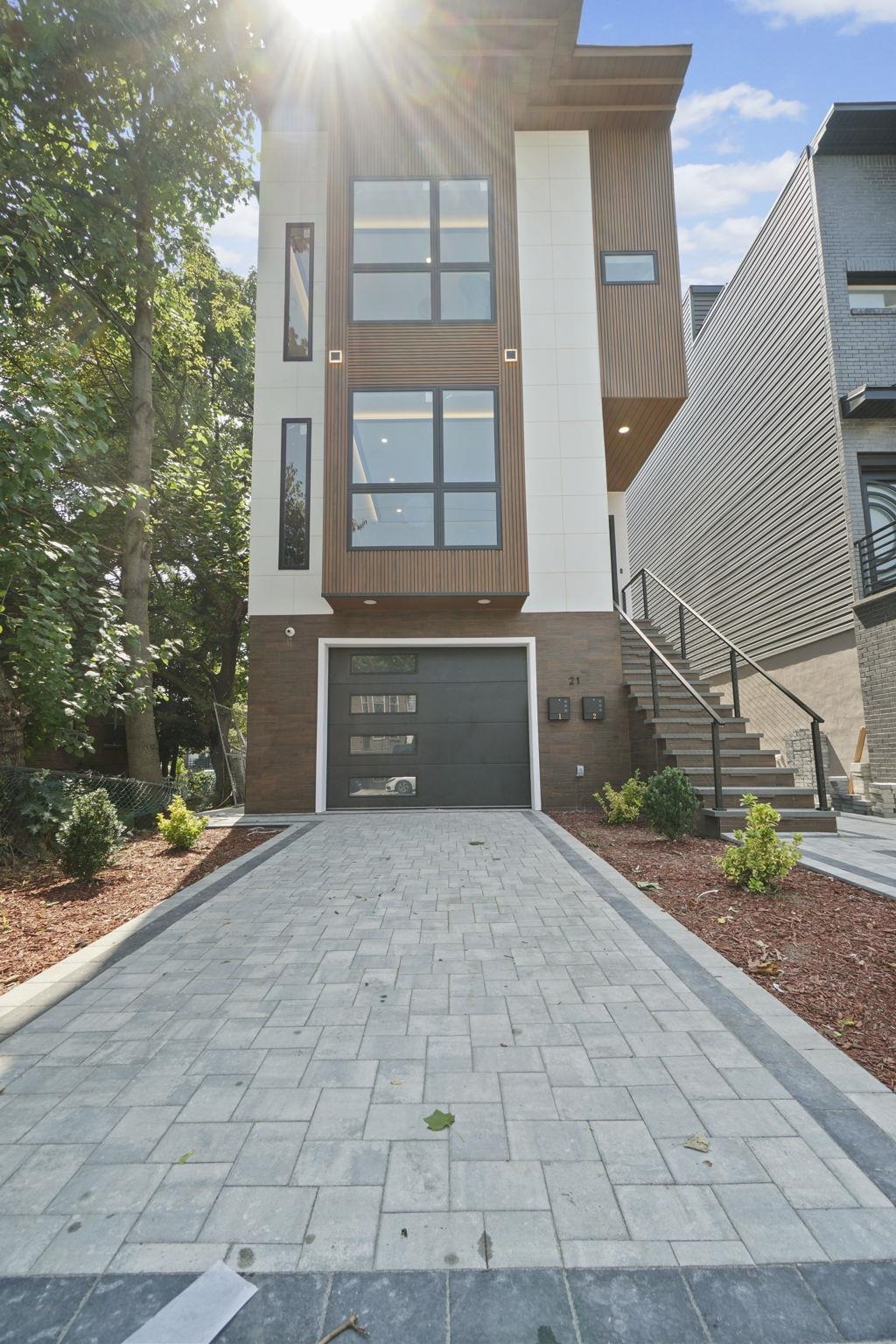 Welcome to 21 Highland, an Oversized New Construction Duplex Unit spanning 3 Floorsand approx. 1,850 sqft of luxurious living space. This home has been built by one Hudson / Union County's premier builders and spares no attention to detail, featuring 4 Oversized Bedrooms and 3 Oversized Full bathrooms. Your main level includes Living Room, Dining Room, Kitchen, Pantry / Coat Closet, Sought After 1st Floor Bedroom and Full Bathroom. Your kitchen includes Top Line LG Stainless Steel appliances, two tone natural wood grain - black cabinetry, waterfall center island and pendant lighting. Your Living Room / Dining Room offers huge near Floor to Ceiling Windows Flooding the Space with Bright Natural Light, Fireplace, speaker and custom tray ceiling with recessed lighting. Your Second Floor features an Oversized Main Bedroom with high Ceilings lined with windows providing tons of natural light. In addition your Main Bedroom features custom tray ceiling with recessed light, bedside pendant lighting and walk in custom built in closets. Your Main Bathroom consists of light and dark tone tile and accents, rainfall shower, multi jets and sprayer, modern floating toilet and custom vanity and mirror. Second Floor complete with 2 additional oversized bedrooms, Full Bathroom and Laundry Room. Additional exterior living space consists of private rooftop with beautiful downtown Journal Square views. Garage features SIDE BY SIDE parking. Property comes with 10 Year warranty. Property Sqft are Approximate.